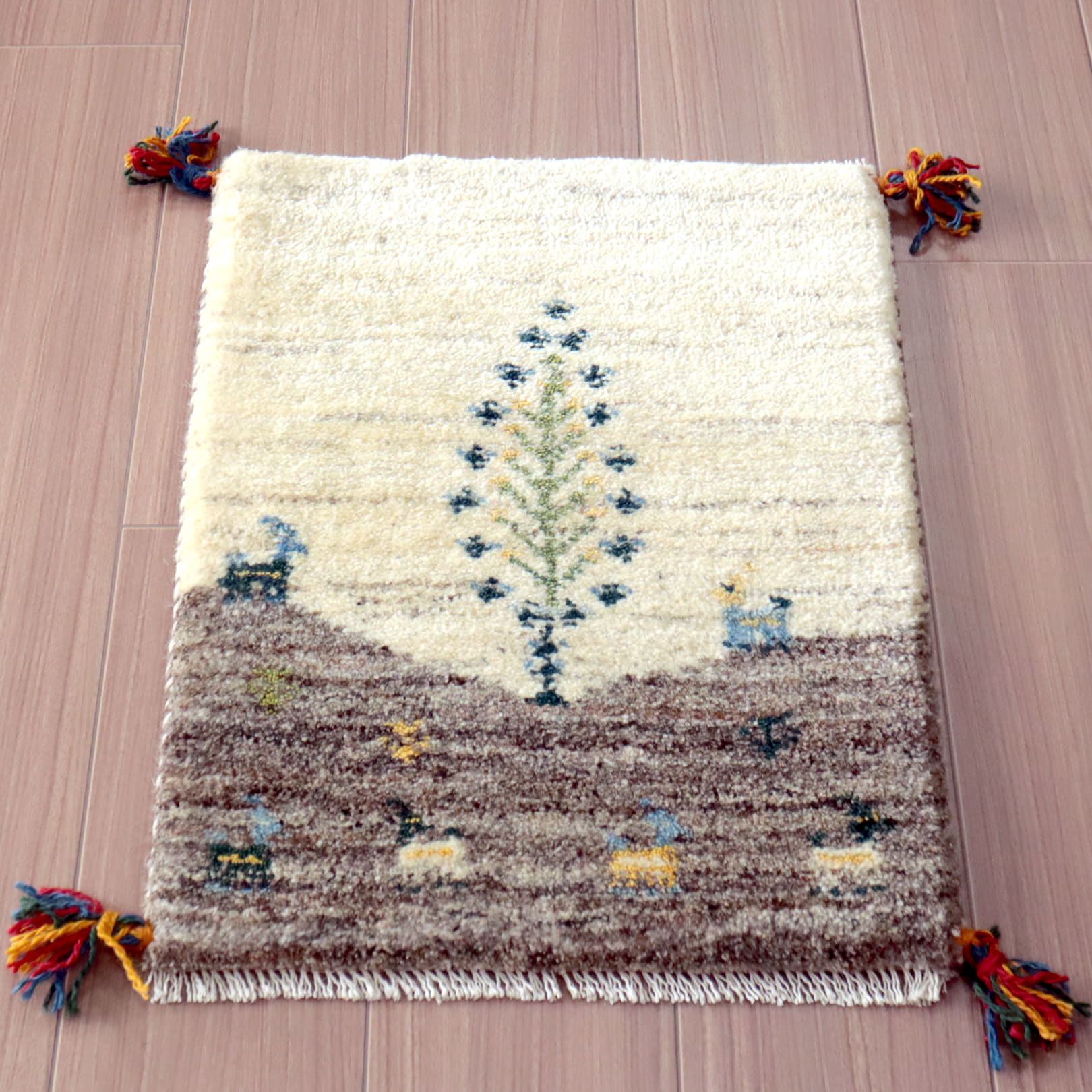 ミニギャッベ イラン 遊牧民のふかふかラグ 54x40cm 花の咲く生命の樹