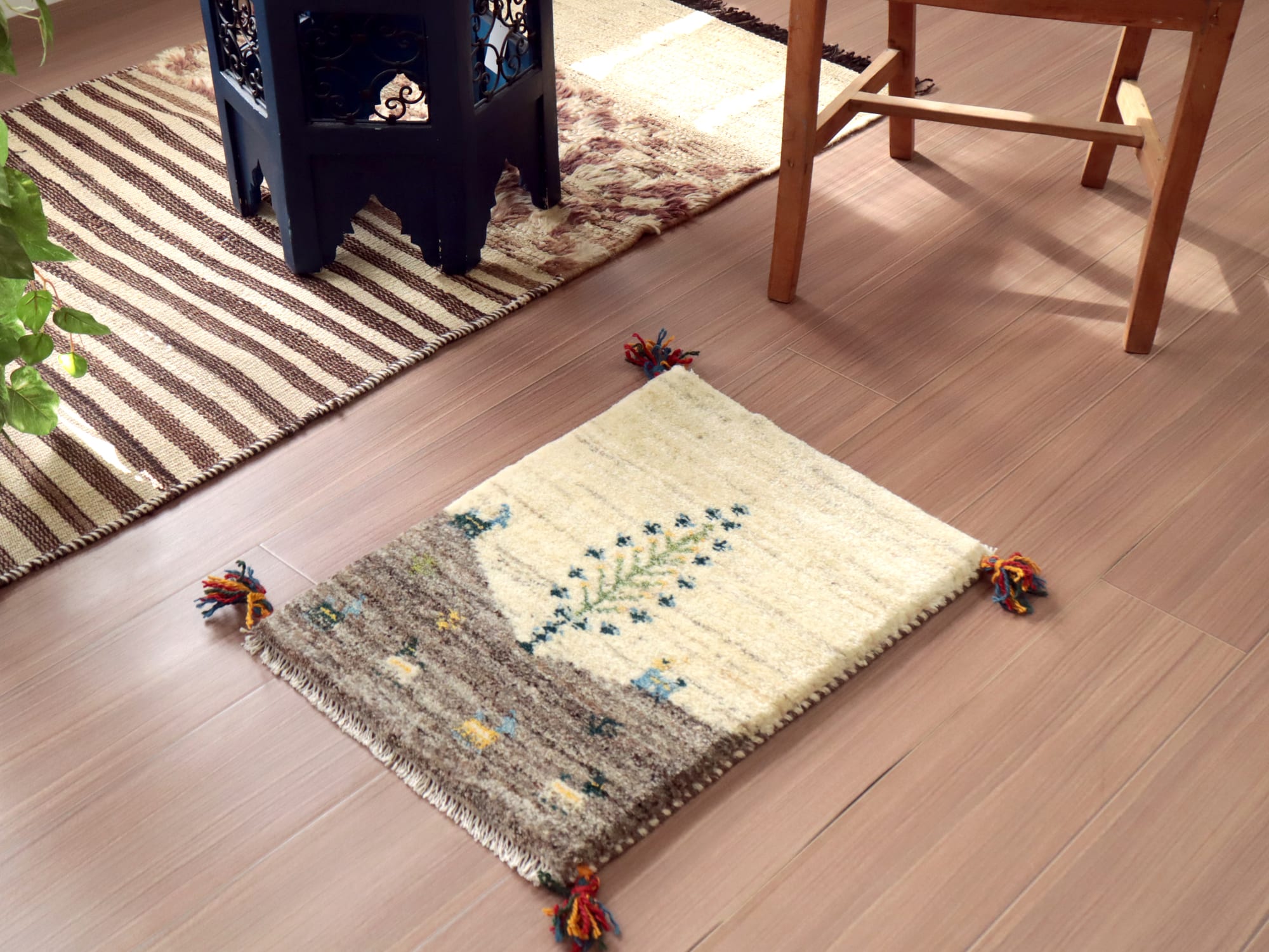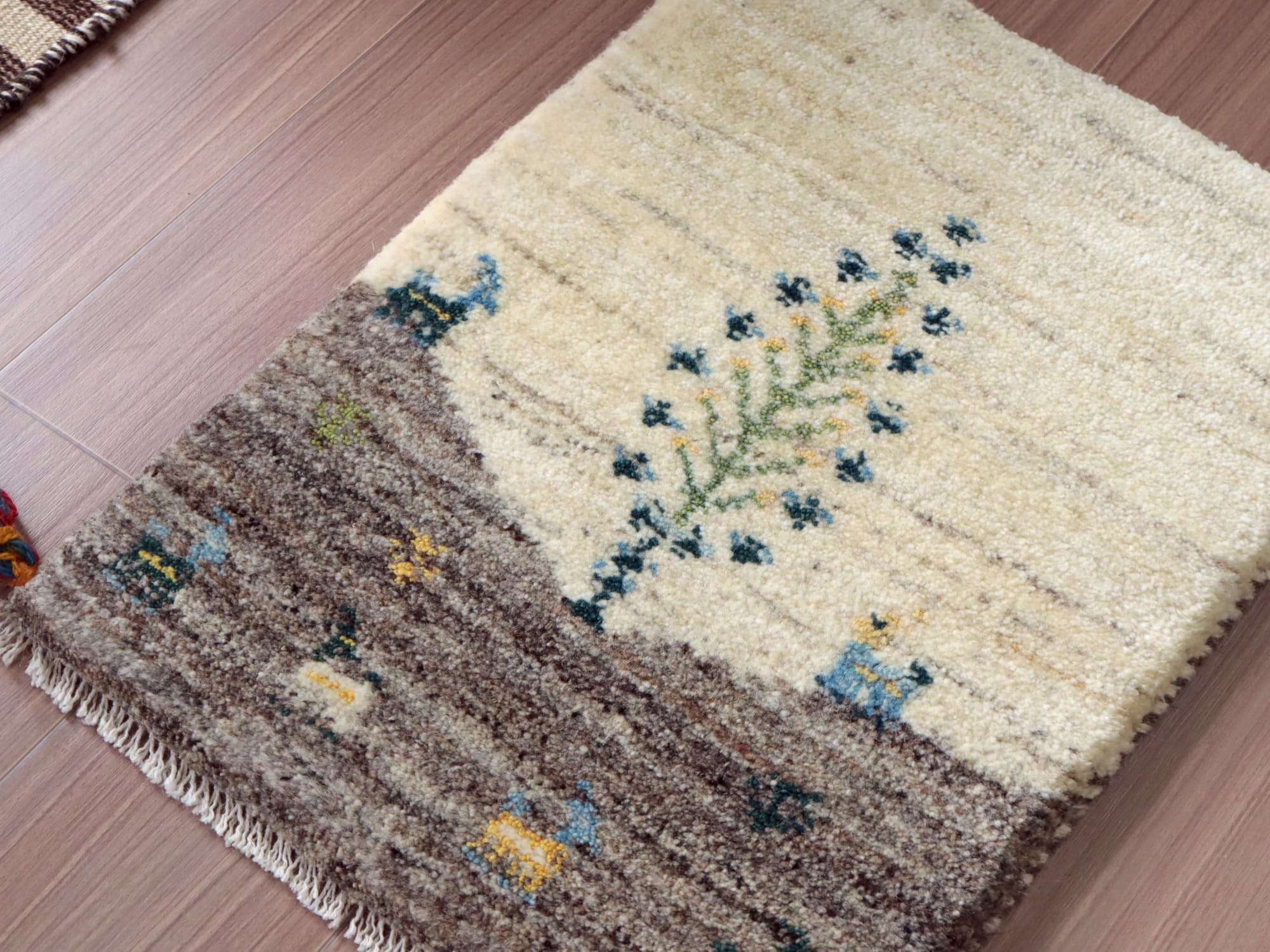 - ミニギャッベ イラン 遊牧民のふかふかラグ 54x40cm 花の咲く生命の樹