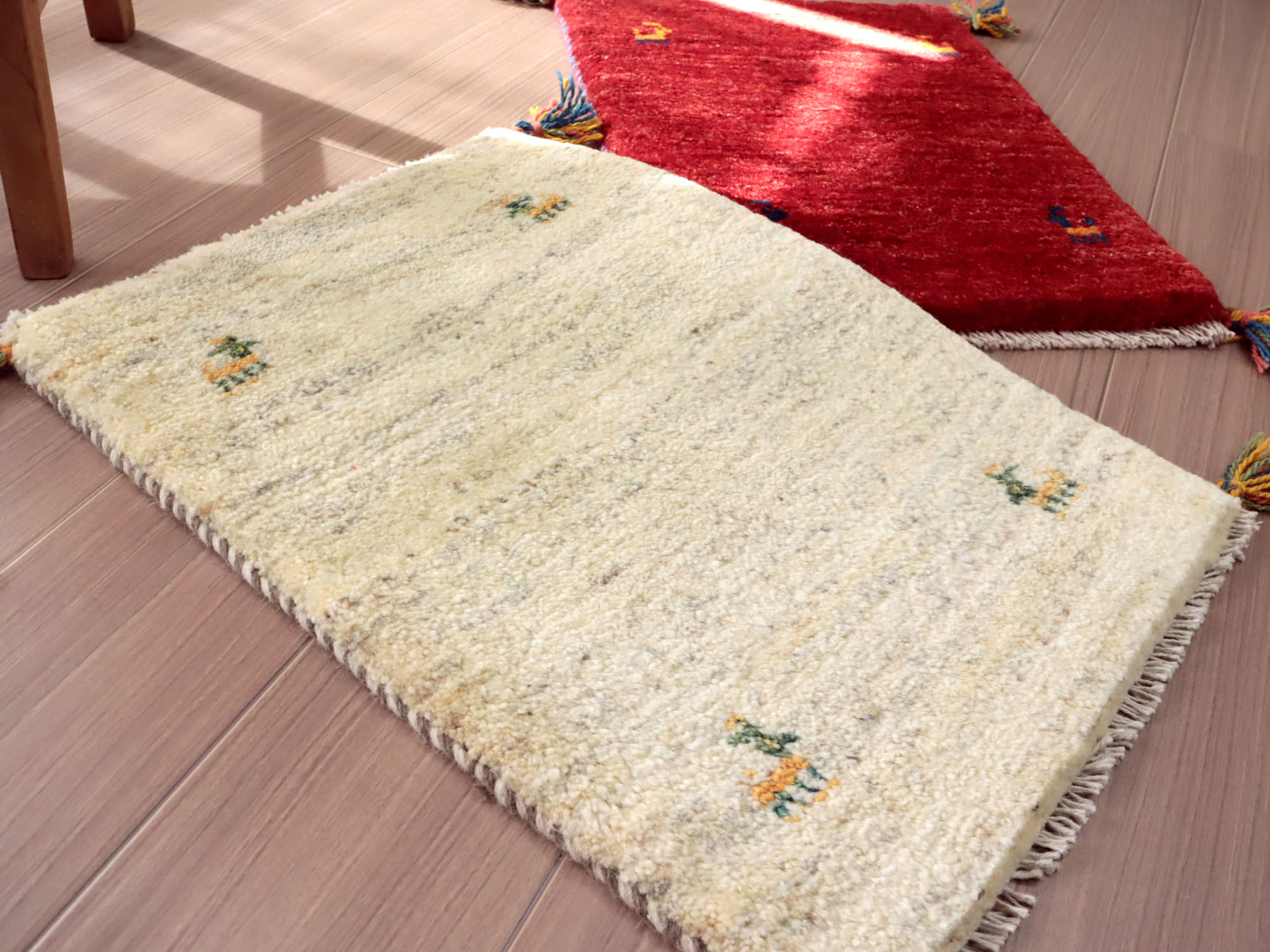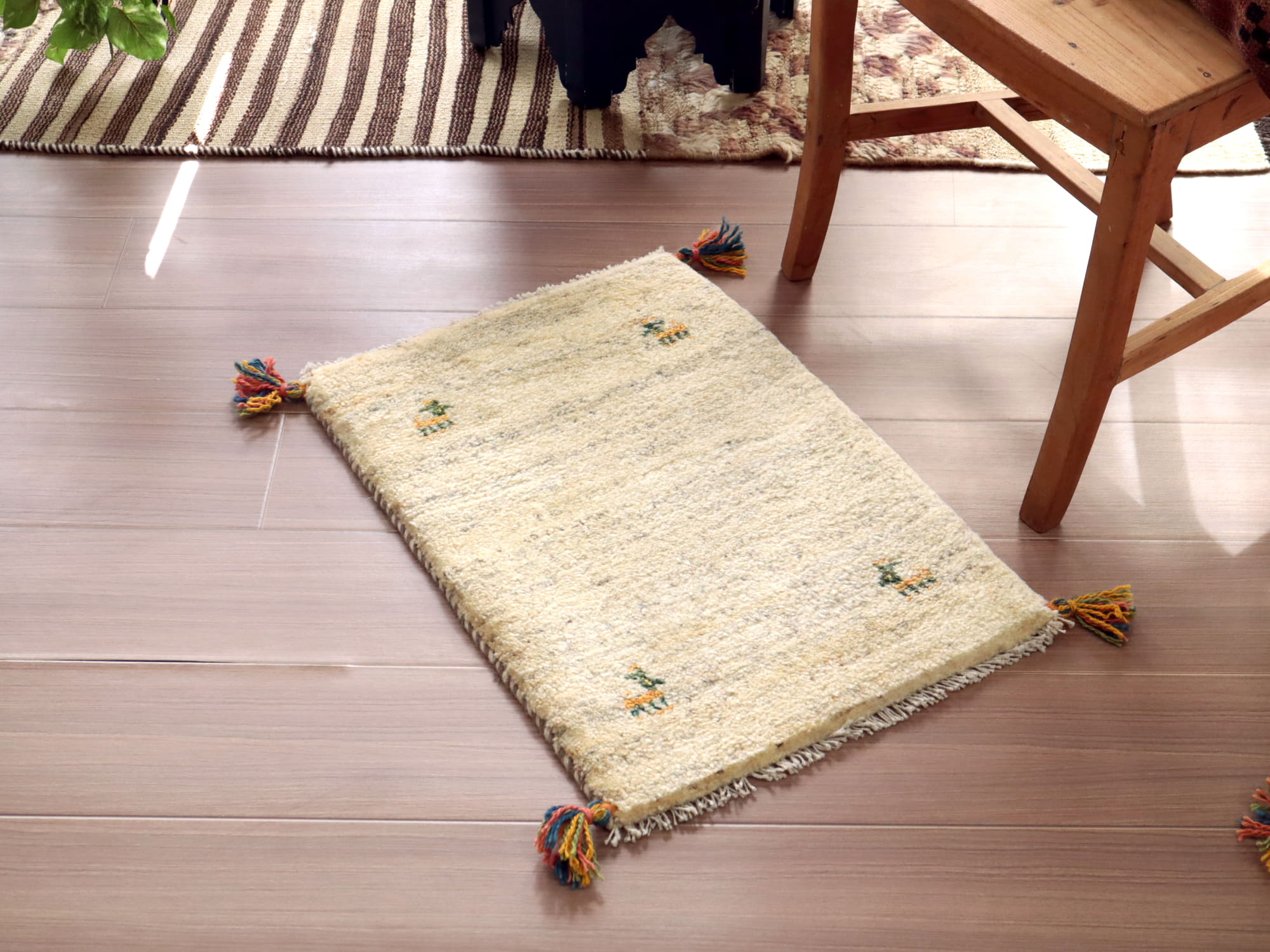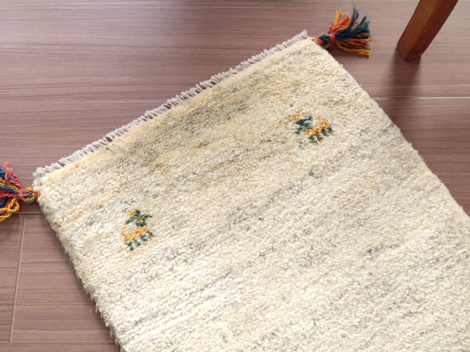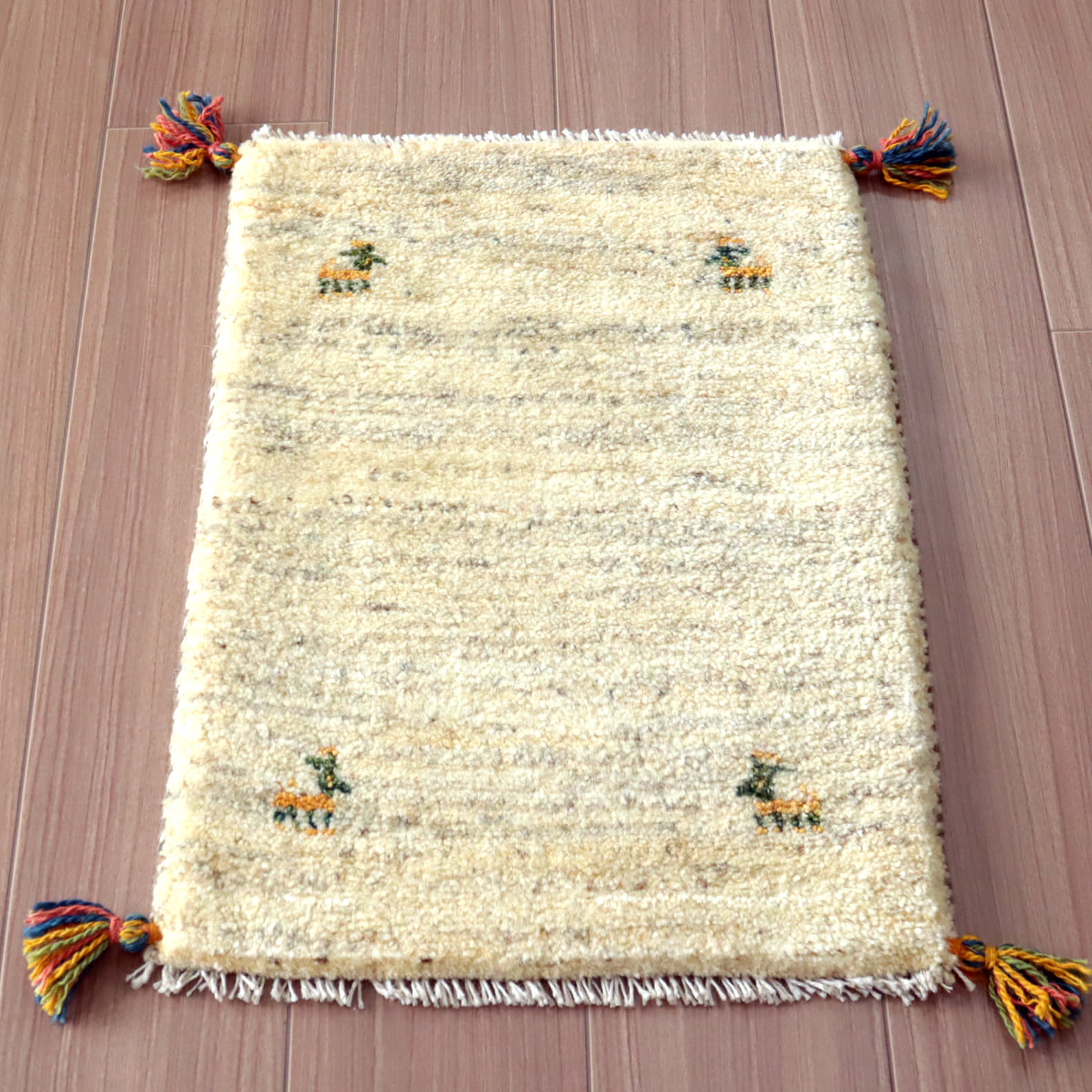- ミニギャッベ イラン 遊牧民のふかふかラグ 59x42cm ナチュラルアイボリー 無地 シンプル