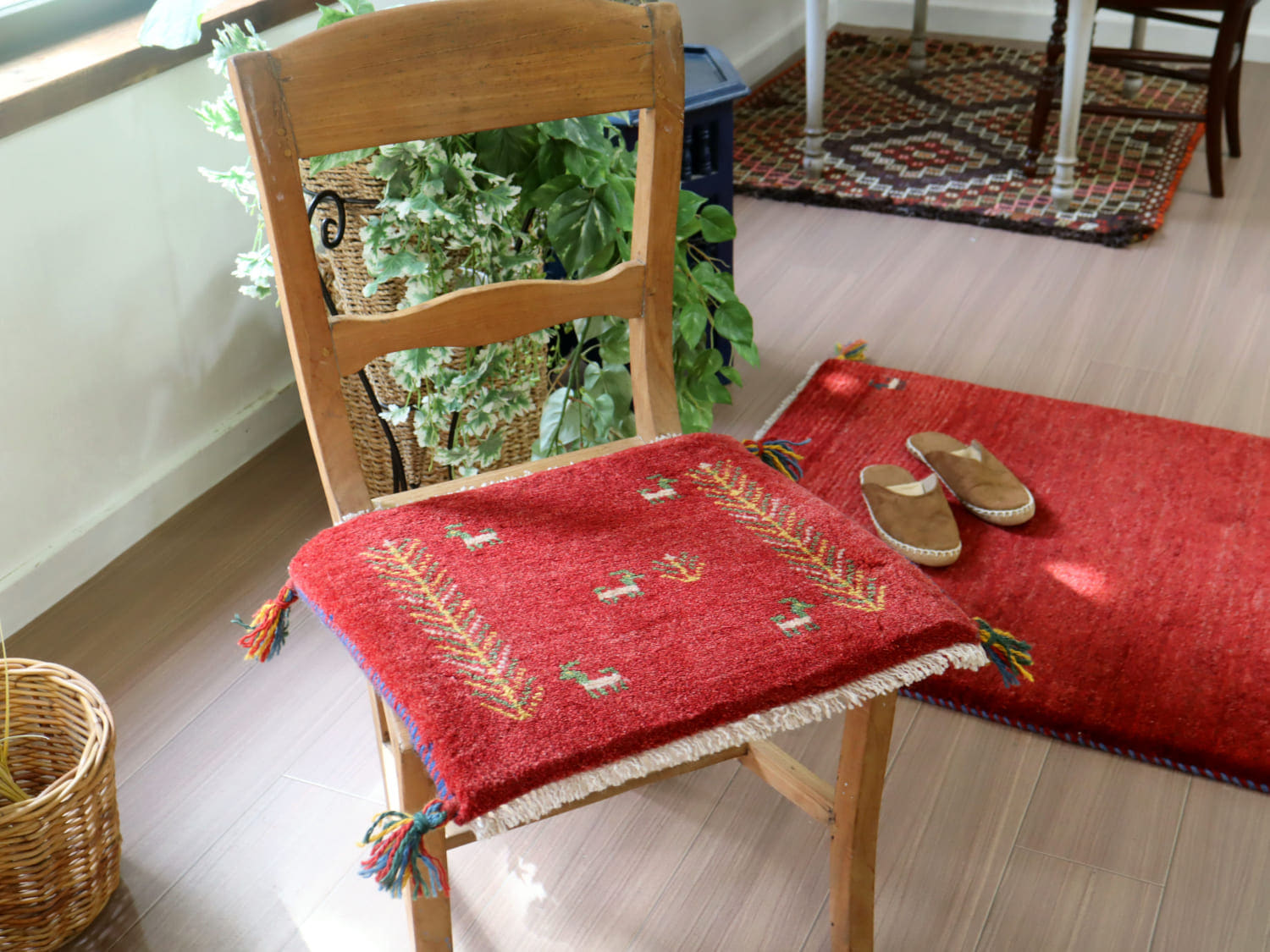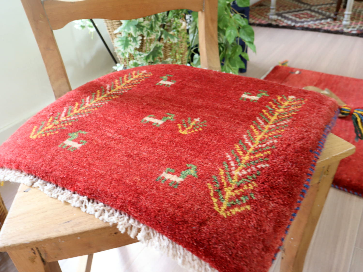 ギャッベ 座布団サイズ 40x45cm レッド イラン産手織りギャッベ
