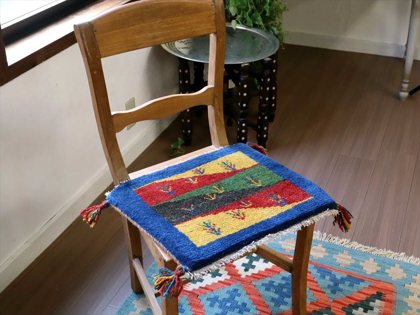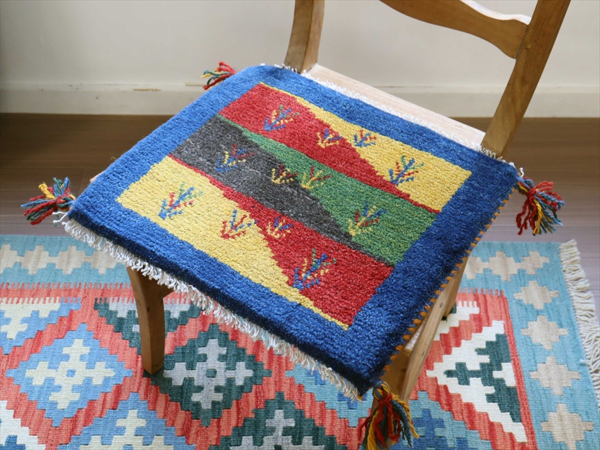 ギャッベ 座布団サイズ 38x43cm イラン南部 遊牧民の手織りギャッベ