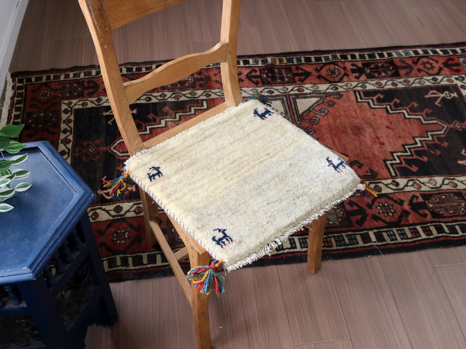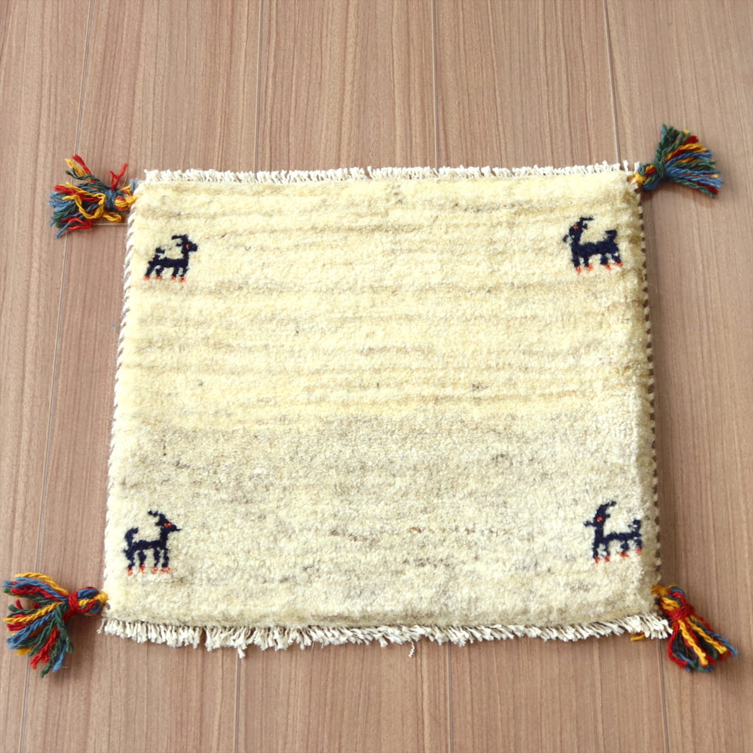 ギャッベ Gabbeh 座布団サイズギャベ 38x41cm ナチュラルアイボリー イラン製手織り