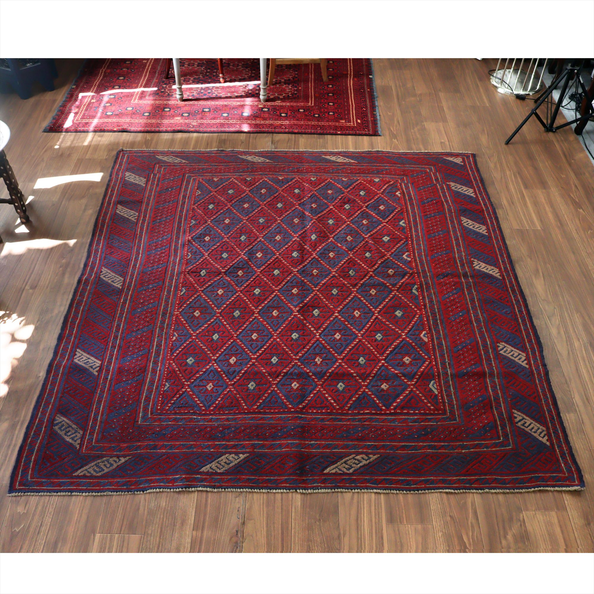 オールドキリム アフガニスタン ミシュワニ205×197cm 連なる幾何学模様