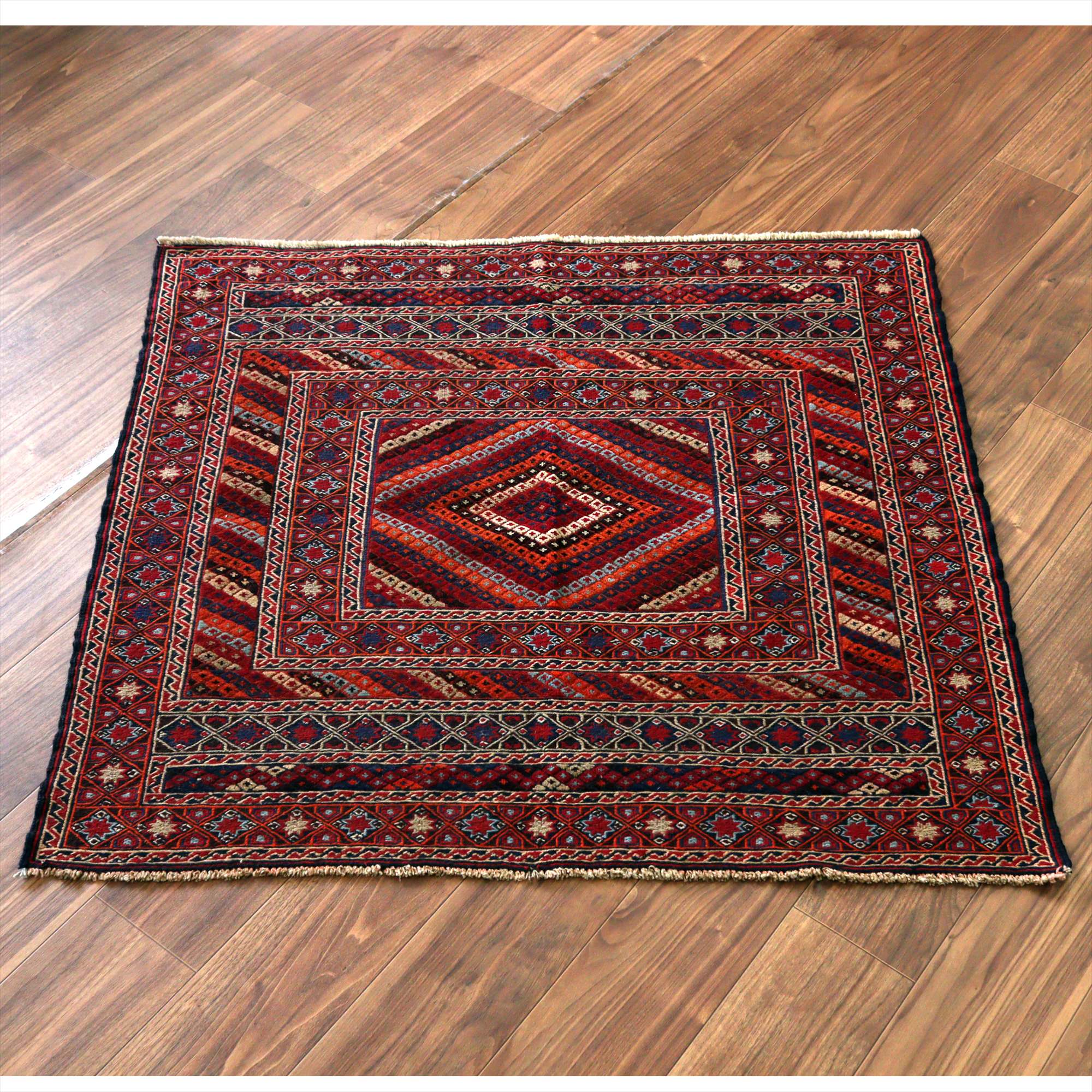 オールドキリム アフガニスタン ミシュワニ105×113cm 幾何学模様とメダリオン