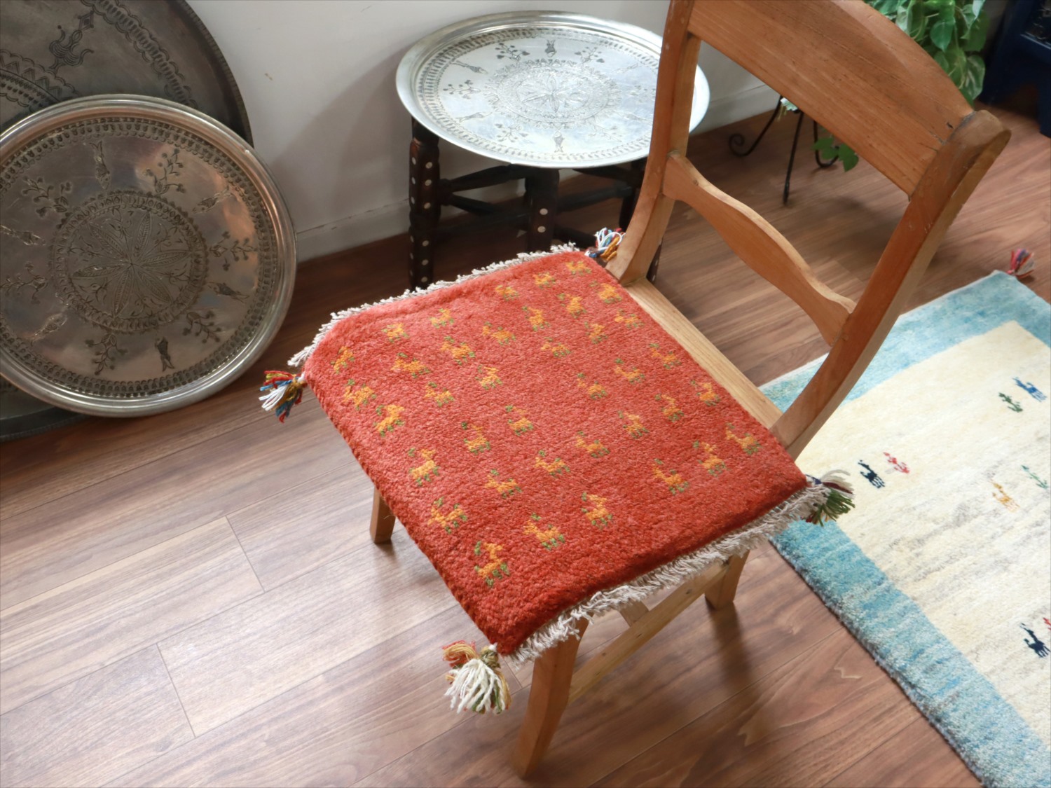 ギャッベ イラン産手織り 座布団サイズ 40x39cm レッド