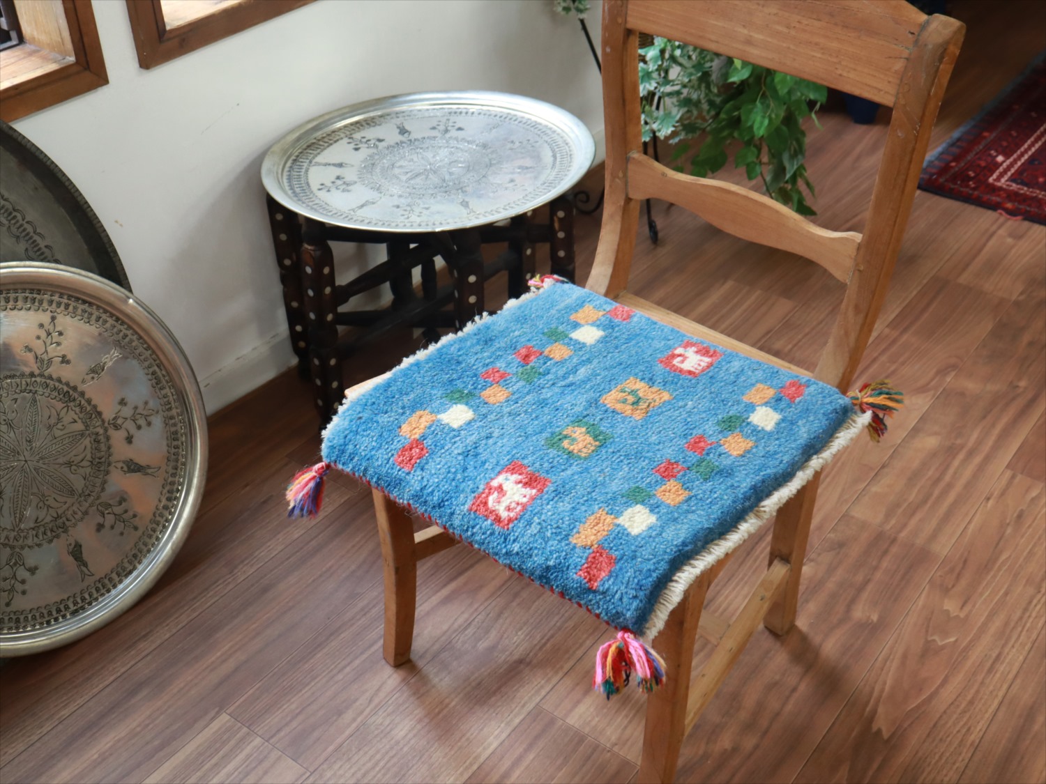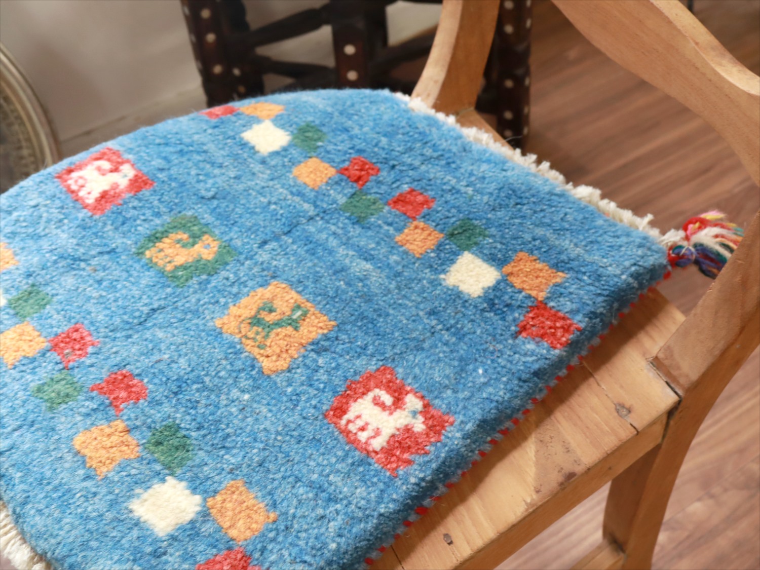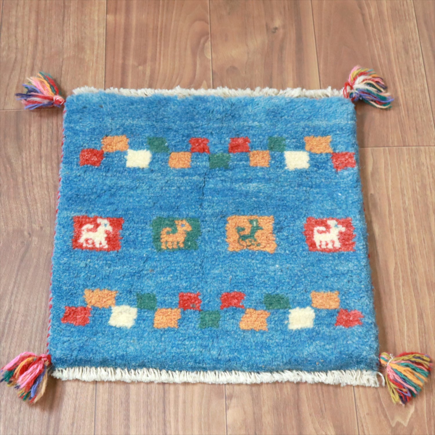 ギャッベ イラン産手織り 座布団サイズ 40x40cm ブルー