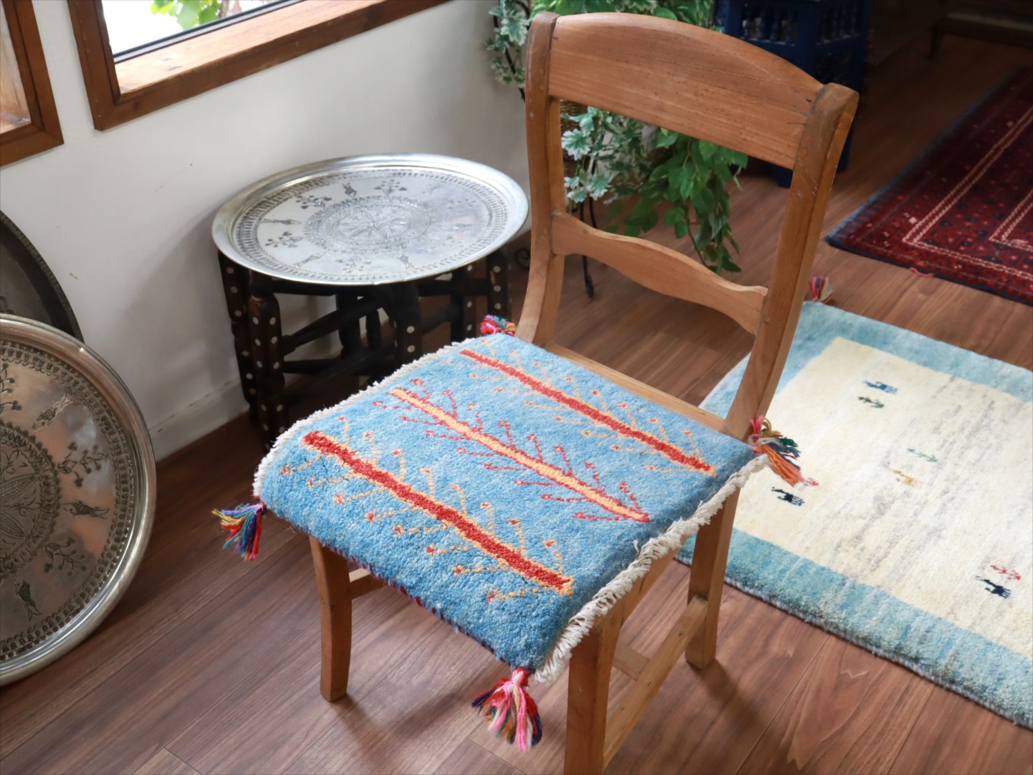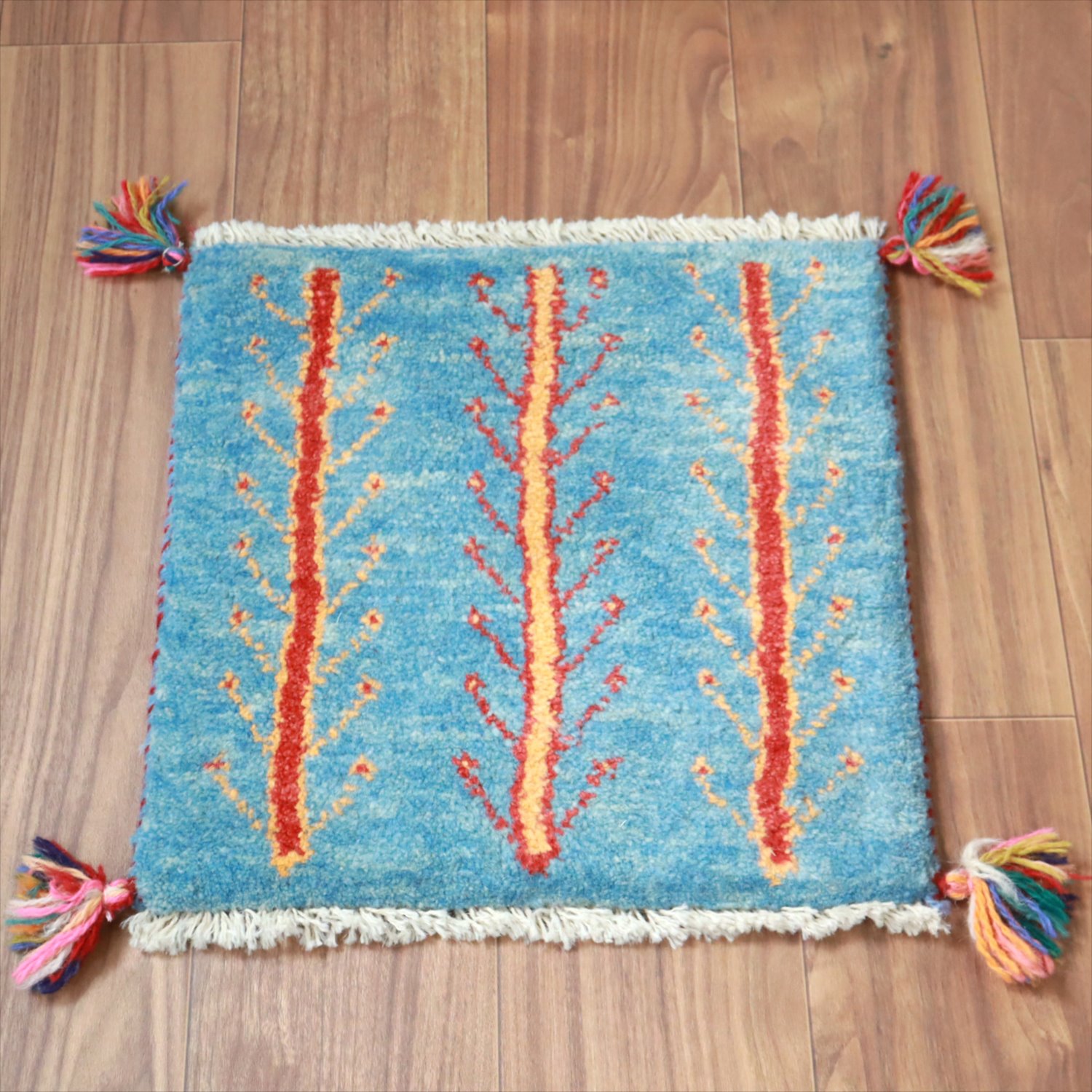 ギャッベ イラン産手織り 座布団サイズ 40x40cm ブルー