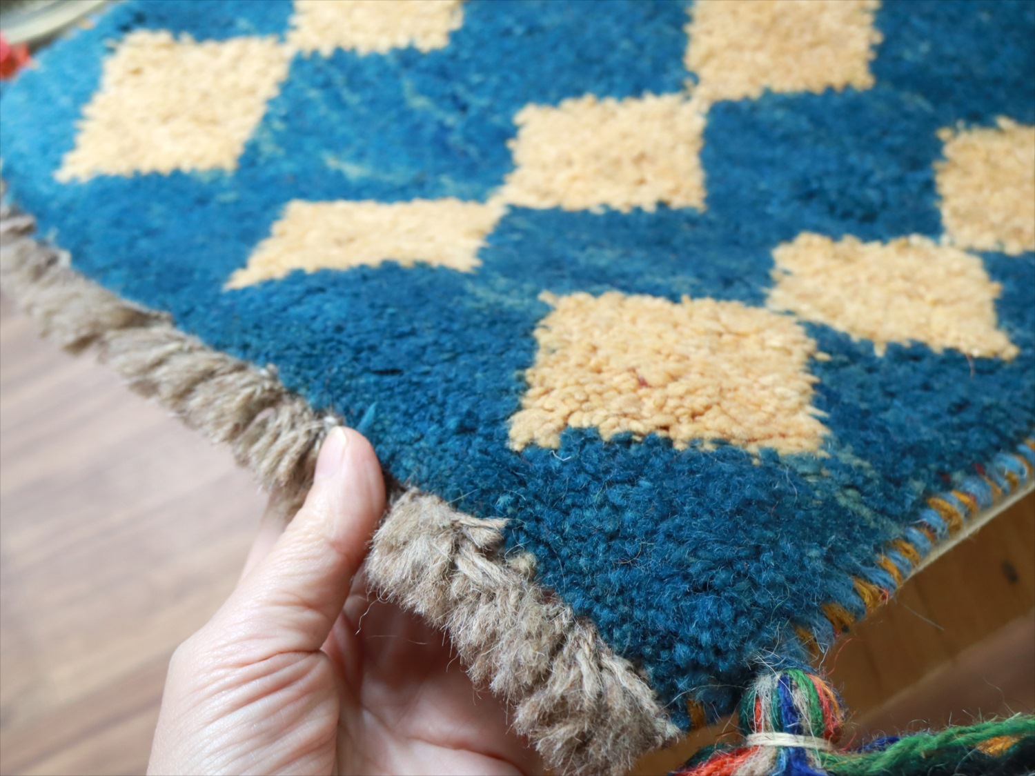 Key:ギャッベ ギャベ Gabbeh, イラン, 遊牧民, 手織り, 手紡ぎ, ペルシャ, 手織り絨毯, 部族絨毯, トライバルラグ, 座布団ギャッベ, 1点もの, 現品販売, ウール100%, ブルー, 青, 紺, インディゴ, 藍染, 天然繊維 ミニギャベ, Gabbeh, Iran Persian rug, Hand Knotted, ガラタバザール