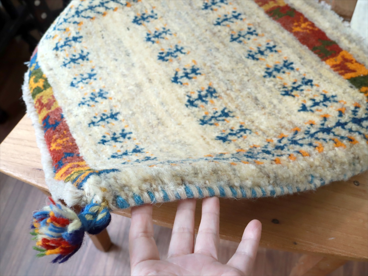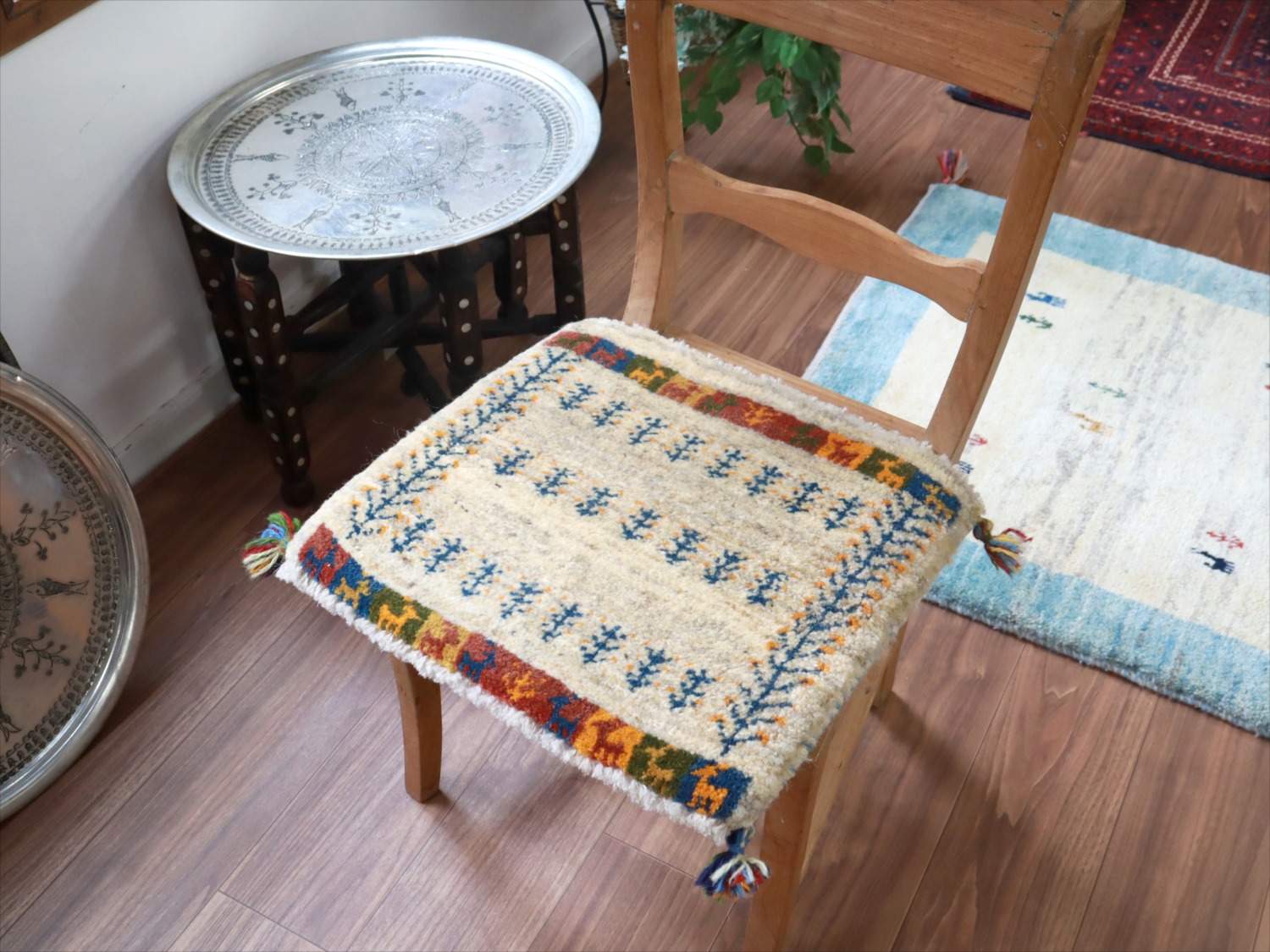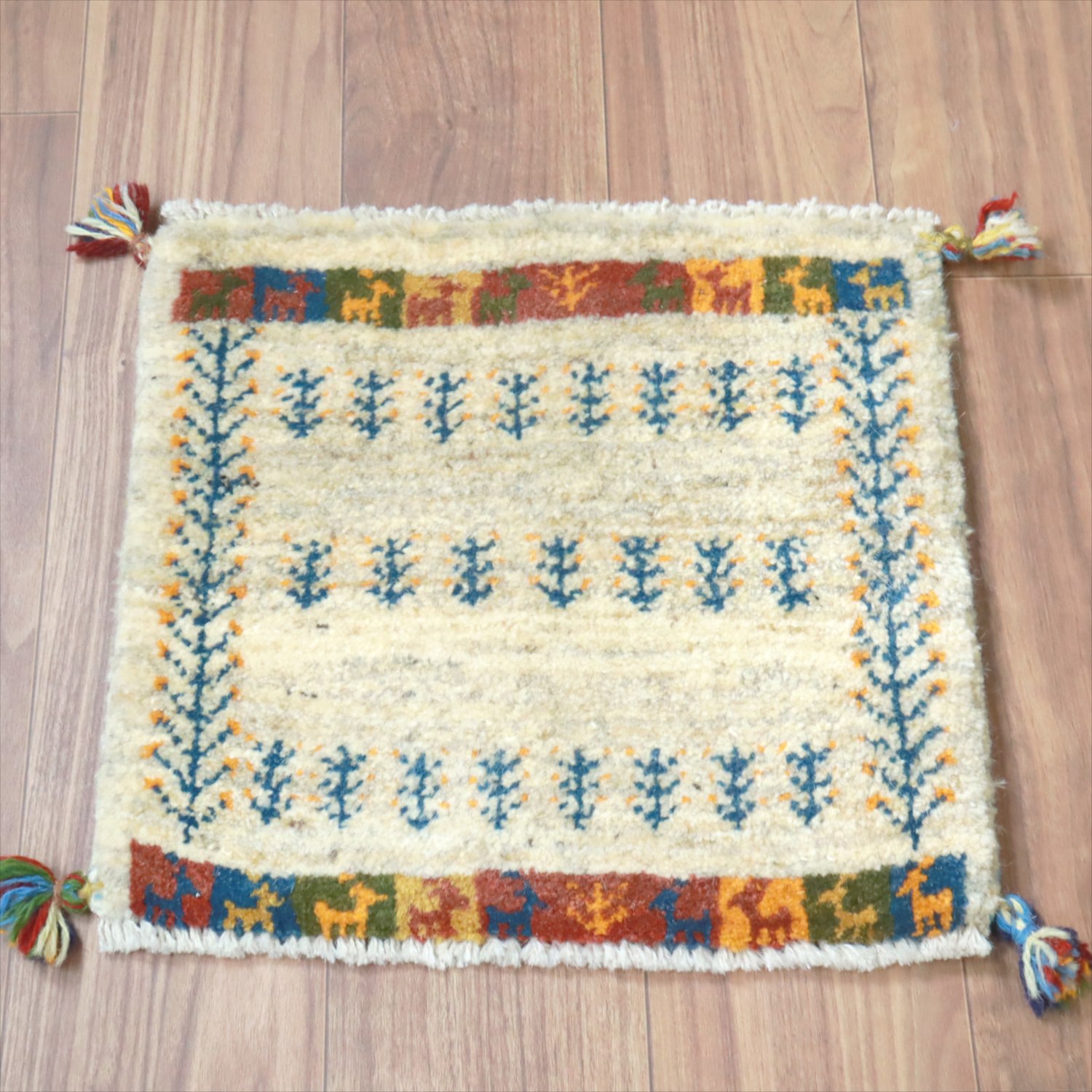 ギャッベ イラン産手織り 座布団サイズ 38x39cm ナチュラルアイボリー