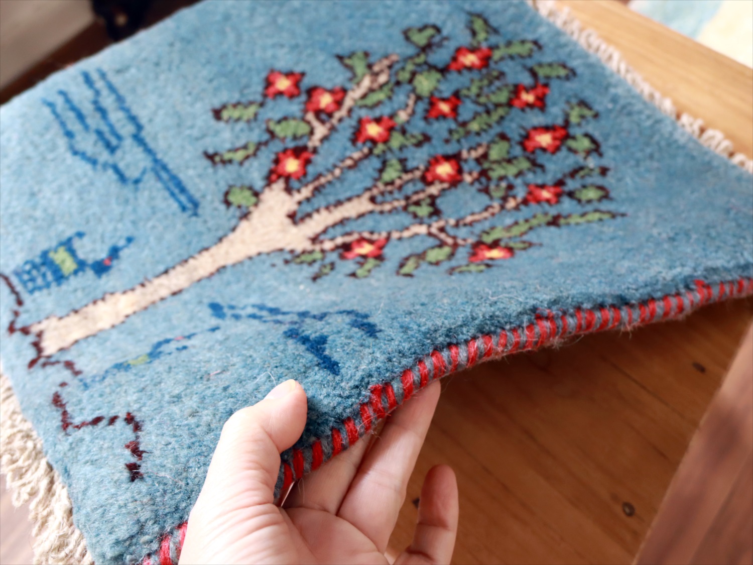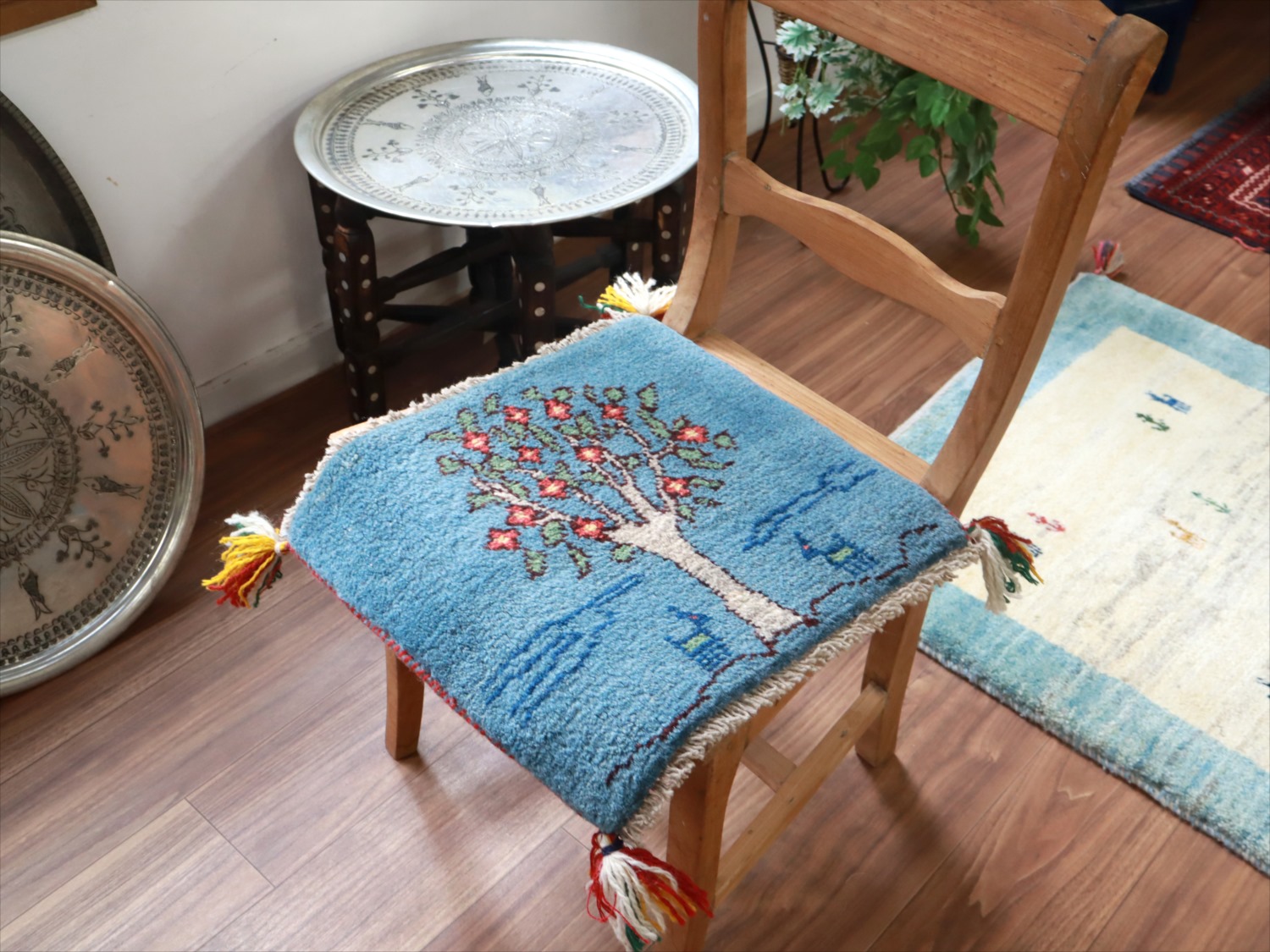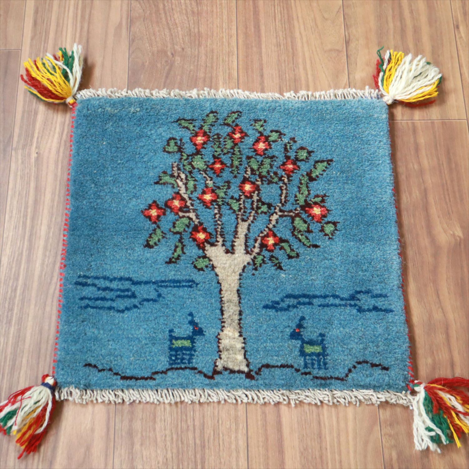 ギャッベ イラン産手織り 座布団サイズ 39x42cm ブルー