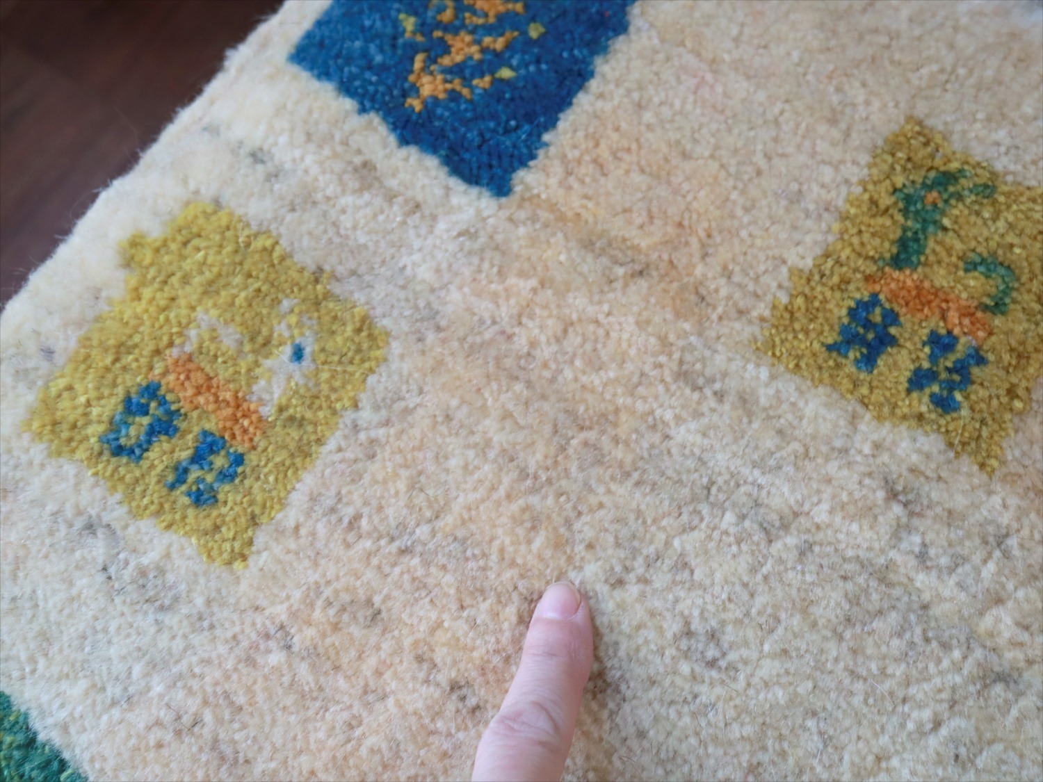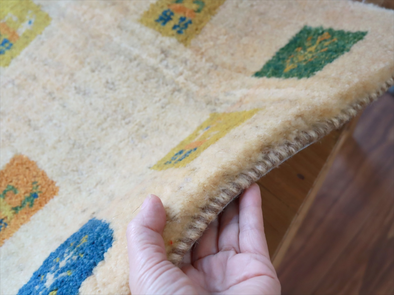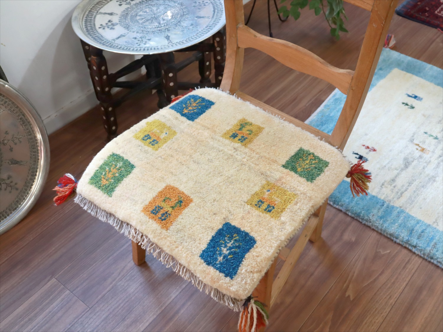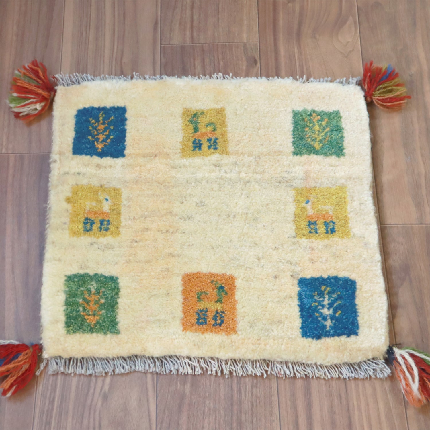 ギャッベ イラン産手織り 座布団サイズ 40x44cm ナチュラルアイボリー【色うつり・難あり】