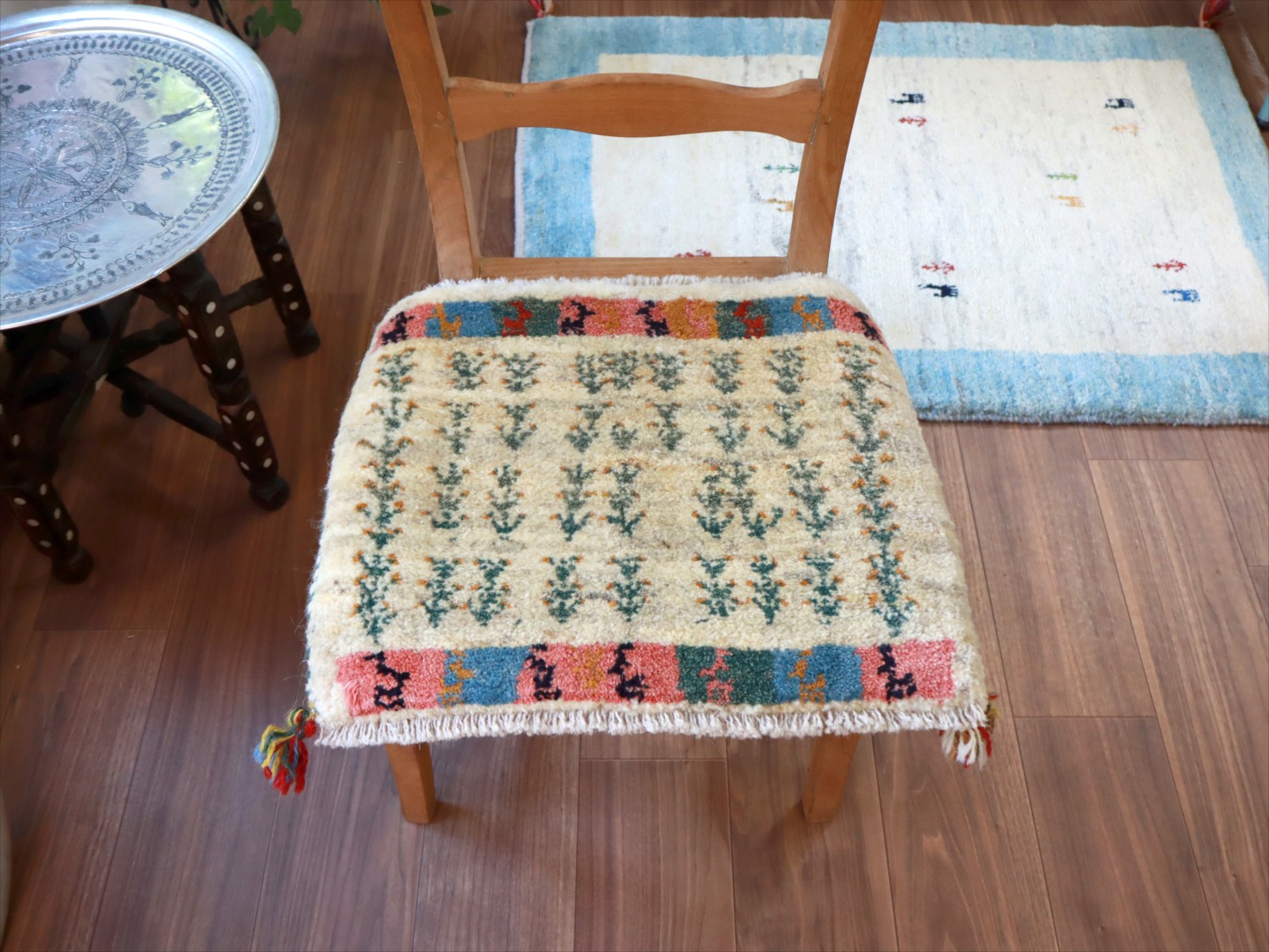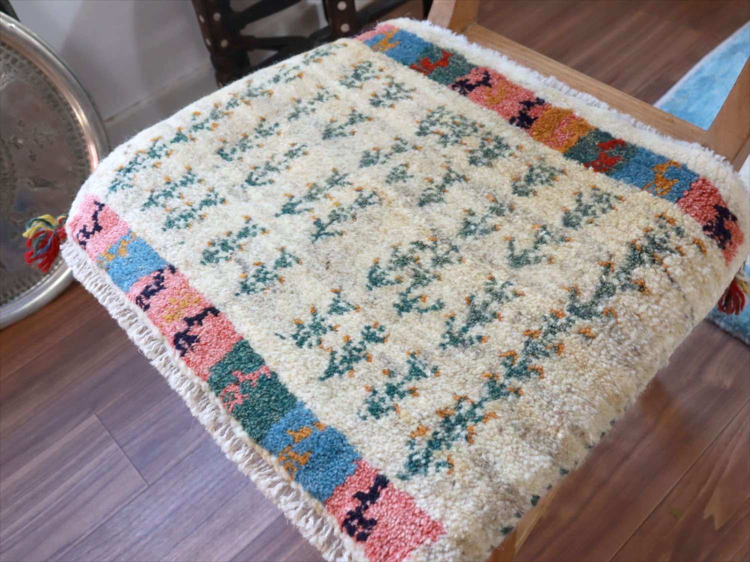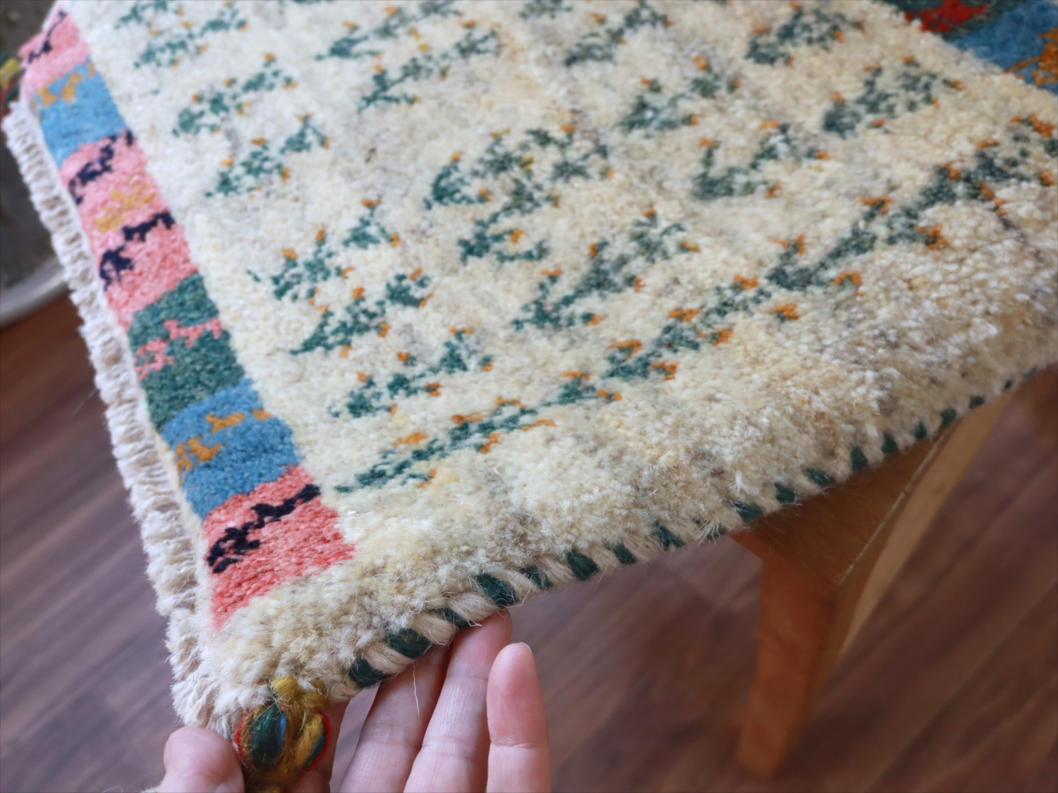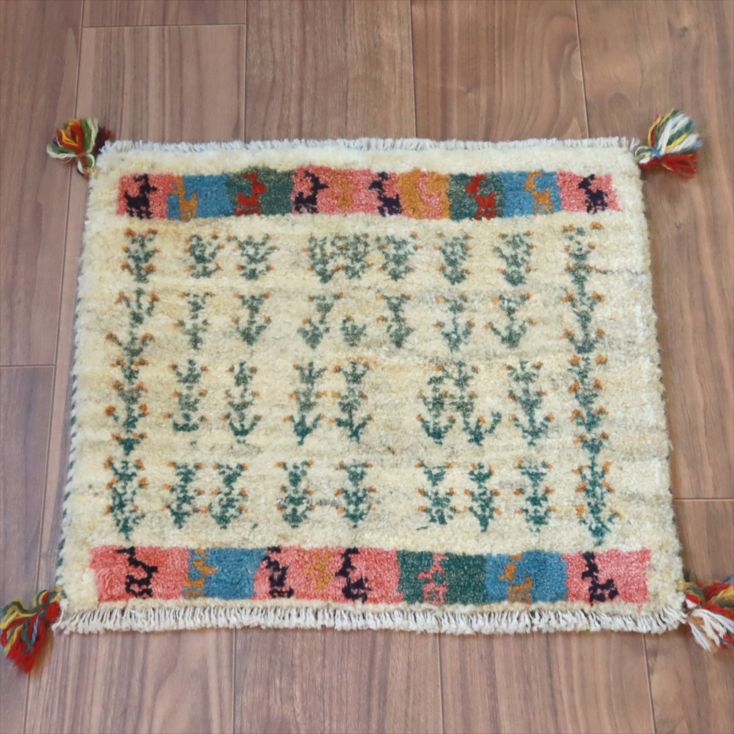ギャッベ イラン産手織り 座布団サイズ 39x47cm ナチュラルアイボリー