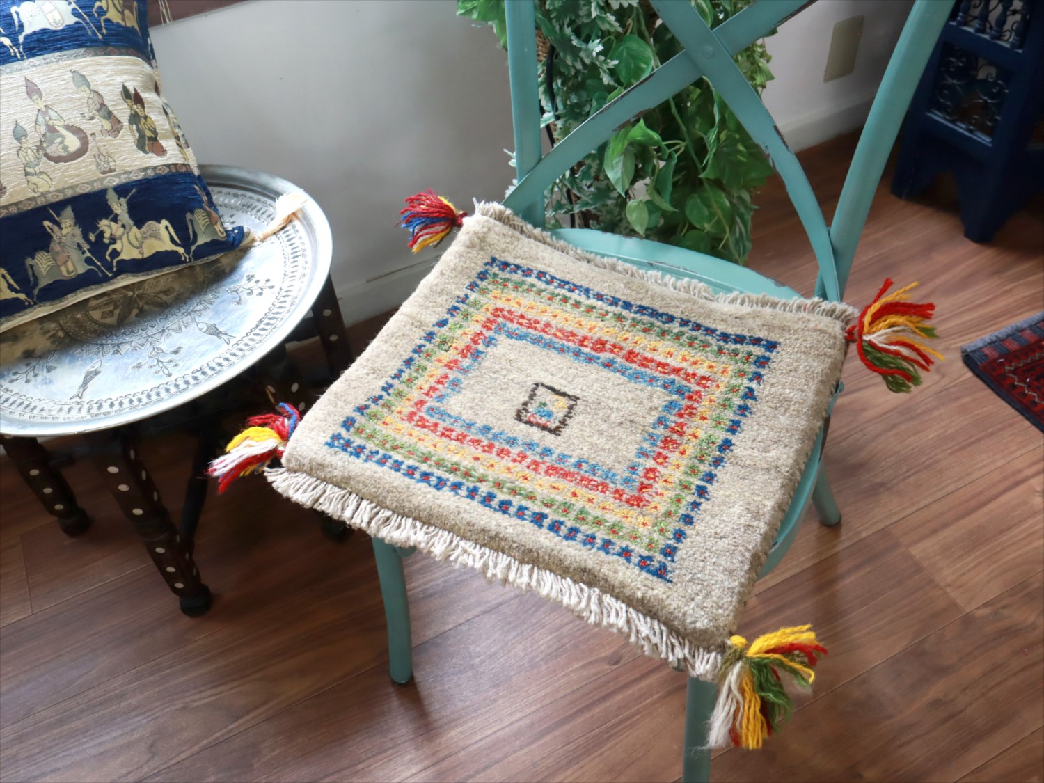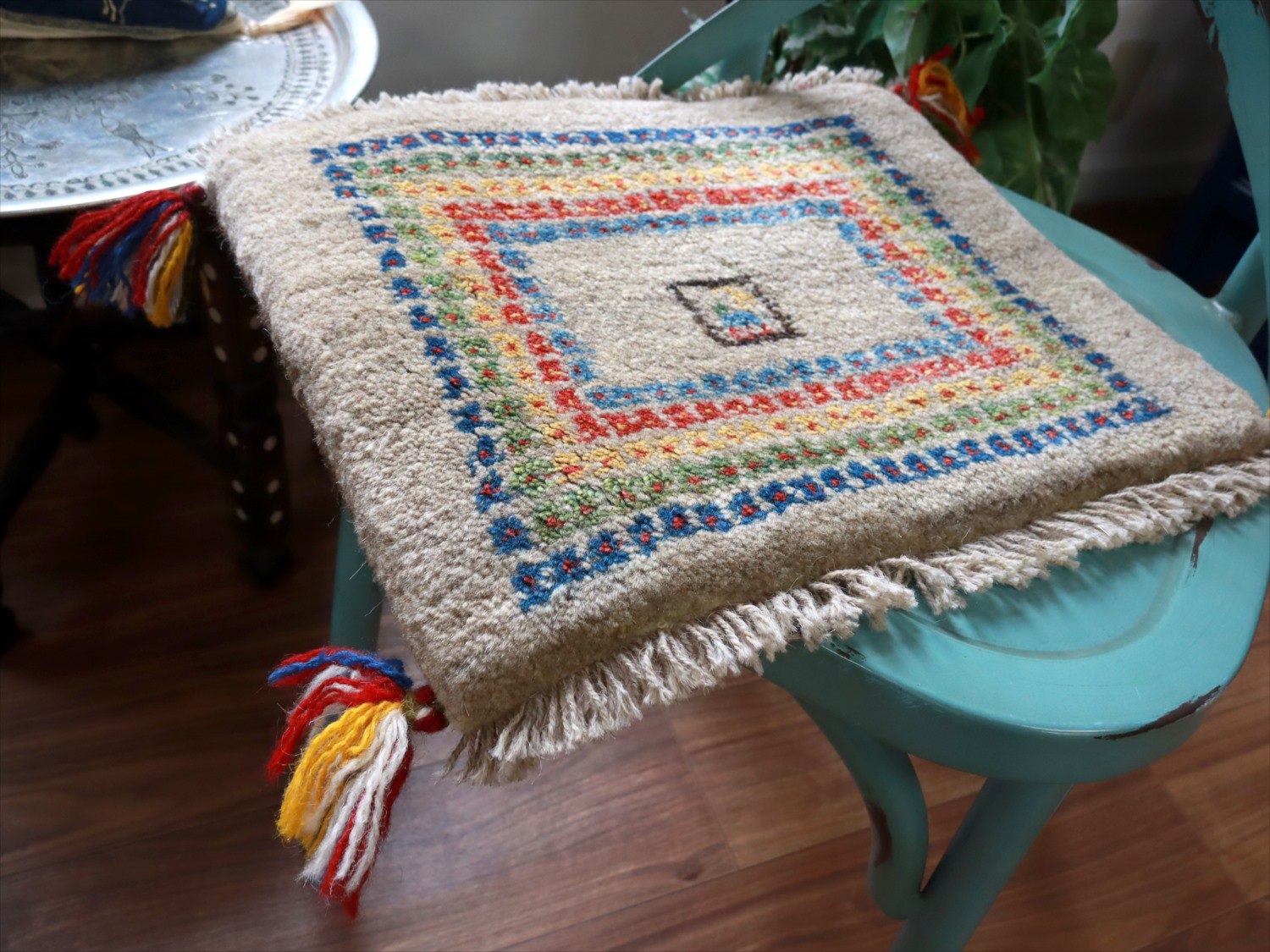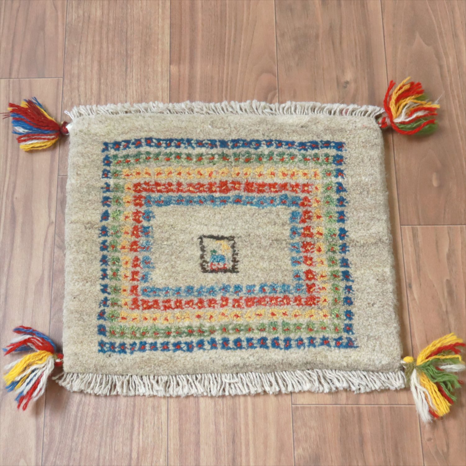 - ギャッベ イラン産手織り 座布団サイズ 35x41cm ナチュラルアイボリー