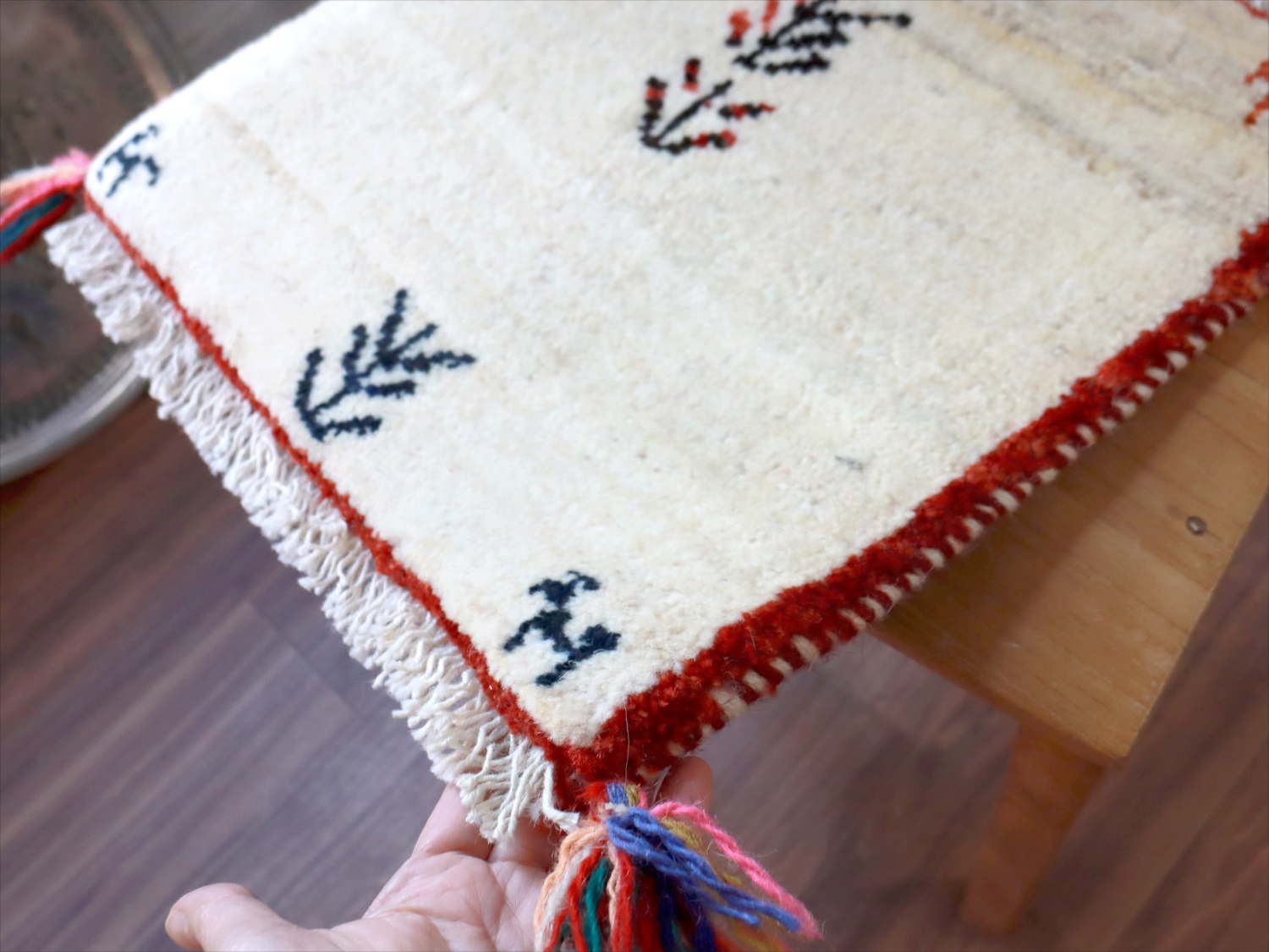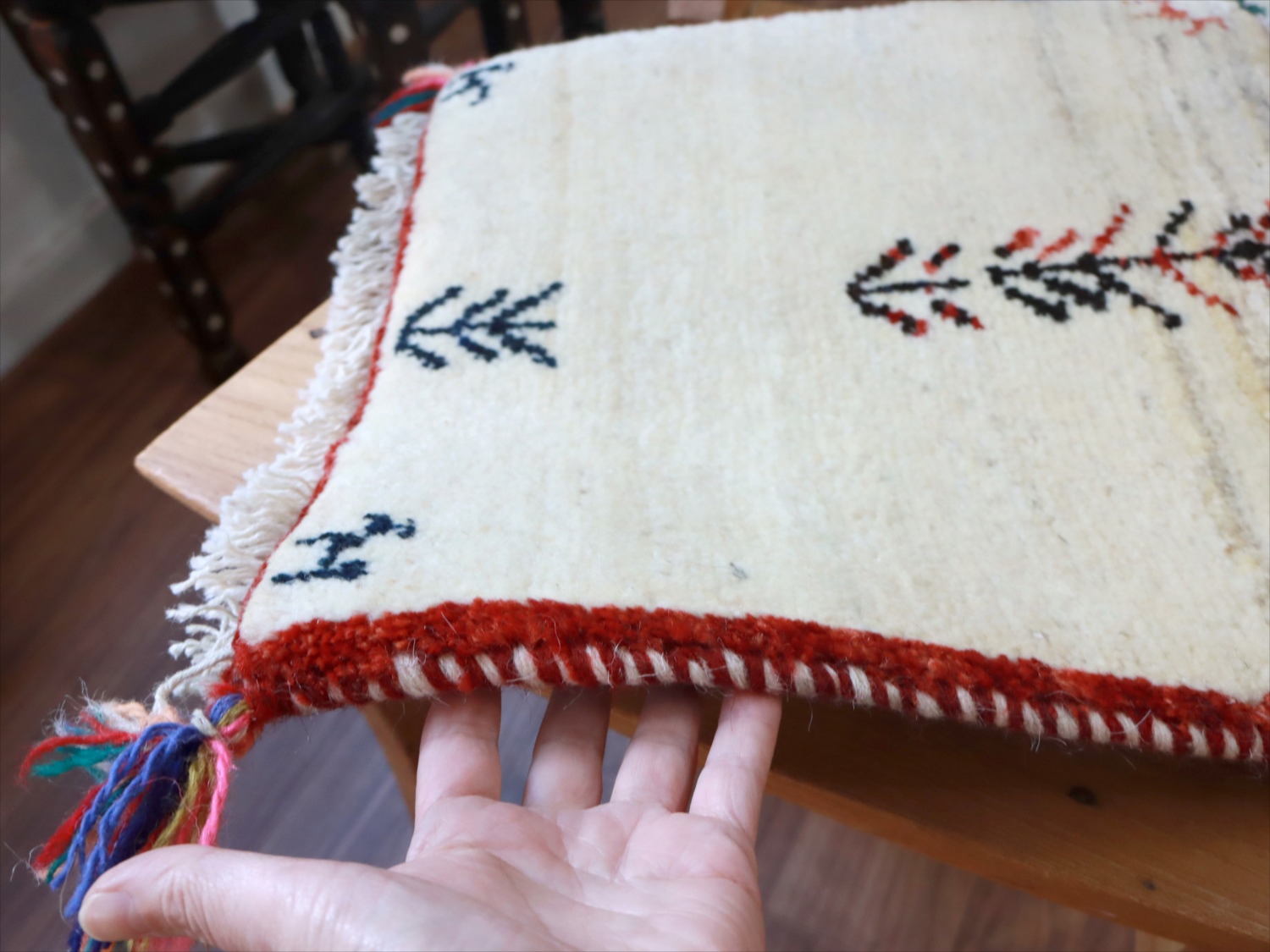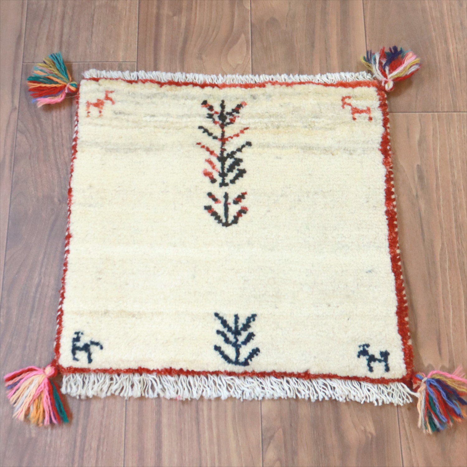 ギャッベ イラン産手織り 座布団サイズ 38x40cm ナチュラルアイボリー