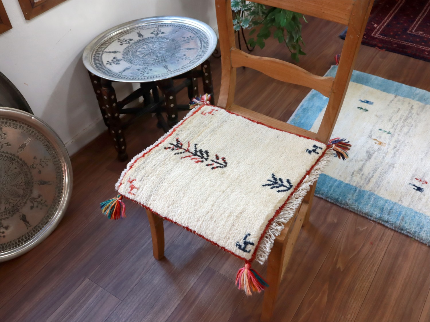 - ギャッベ イラン産手織り 座布団サイズ 38x40cm ナチュラルアイボリー