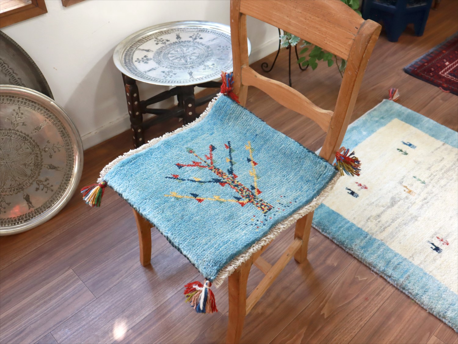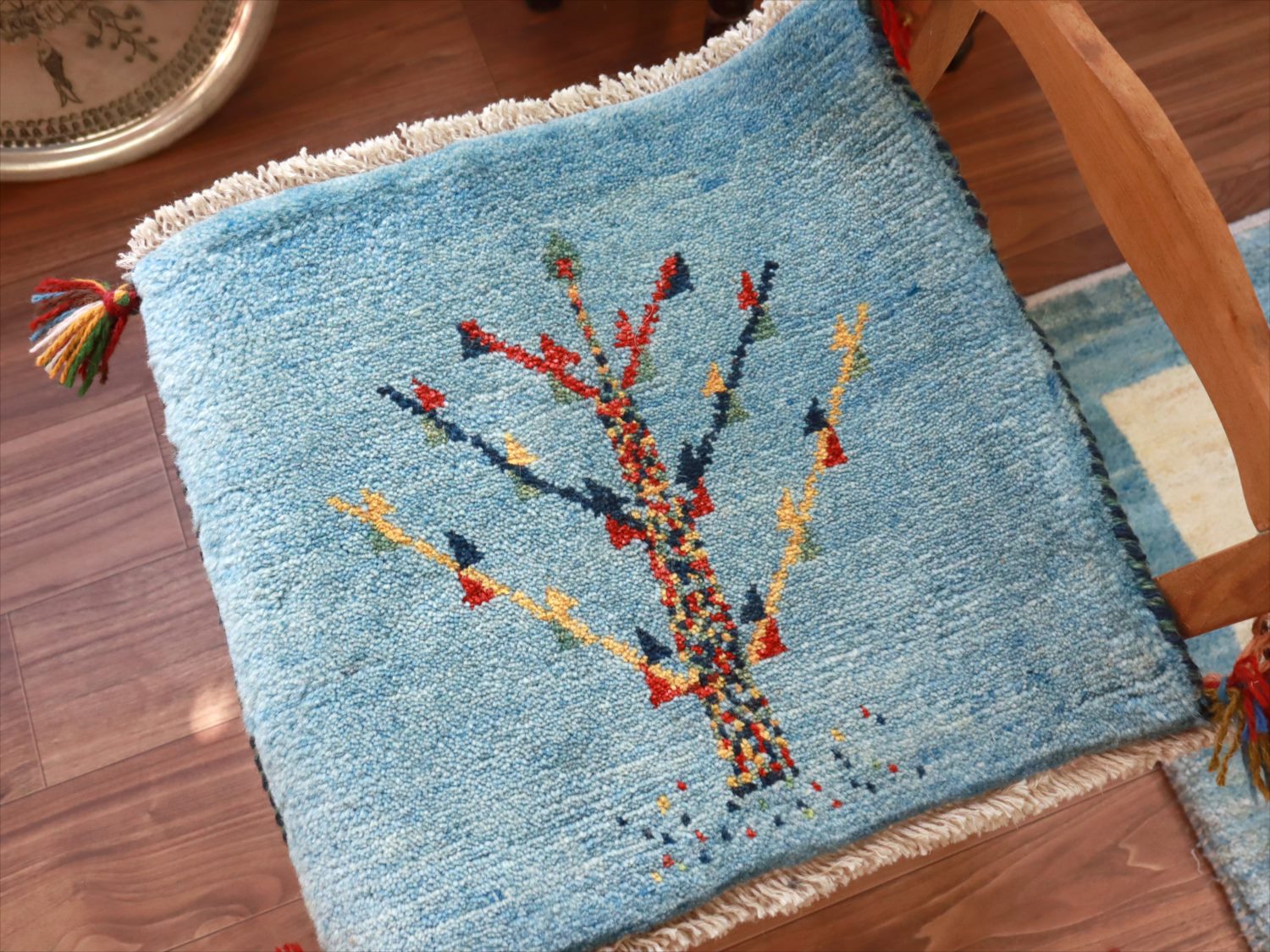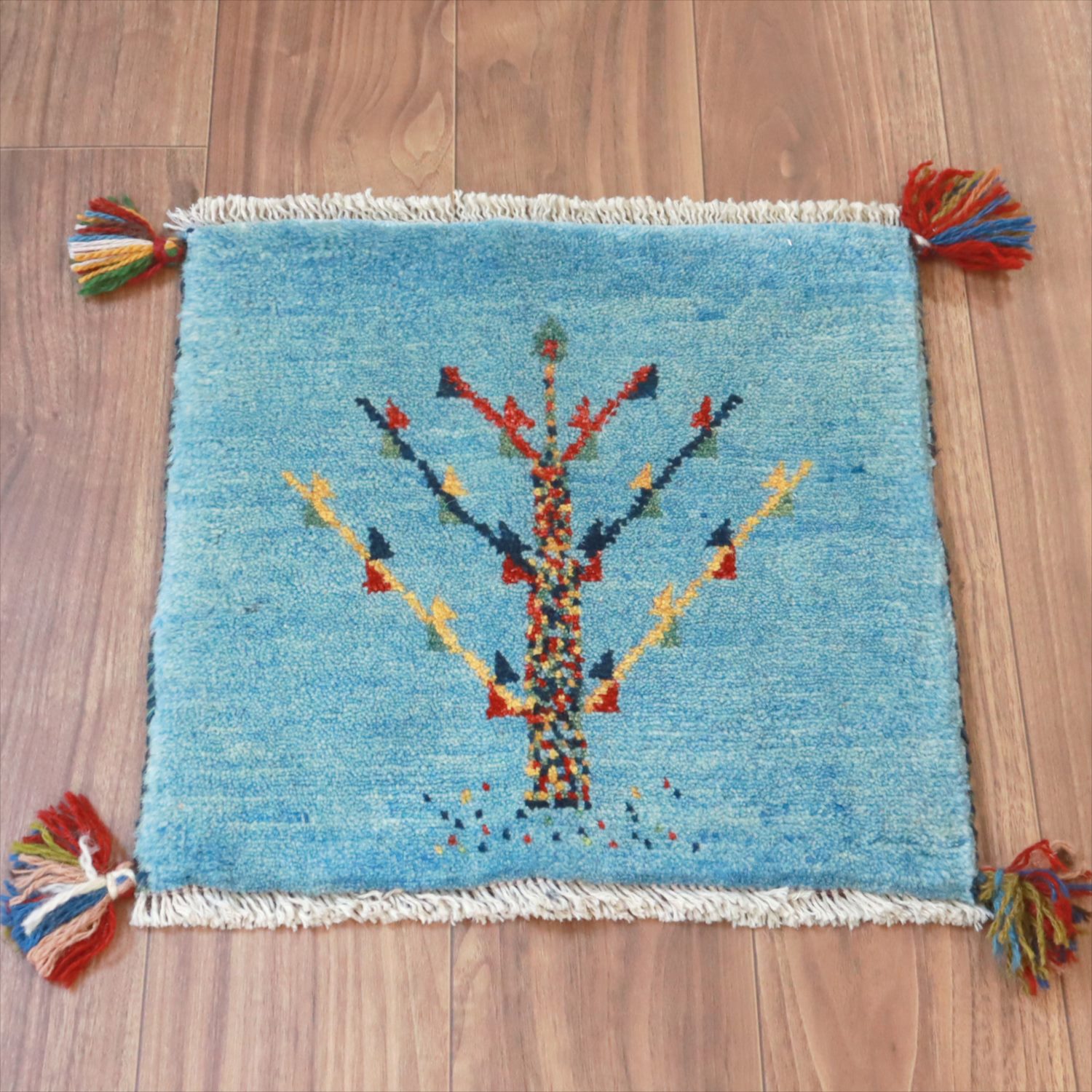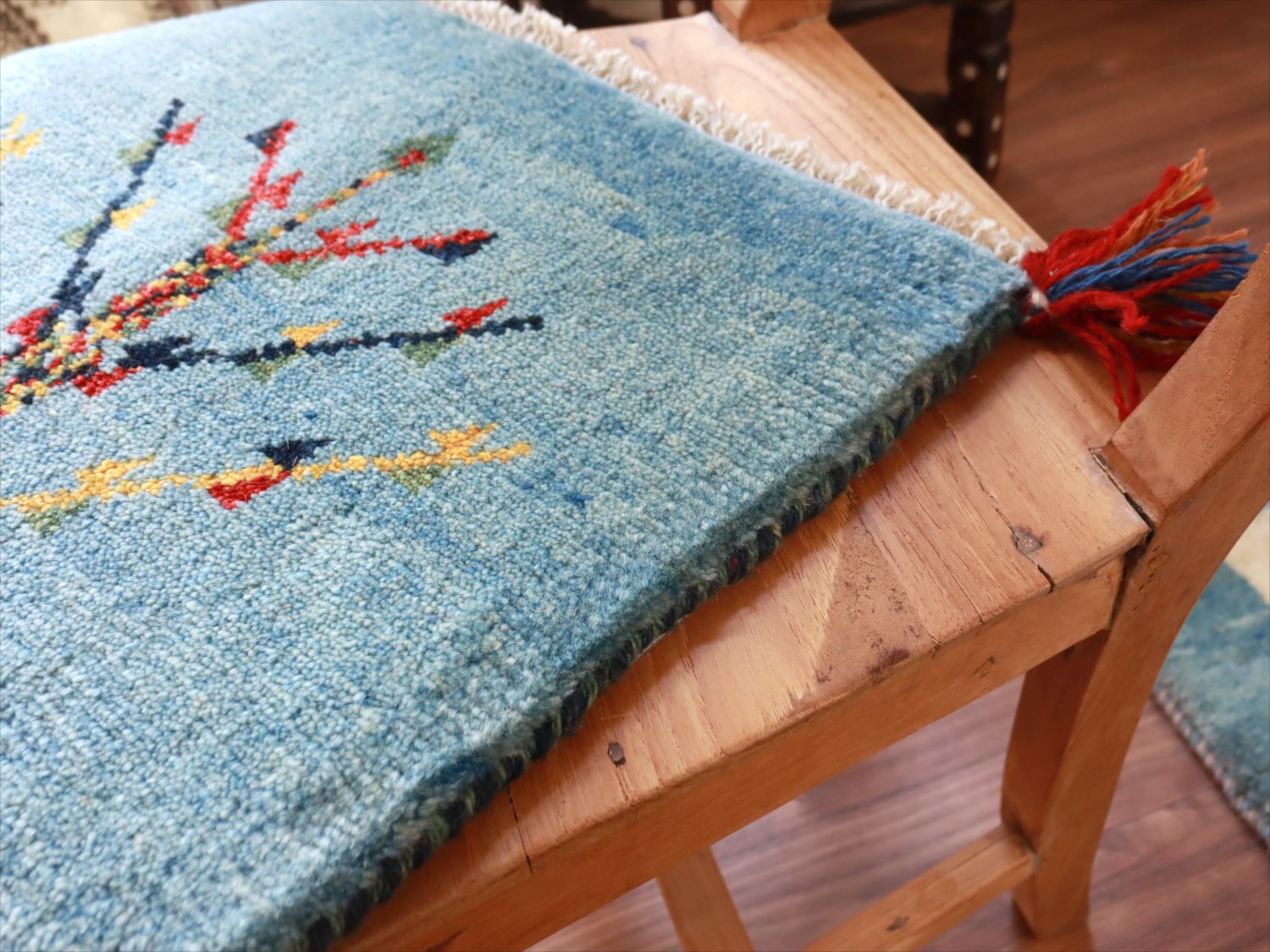 ギャッベ イラン産手織り 座布団サイズ 41x43cm ブルー