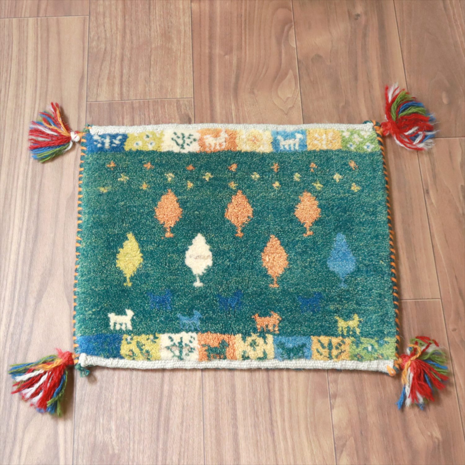 ギャッベ イラン産手織り 座布団サイズ 34x39cm グリーン