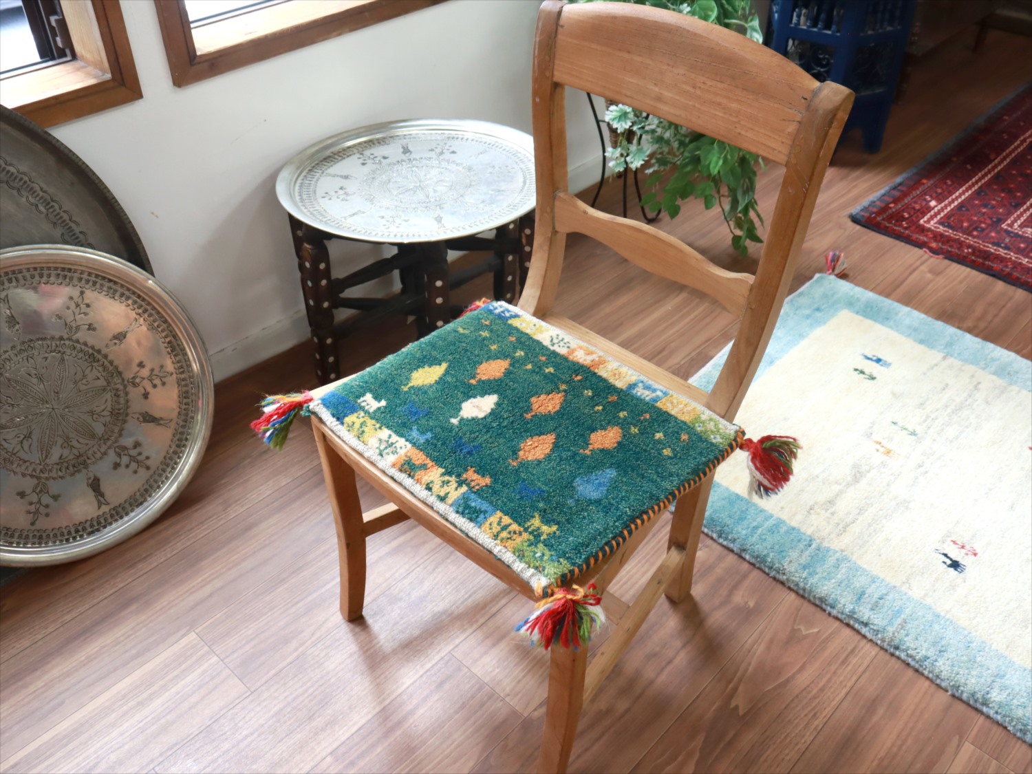 | 昔ながらの素朴なスタイルで織られた、イラン産の手織りギャッベです。デザイン上、少し横長になってしまったようで、小さめチェアの座面にあわせやすい変形サイズになりました。 |