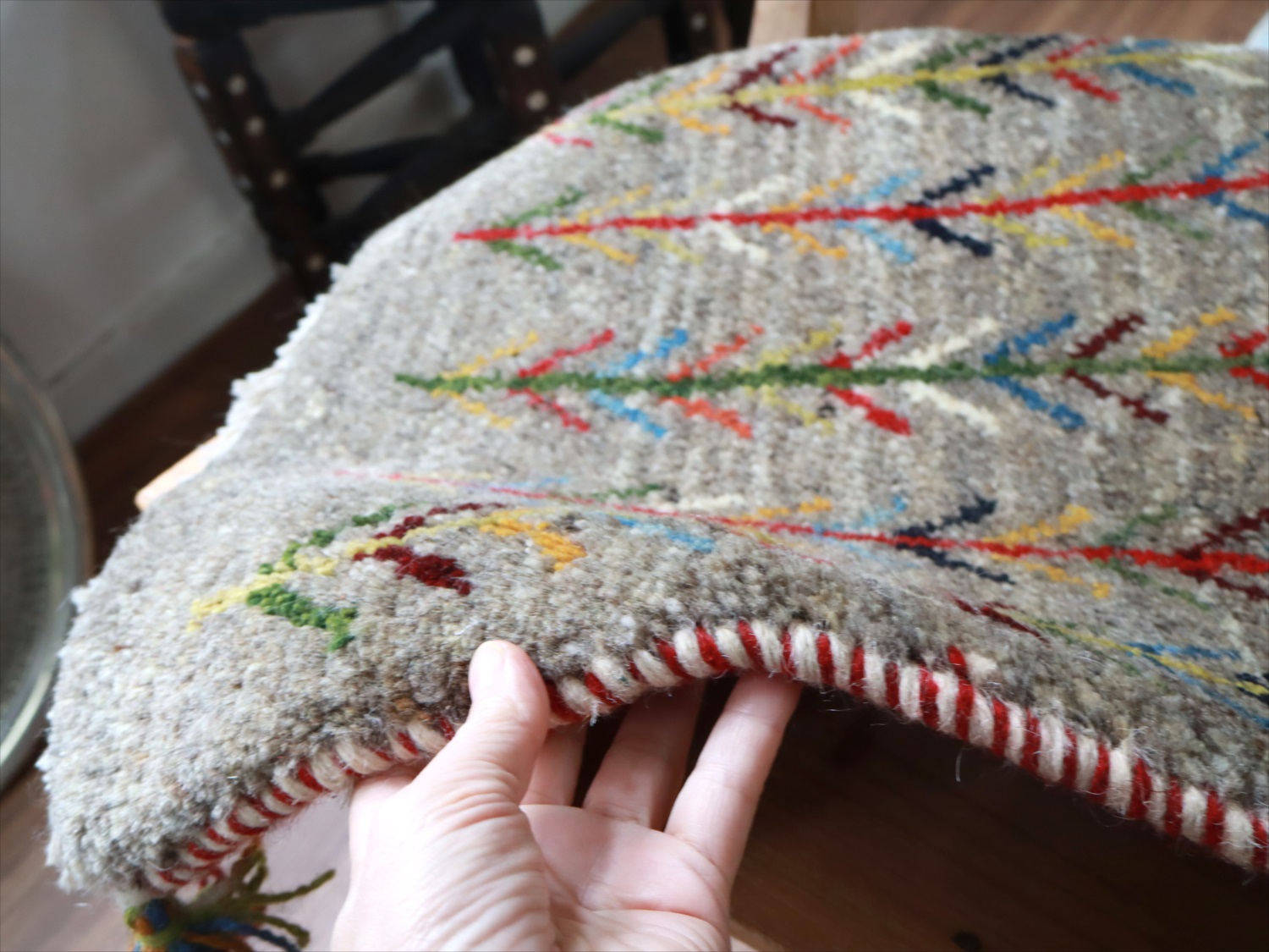 - ギャッベ イラン産手織り 座布団サイズ 41x43cm ナチュラルアイボリー