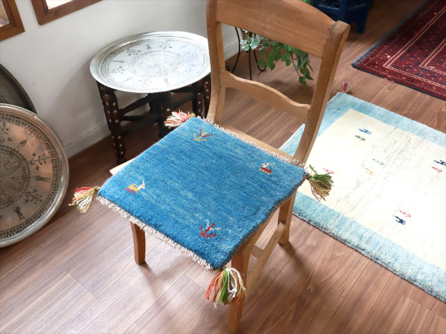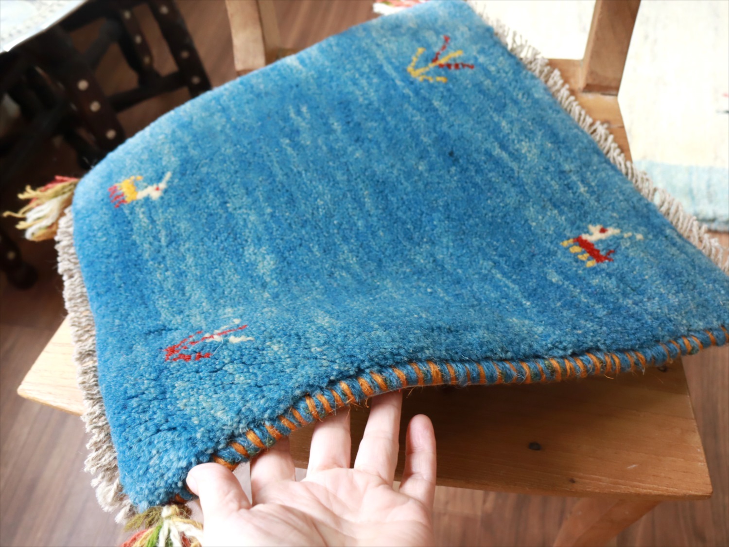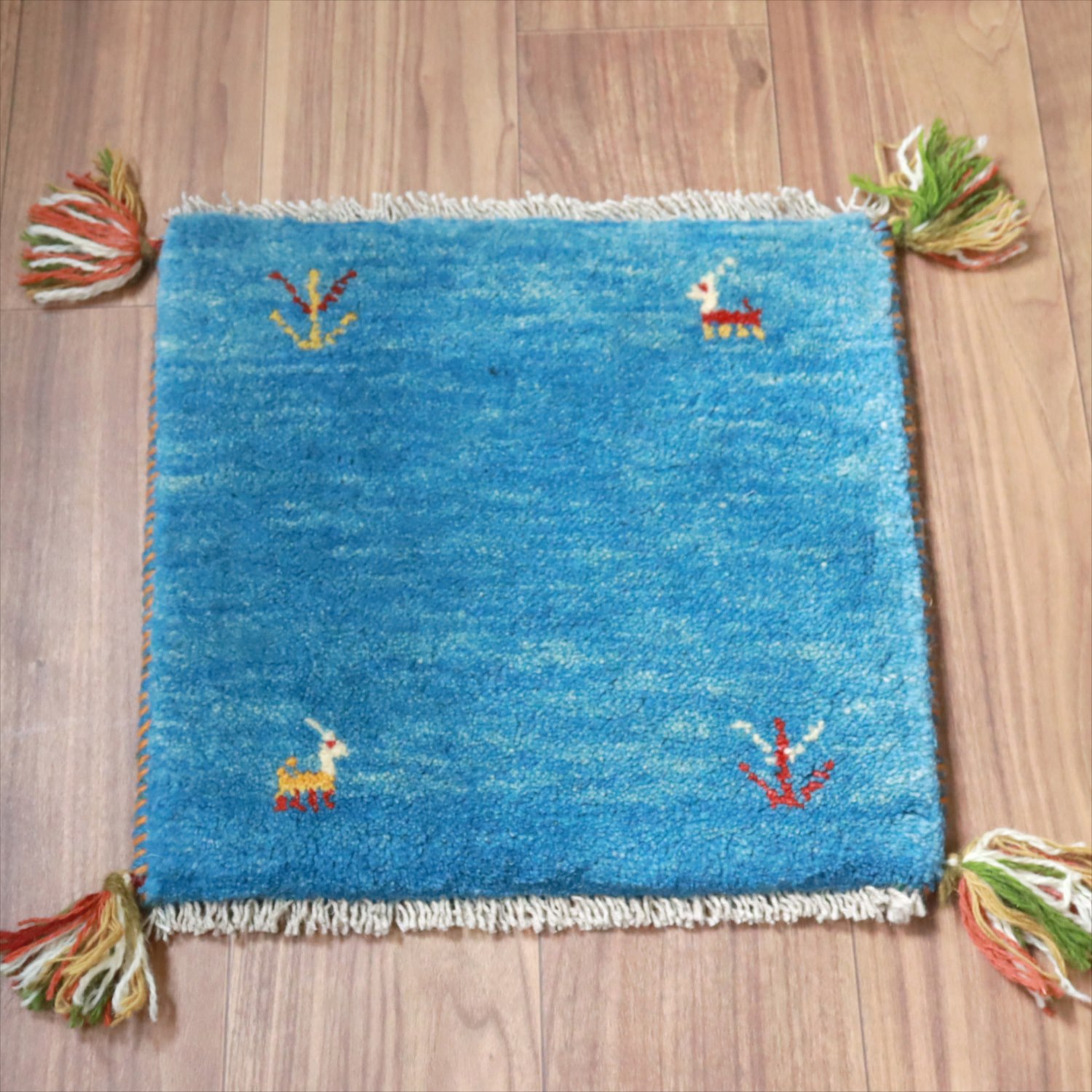 ギャッベ イラン産手織り 座布団サイズ 39x40cm ブルー