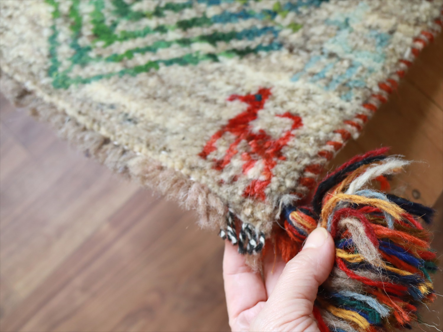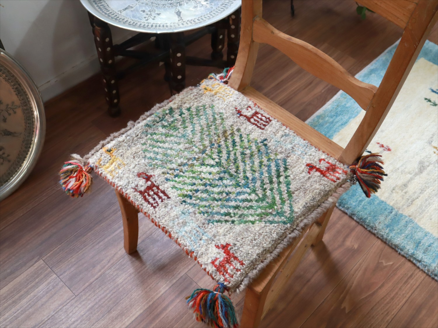 ギャッベ イラン産手織り 座布団サイズ 39x36cm ナチュラルアイボリー