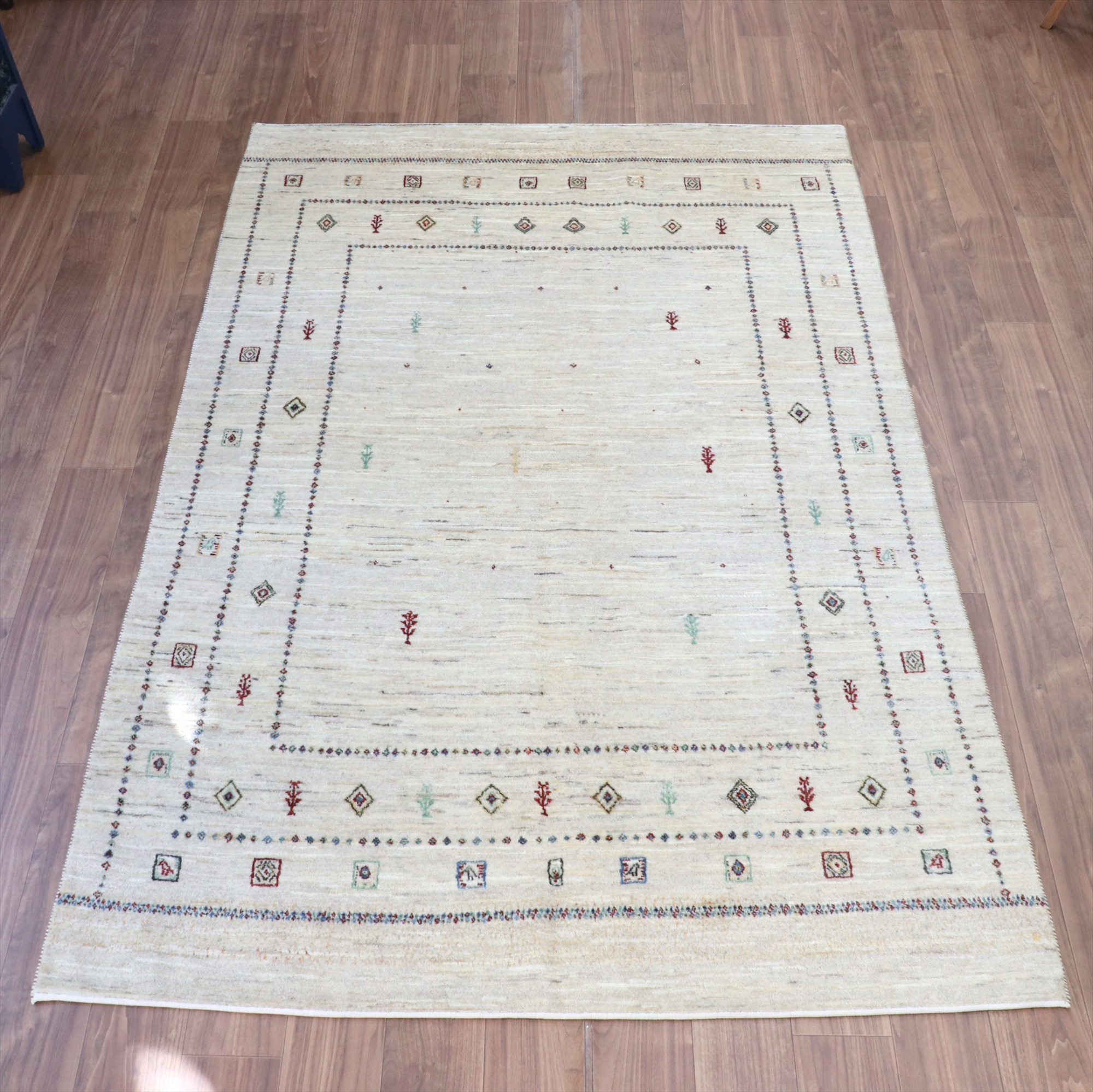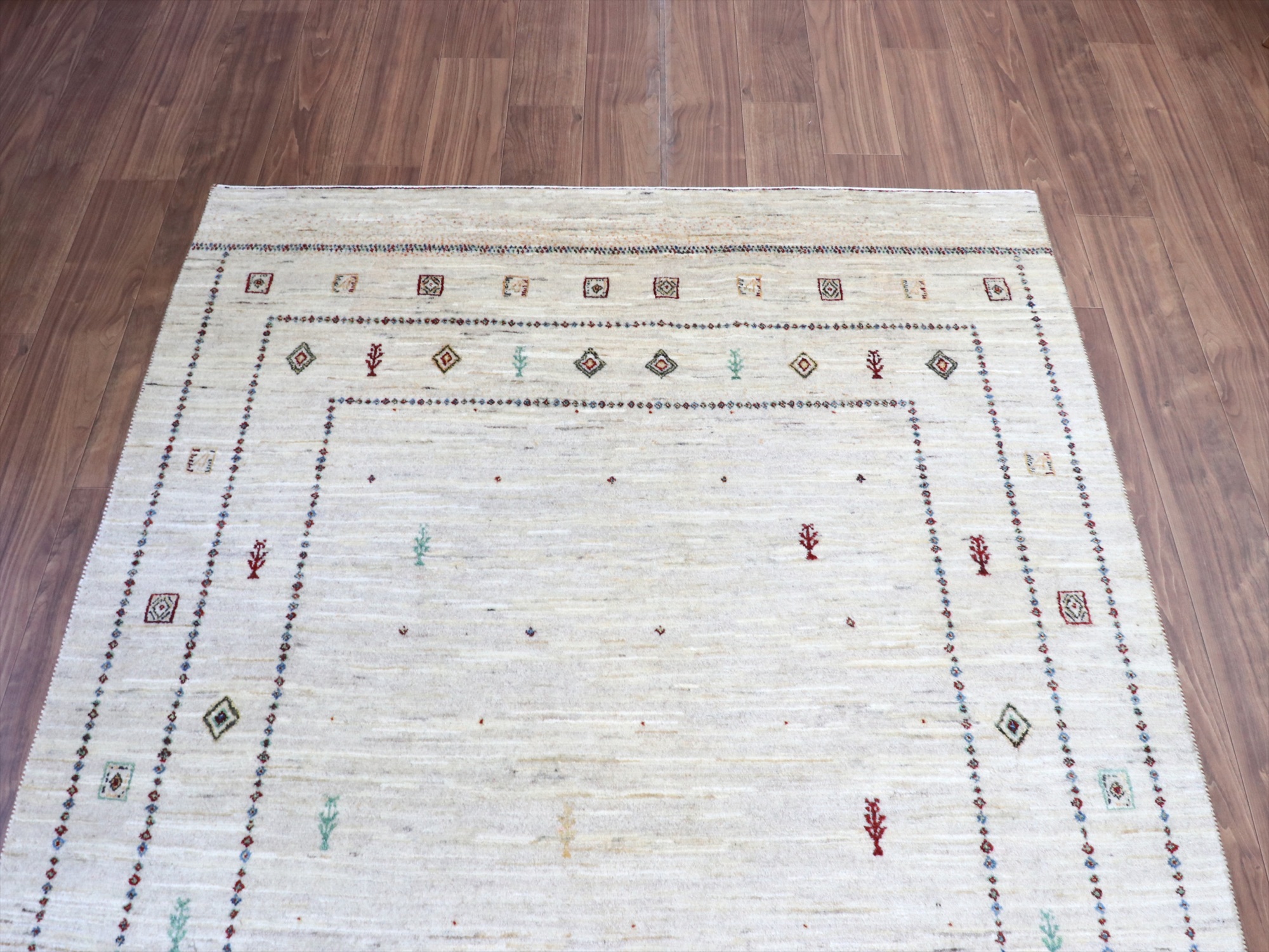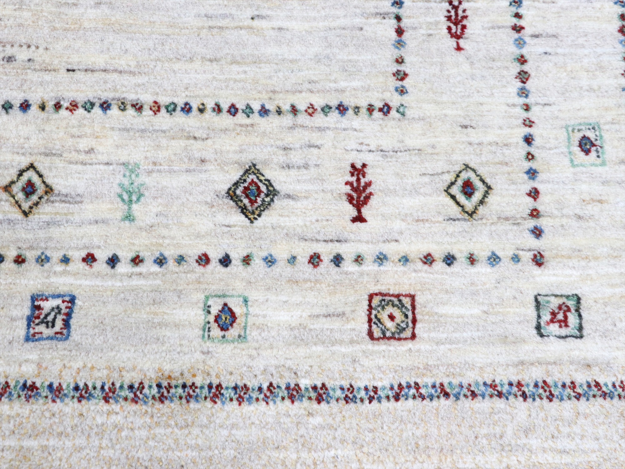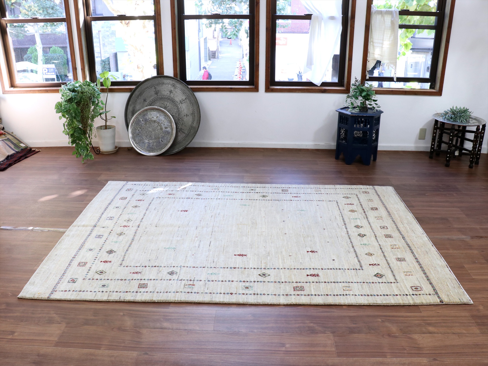 - ギャッベ イラン 手織り リズバフト 細かな織り 234x164cm 無染色のアイボリー 生命の木モチーフ