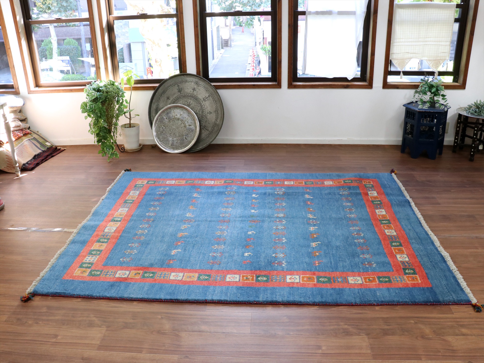 Key:ギャベ, ラグ, 手織り絨毯, 部族絨毯, カシュカイ族, ウール製, ブルー, 青色, タイル, リビング, ダイニング, ソファ前, 厚手, 東京,中野区, ガラタバザール, Gabbeh, Tribal Rug, Hand knotted, wool, Shiraz, Fars, Quashkai