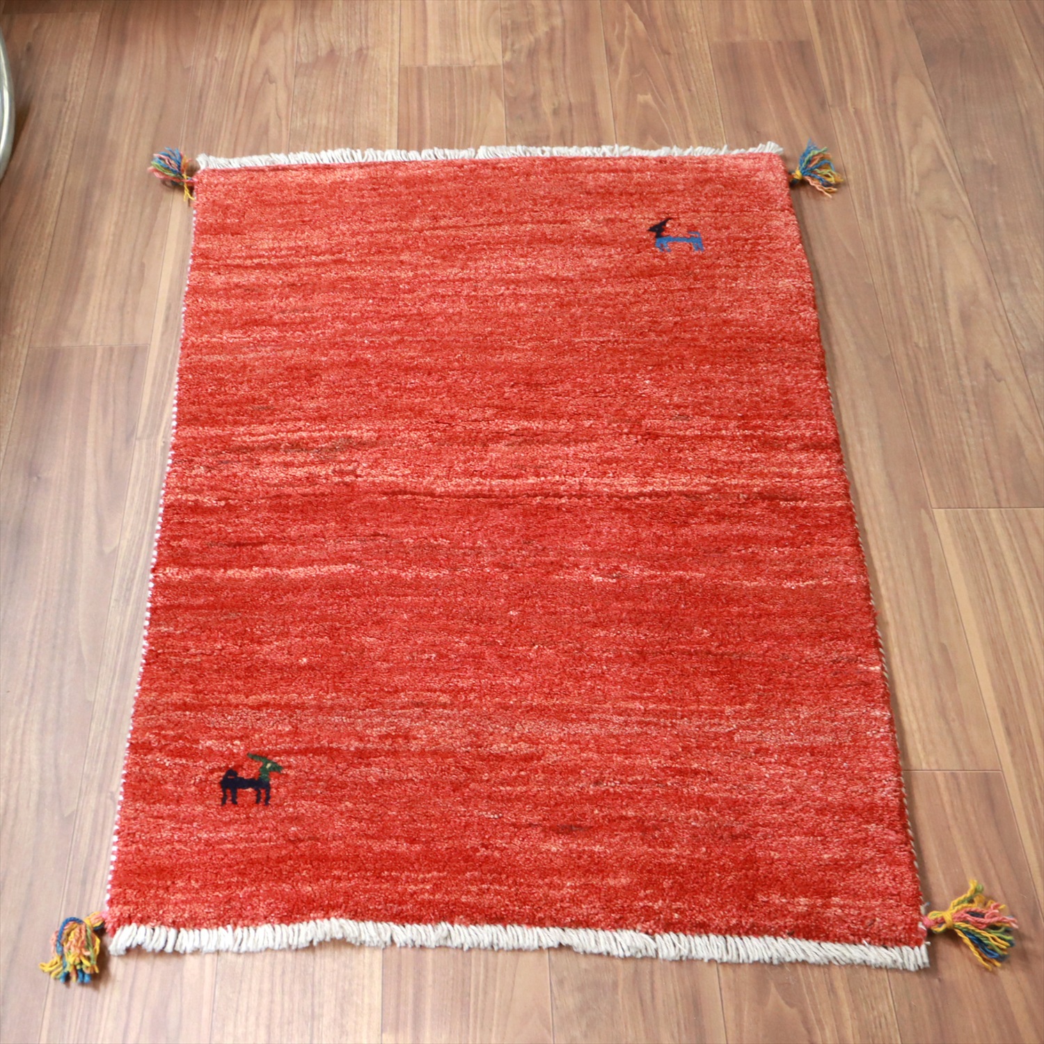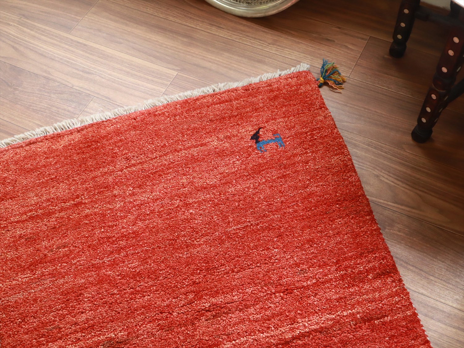 - ギャッベ 90's イラン 手織りラグ 113x82cm 素朴な織り 明るいレッド