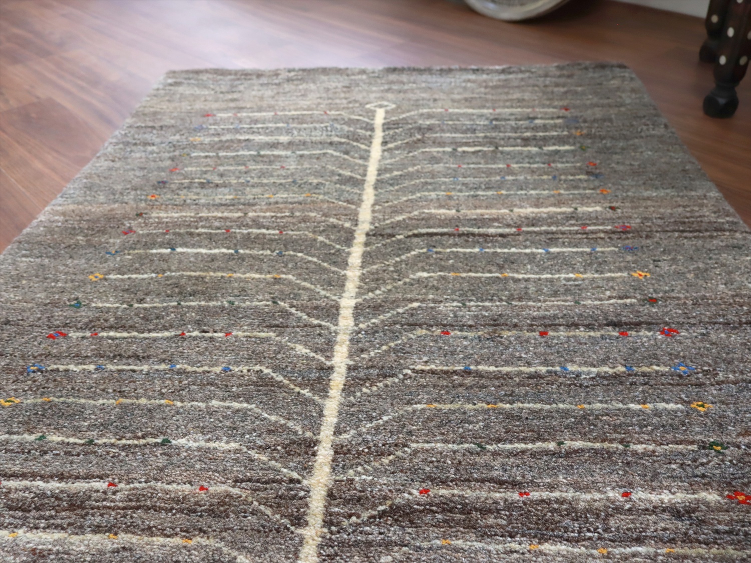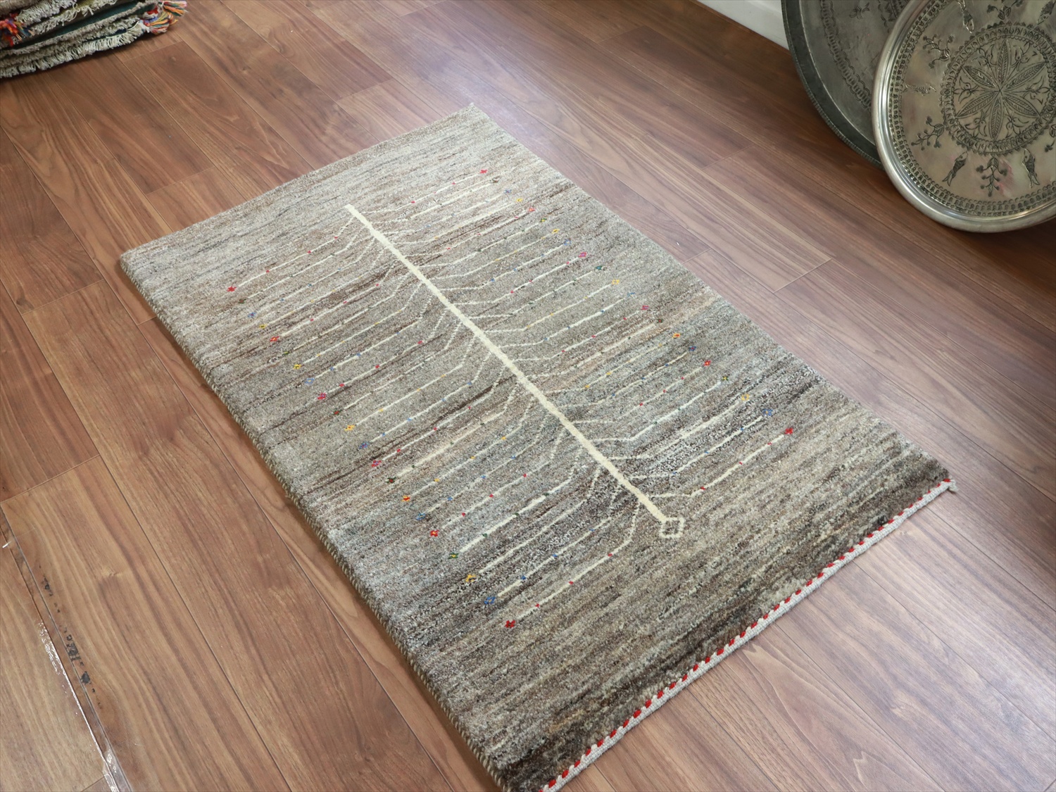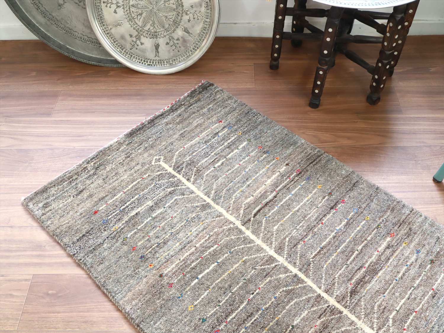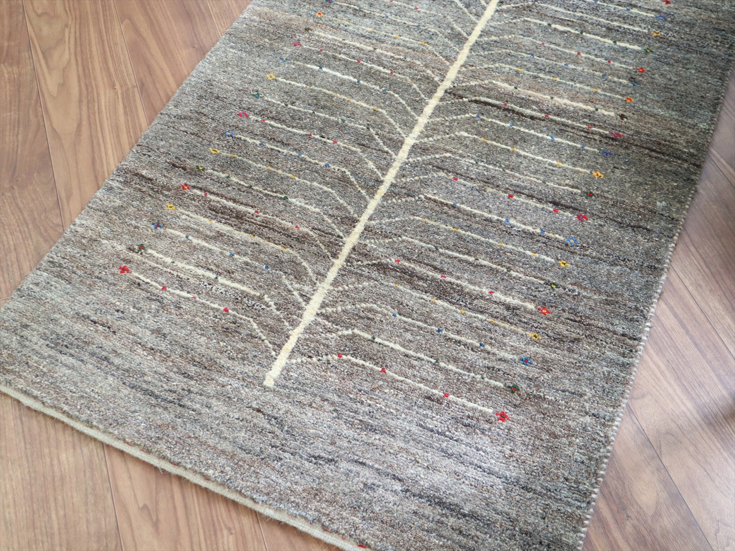 ギャッベ イラン 手織りラグ 123x78cm Gabbeh Nomad 無染色のグレー 生命の木