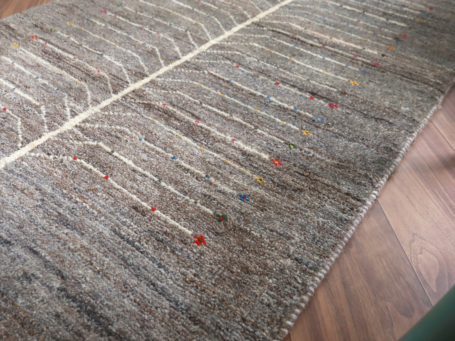 - ギャッベ イラン 手織りラグ 123x78cm Gabbeh Nomad 無染色のグレー 生命の木