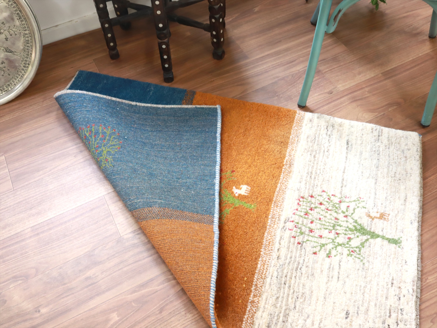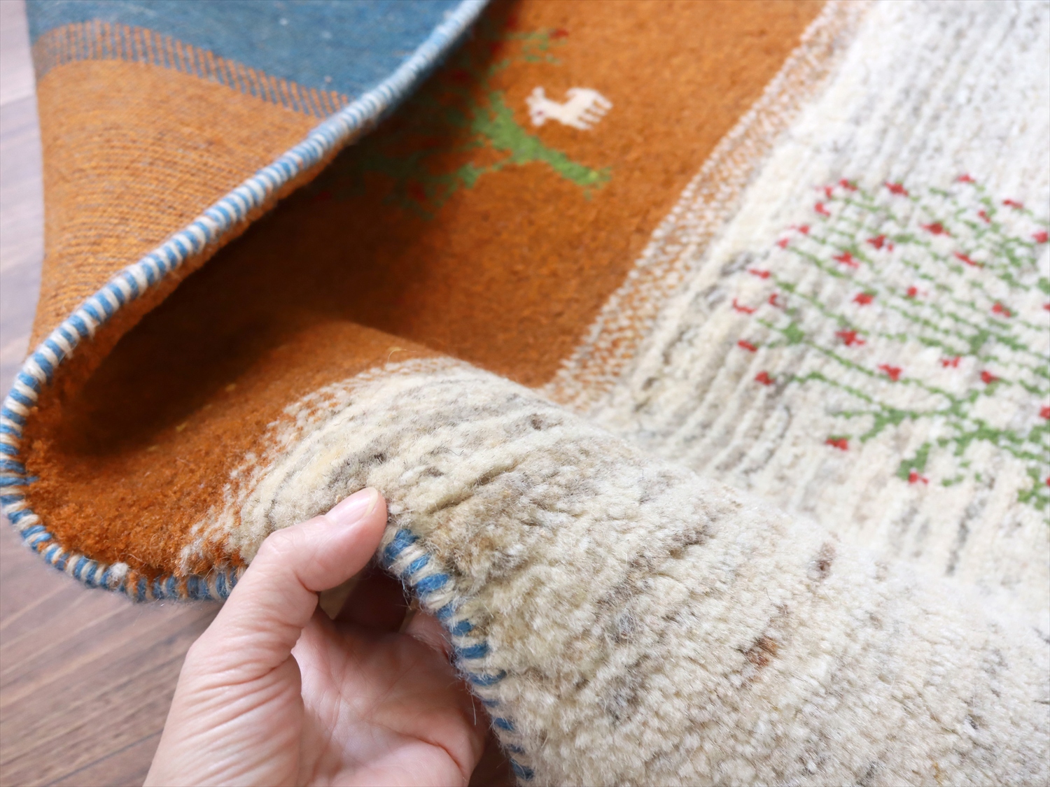 ギャッベ イラン 手織りラグ 120x80cm Gabbeh Nomad 花をつけた生命の木の風景