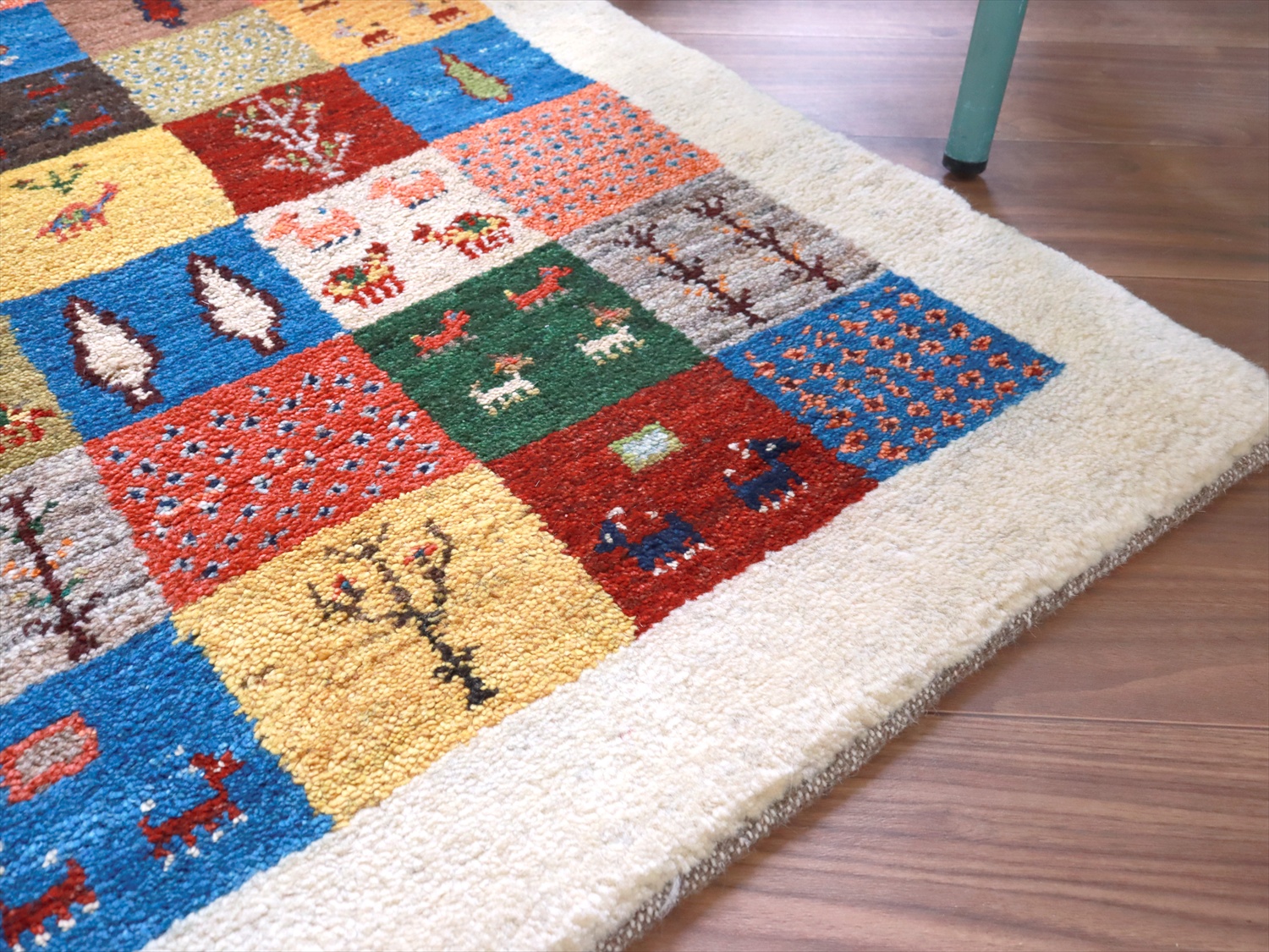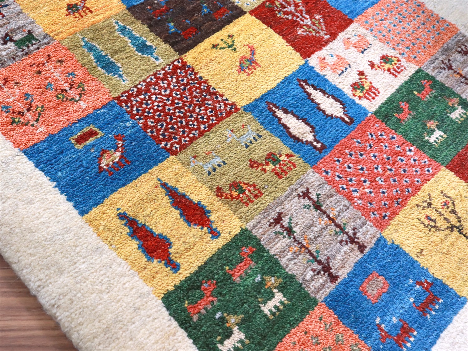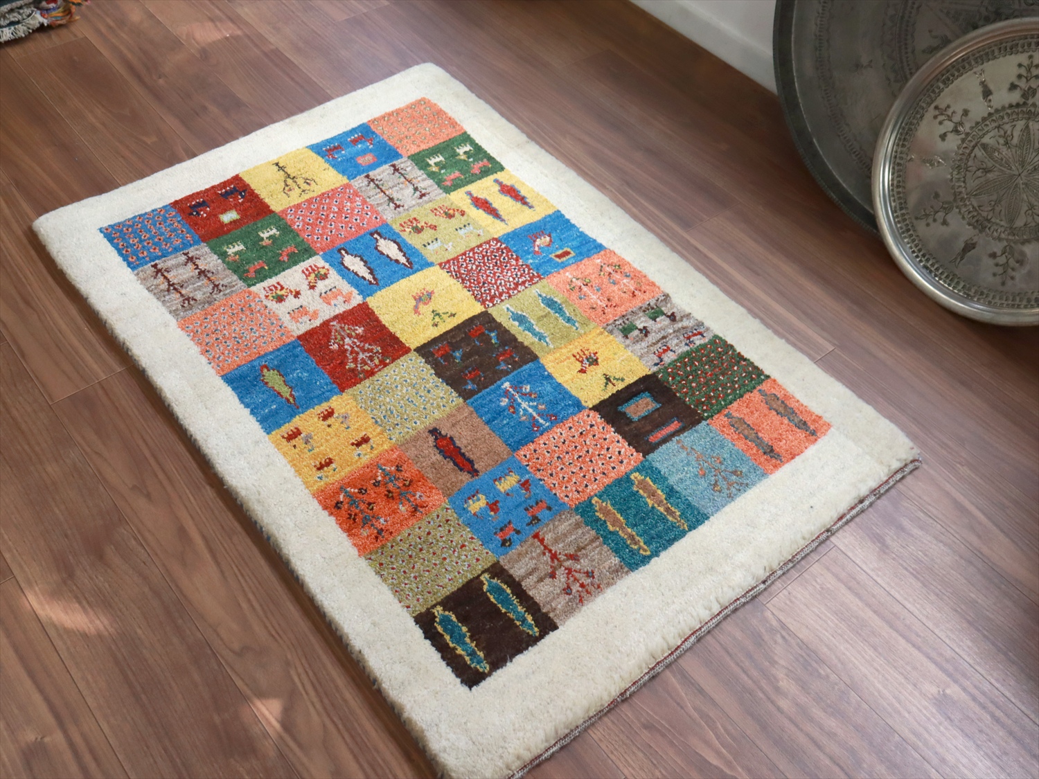 ギャッベ イラン 手織りラグ 120x85cm Gabbeh Nomad カラフルなモザイクのようなタイルデザイン