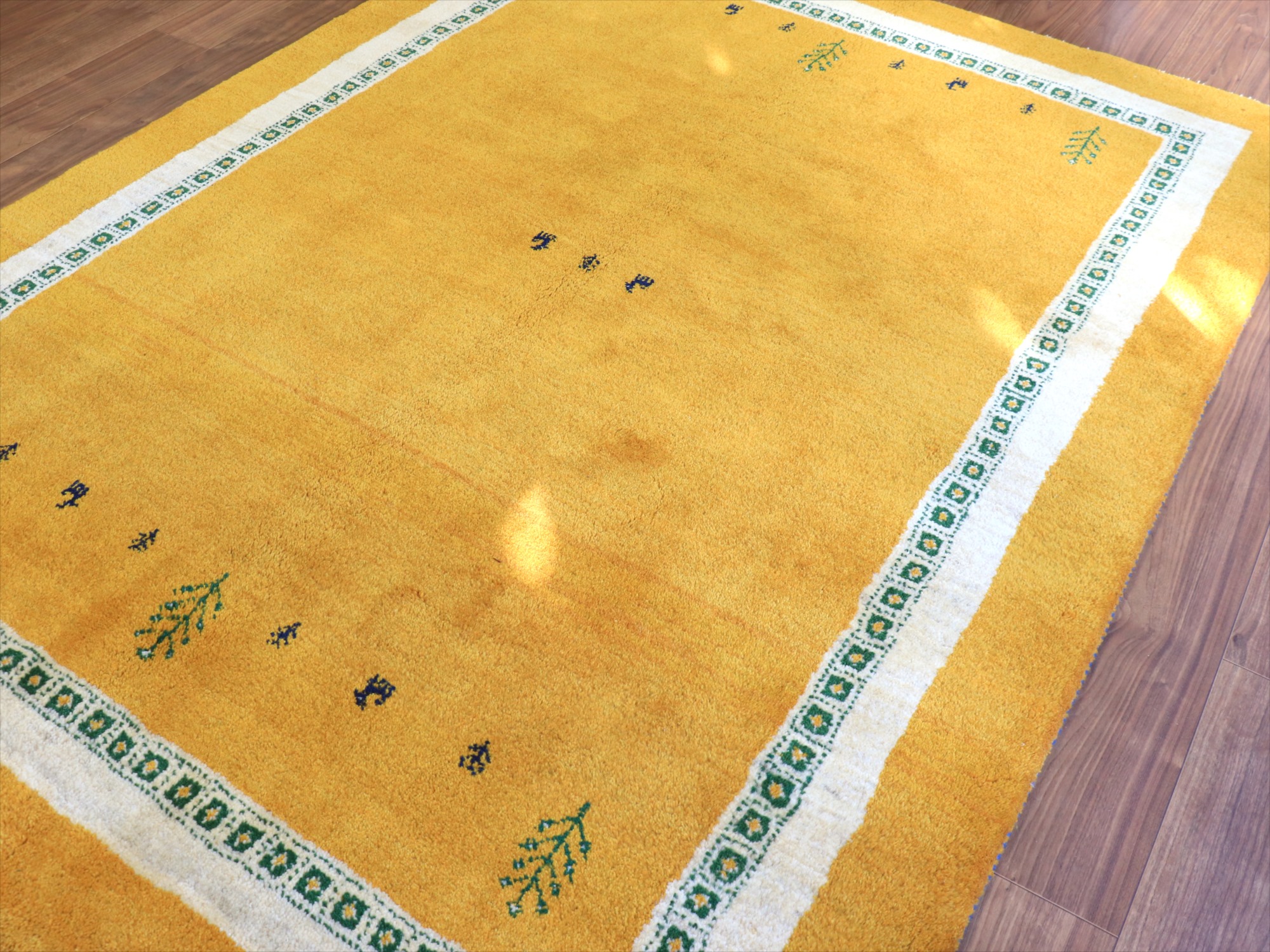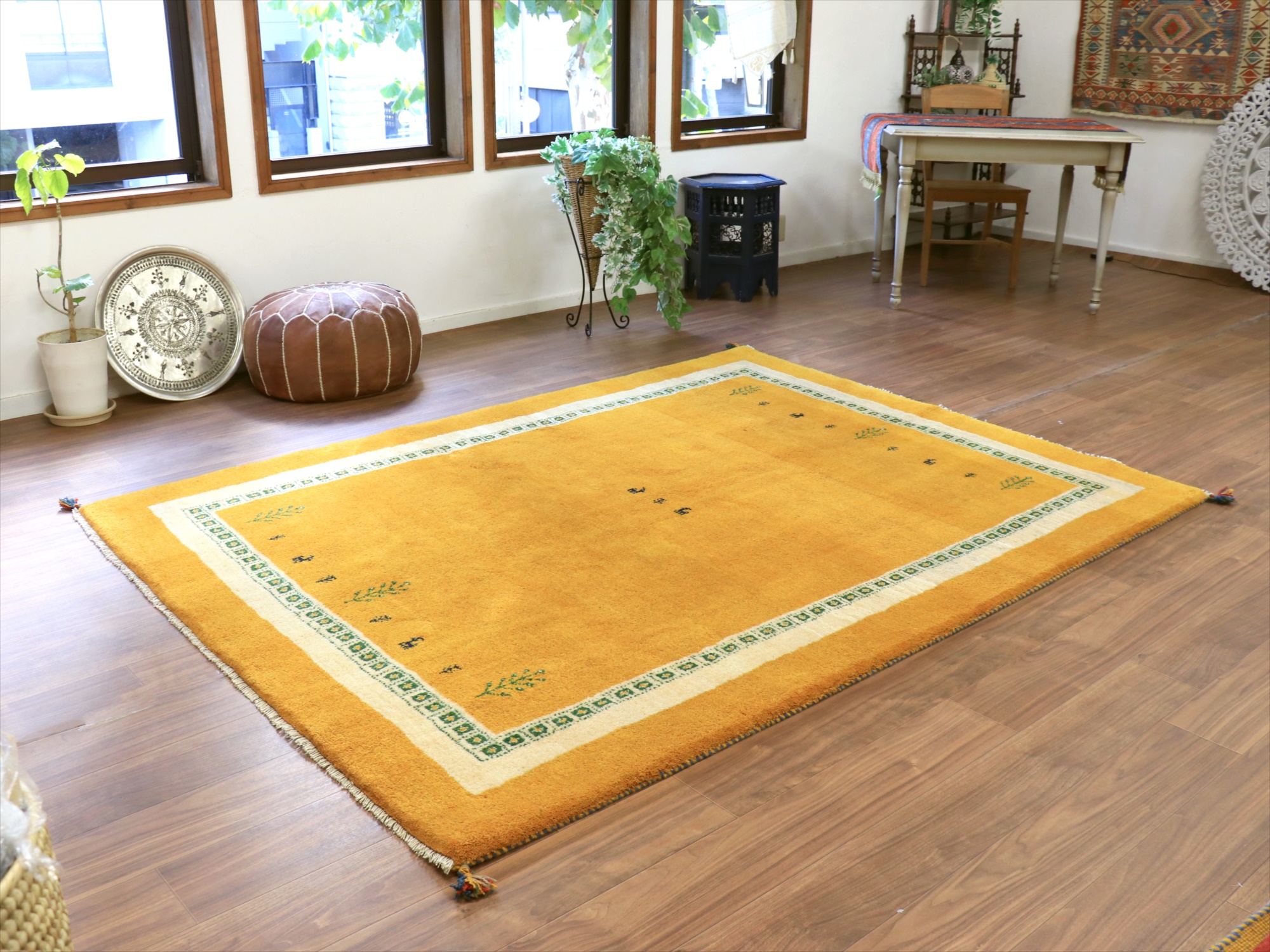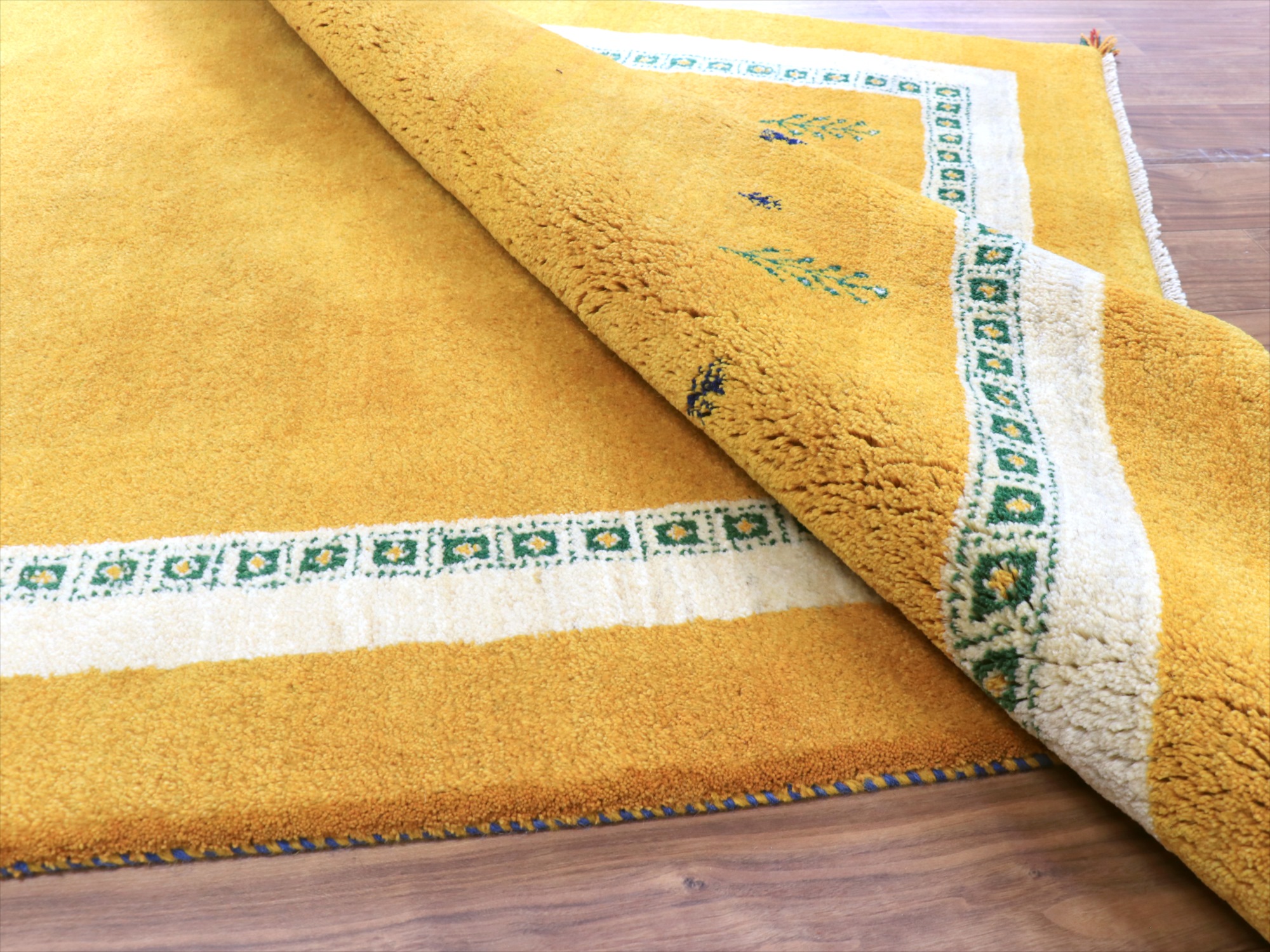 ギャッベ オレンジ イエロー 234x170cm ベージュのボーダー イラン産手織りラグ
