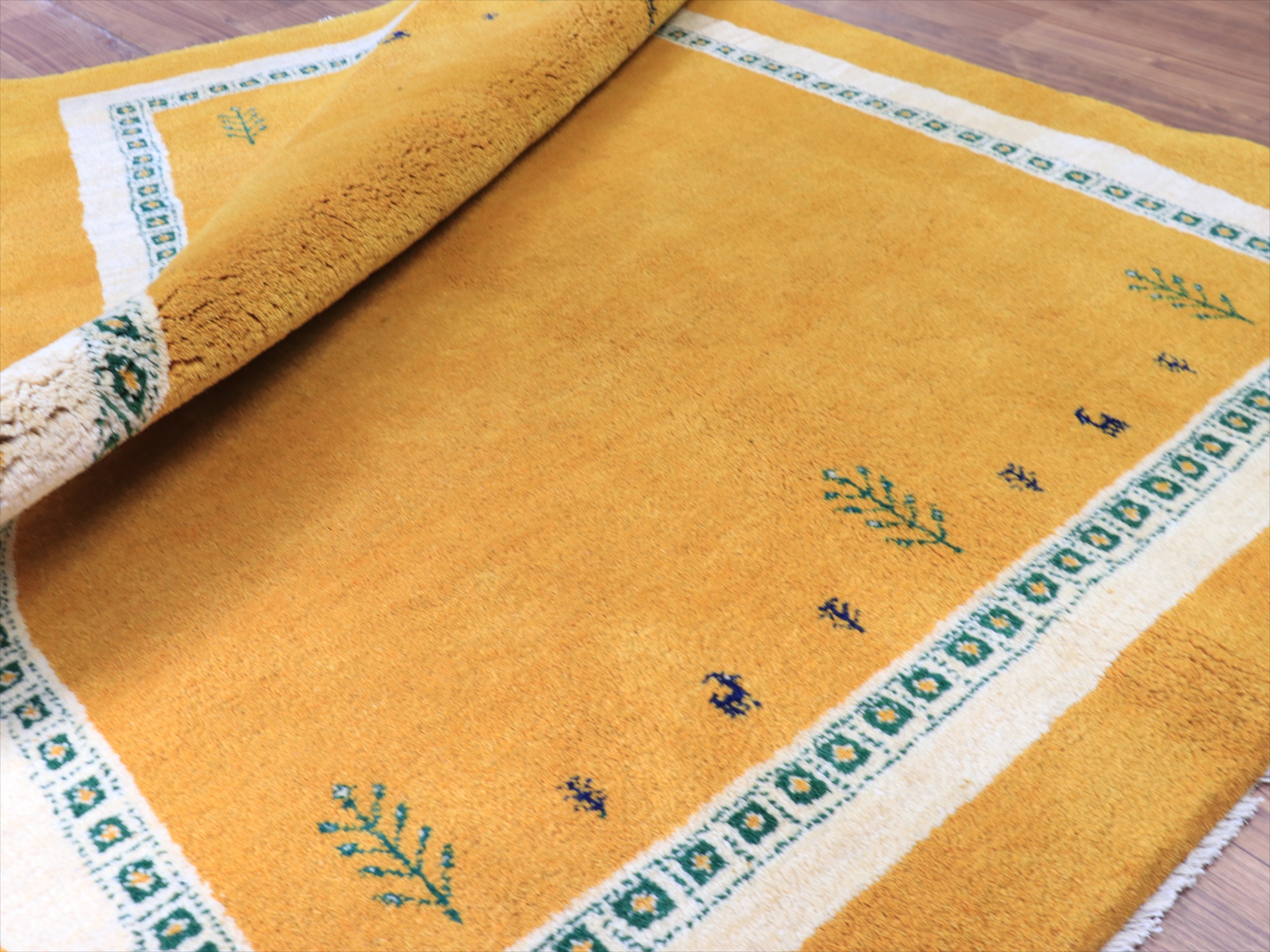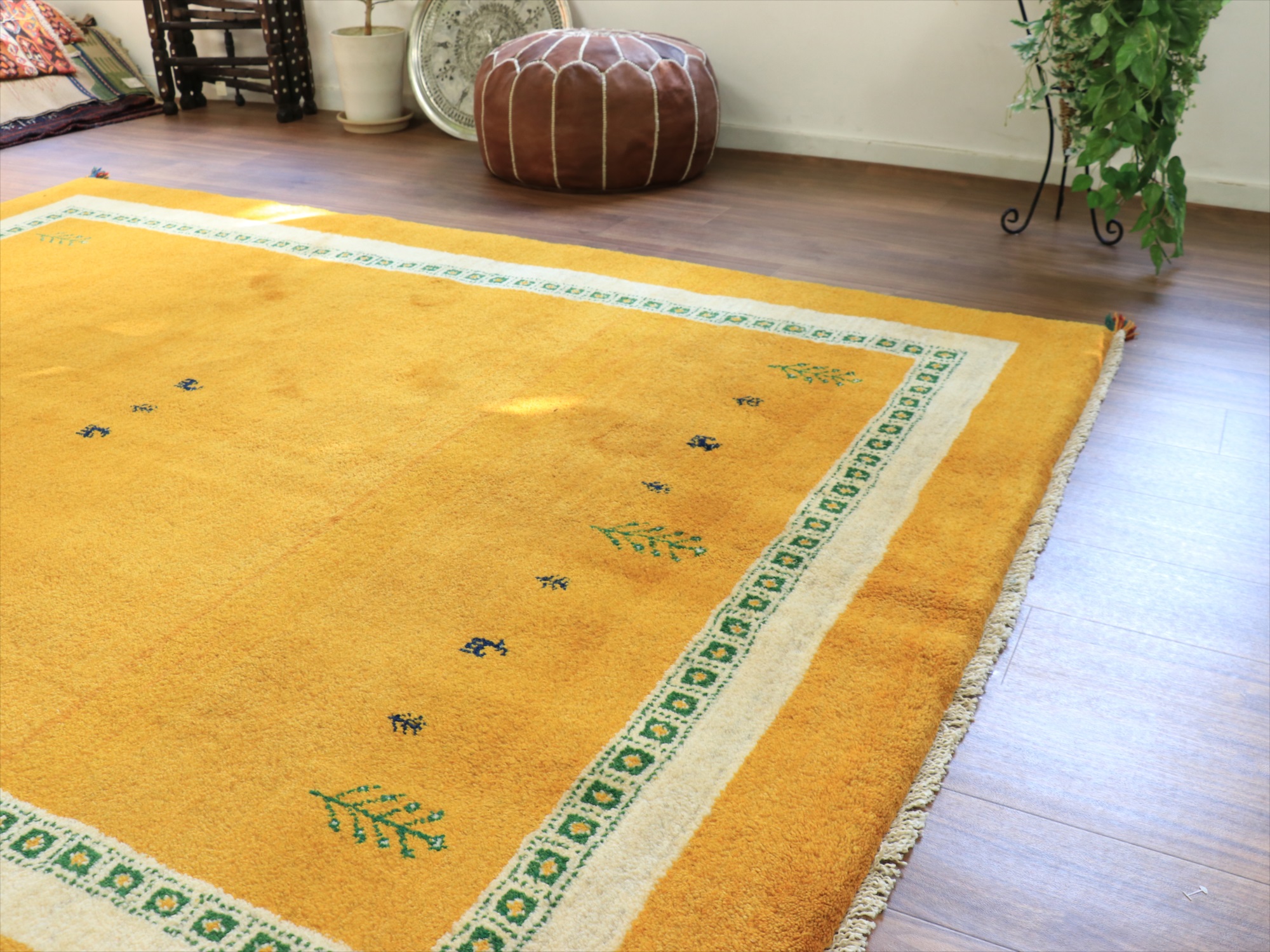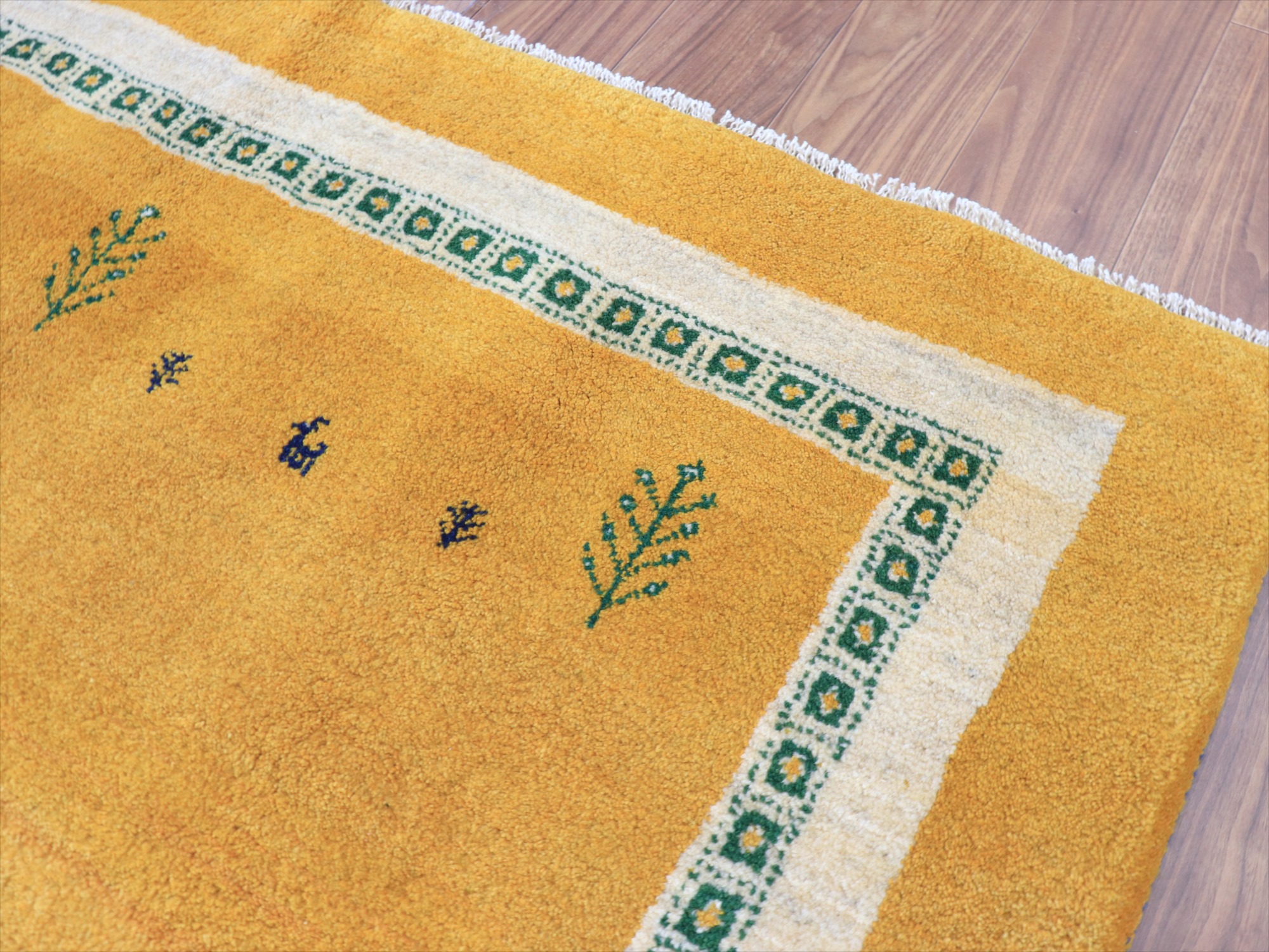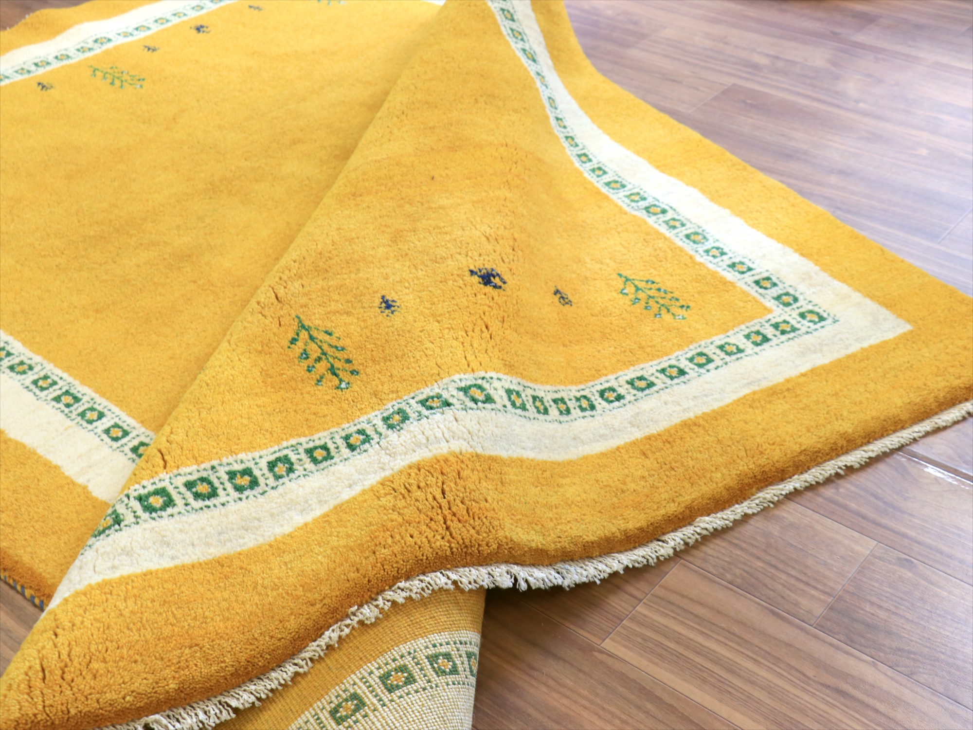 ギャッベ オレンジ イエロー 234x170cm ベージュのボーダー イラン産手織りラグ