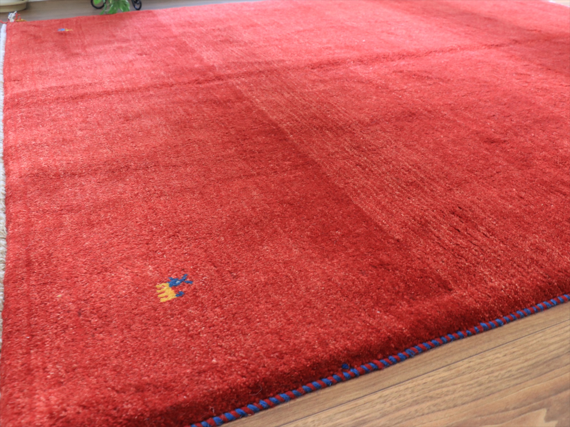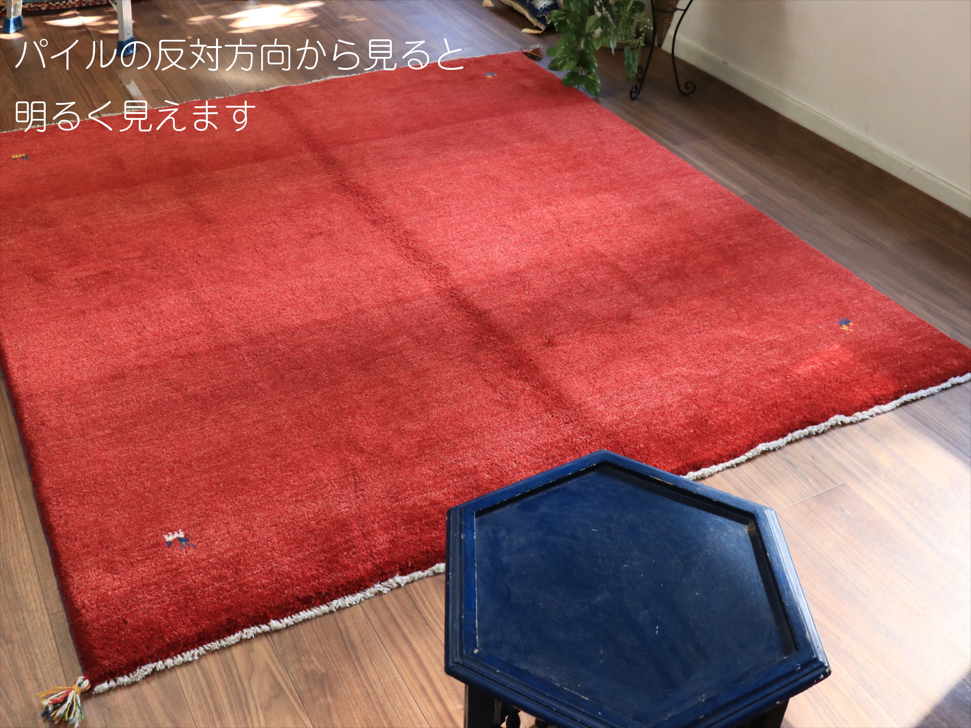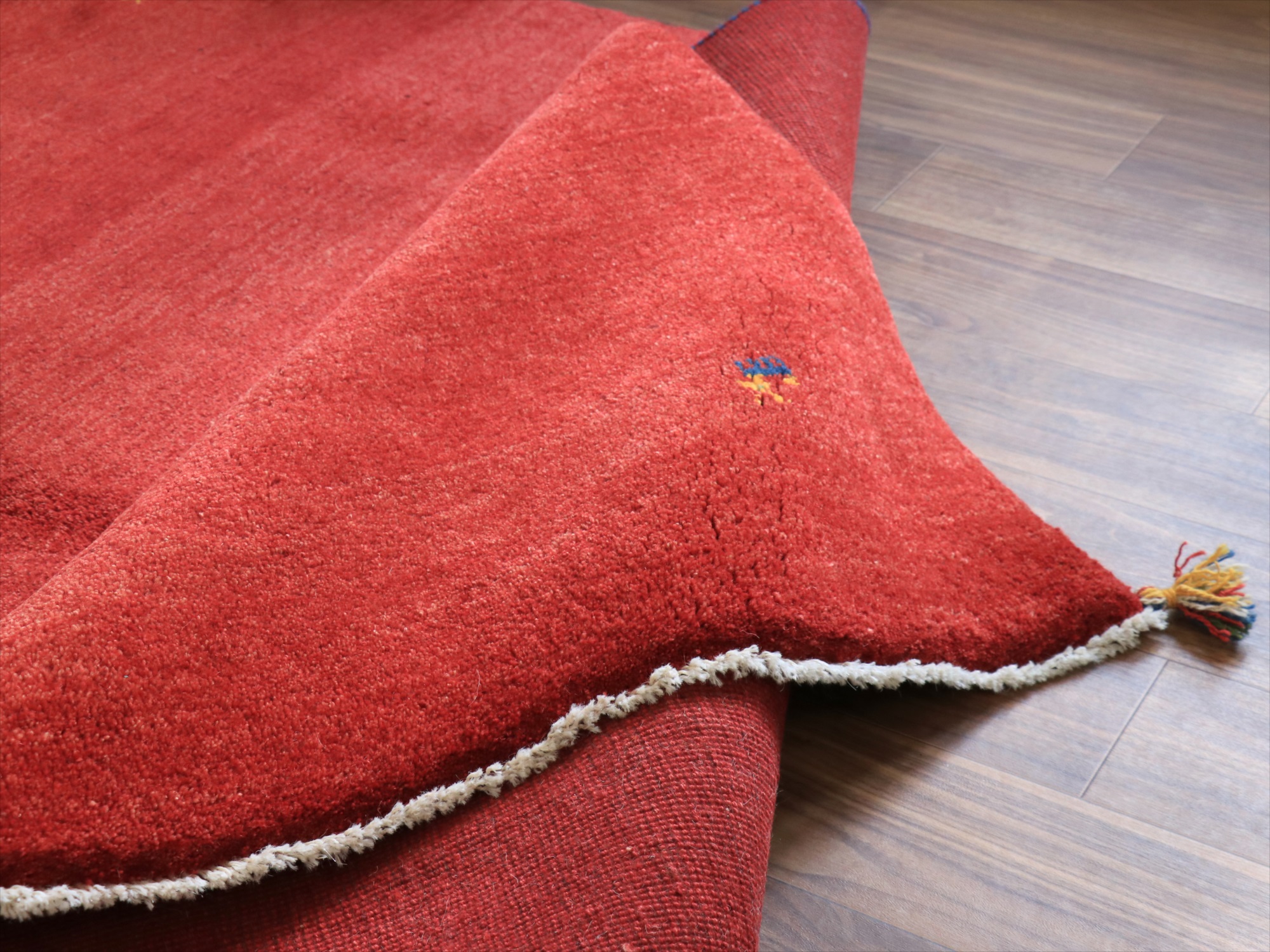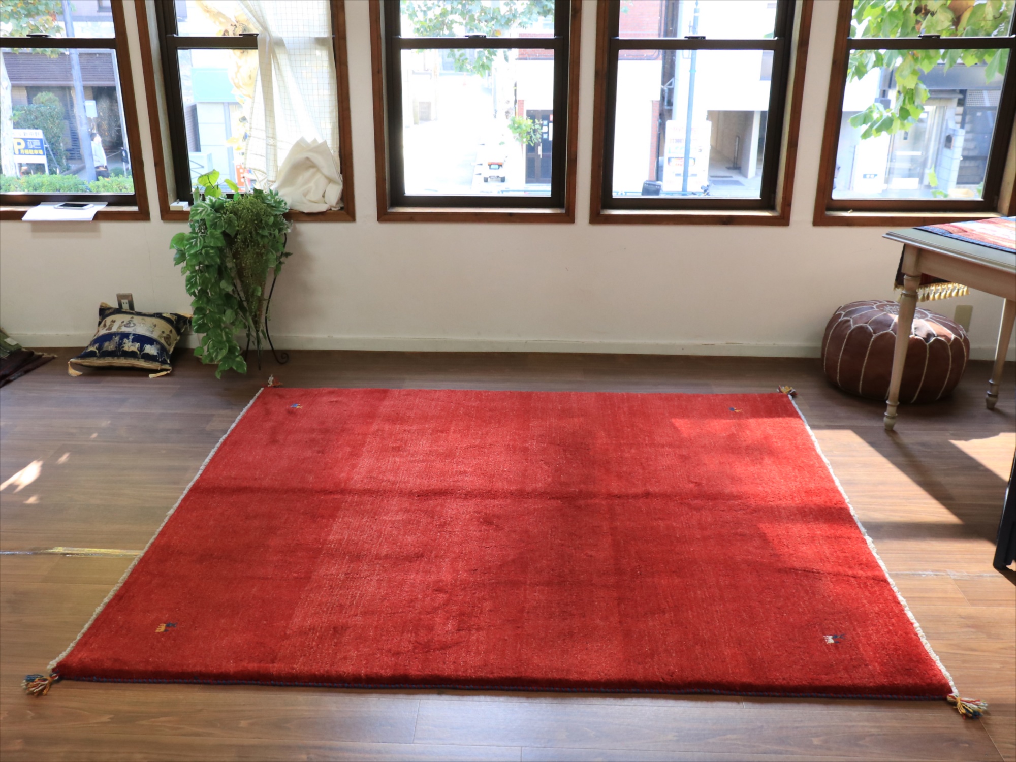 - ギャッベ 正方形 イラン産 208x190cm レッド グラデーション 無地 シンプル