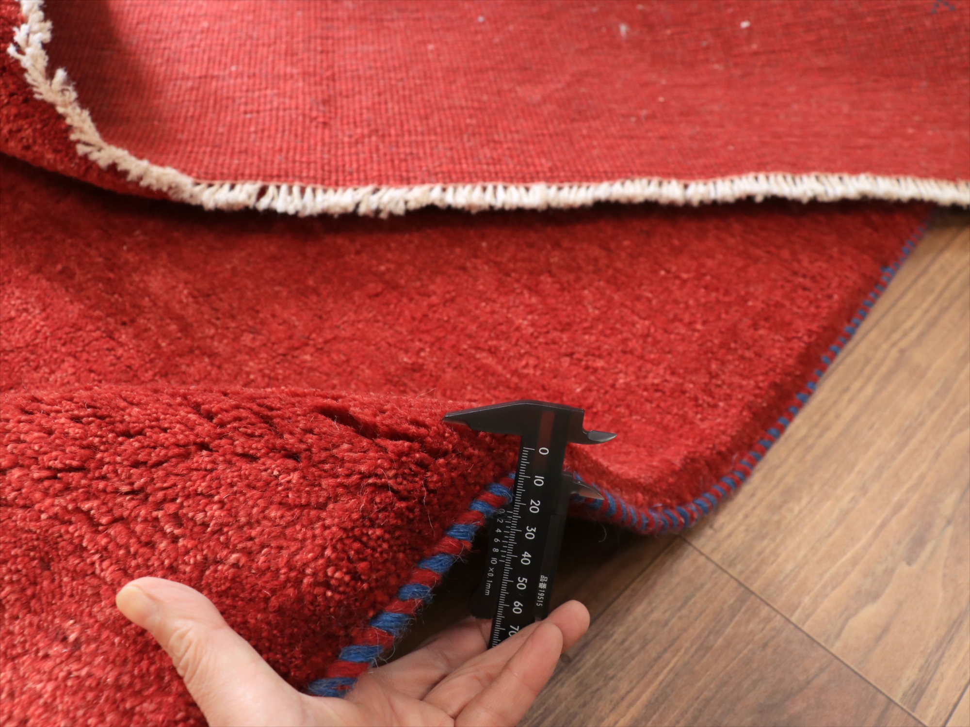 | 織り目がぎゅっと詰まって、ボリュームのある織りのギャッベです。ベースを含めたラグ全体の厚みは2.1-2.2cmほど。 |