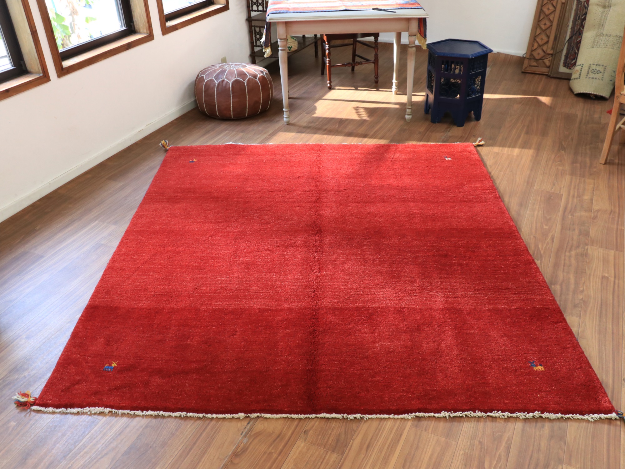 Key:ギャベ, ギャッベ, ラグ, イラン製, 手織り絨毯, 部族絨毯, カシュカイ族, 草木染, ウール100%, レッド, 赤, シンプル, 正方形, スクエア, ホットカーペット対応, リビング, ダイニング, ソファ前, 厚手, 東京,中野区, ガラタバザール, Gabbeh, Tribal Rug, Hand knotted, wool, Shiraz, Fars, Quashkai