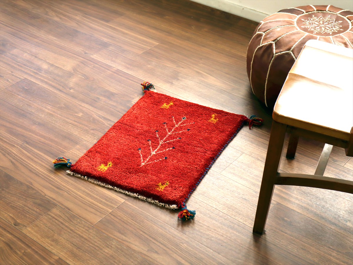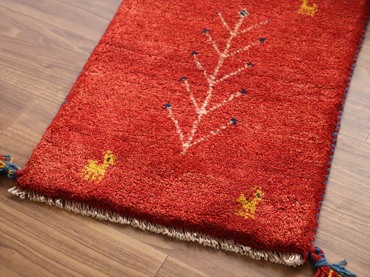 ギャッベ ミニギャベ イラン産 58×43cm レッド 生命の樹と動物
