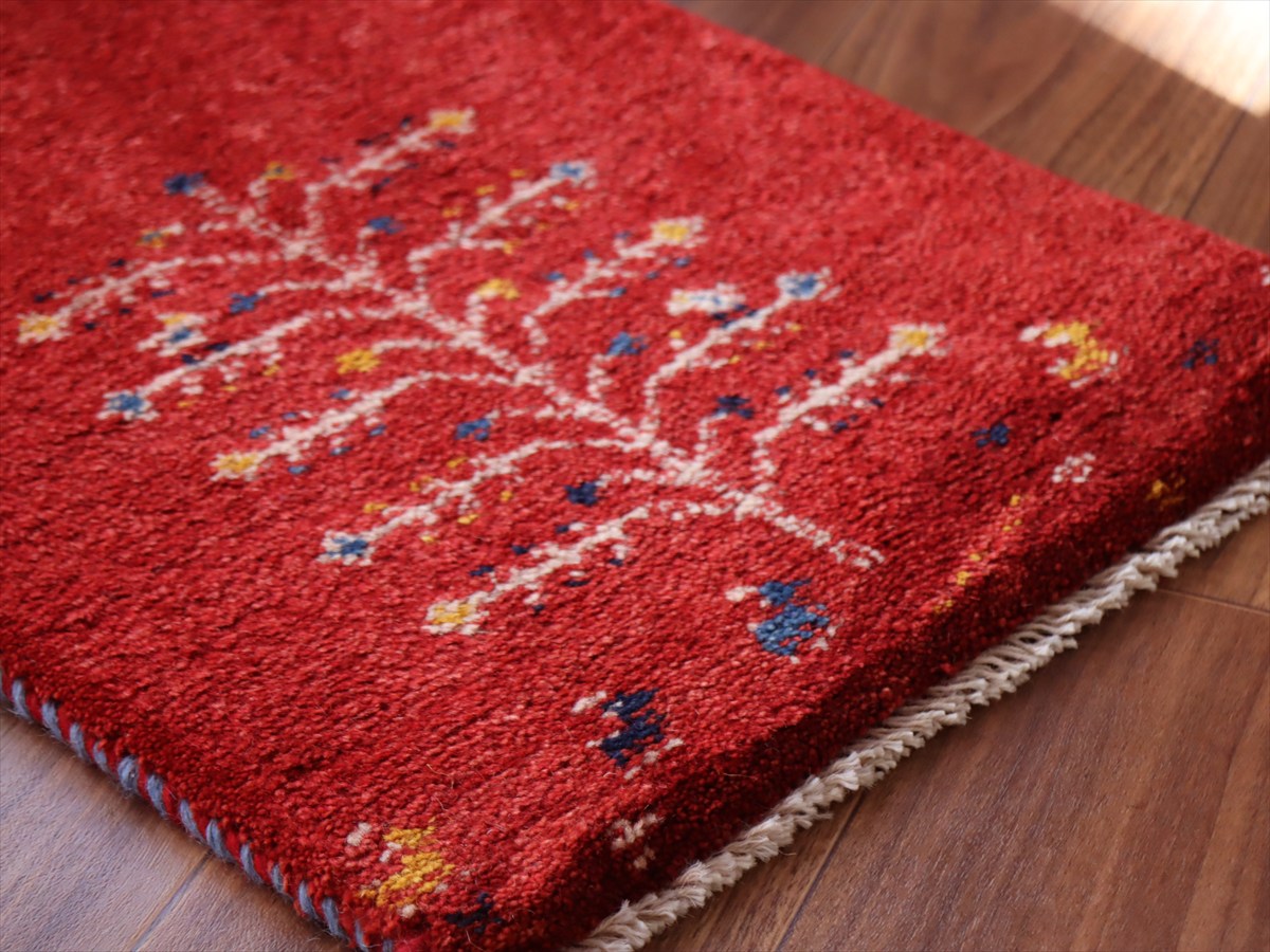 ギャッベ ミニギャベ イラン産 57×41cm レッド 生命の樹と動物