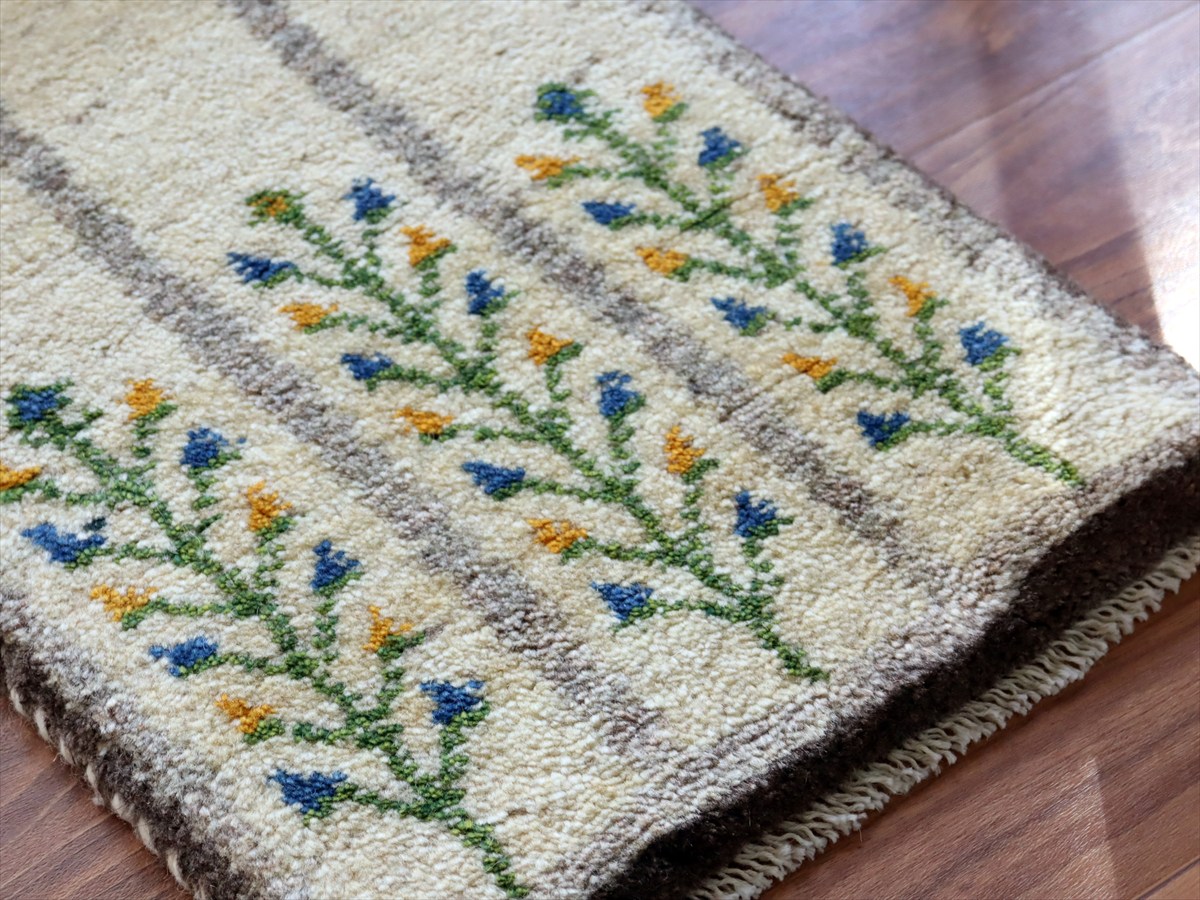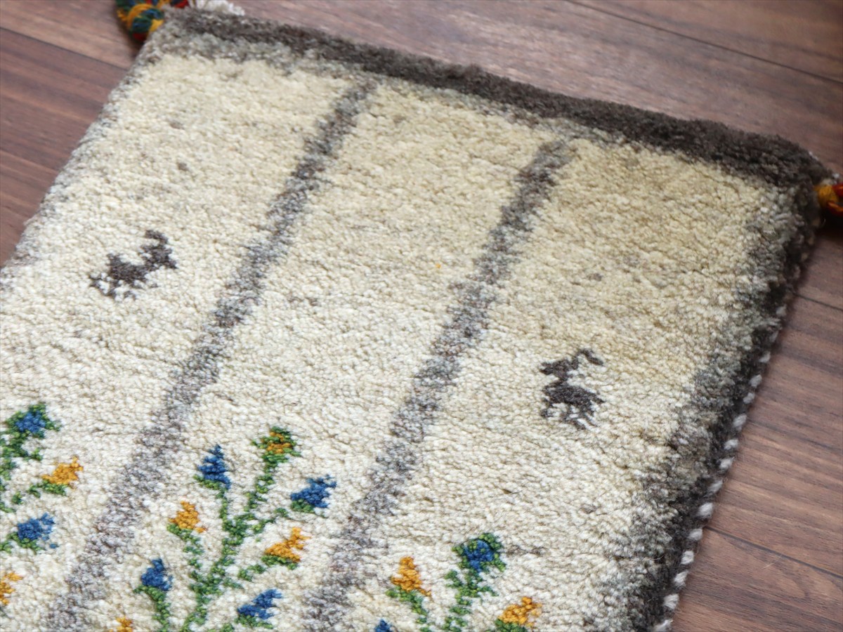 ギャッベ ミニギャベ イラン産 59×40cm ナチュラルアイボリー 連なる生命の樹と動物