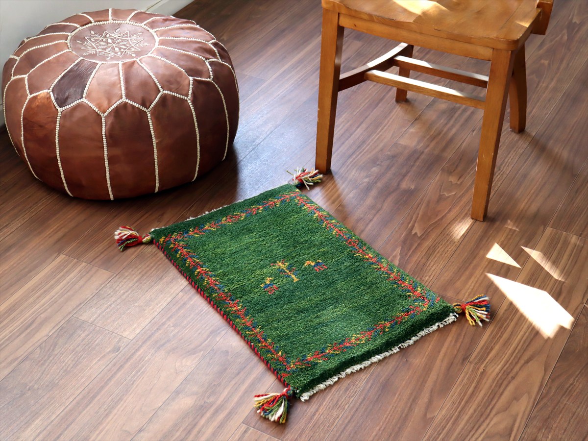 Key:Gabbeh, Tribal rug, Shiraz, Fars, Iran, Persia, Wool, ギャッベ, ギャベ, グリーン 緑 天然染料 草木染 ラグ, 絨毯, イラン, シラーズ, ペルシャ, バザールギャッベ, ポンポン, 手織り, 一点もの, 玄関マット, ふかふか, ガラタバザール