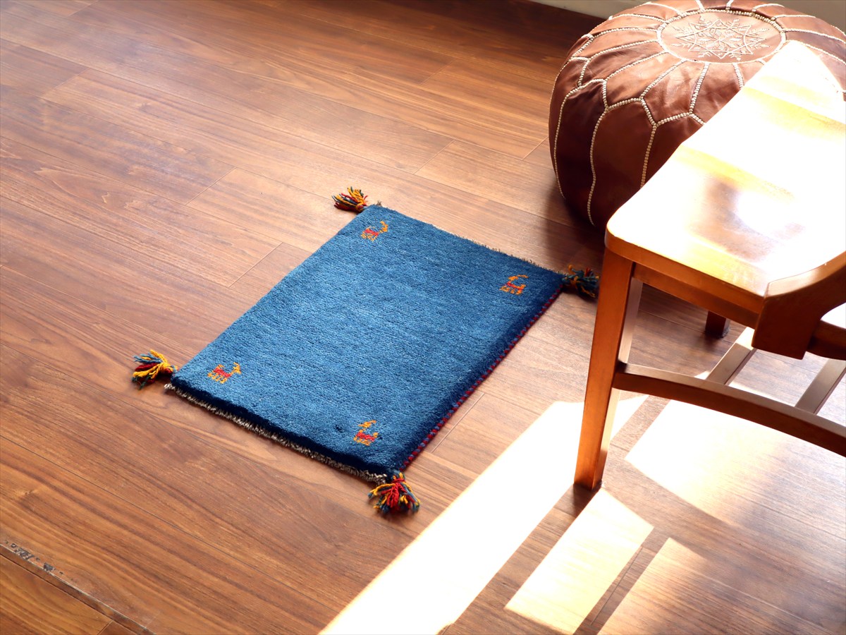 ギャッベ ミニギャベ イラン産 55×42cm ブルー 動物モチーフ
