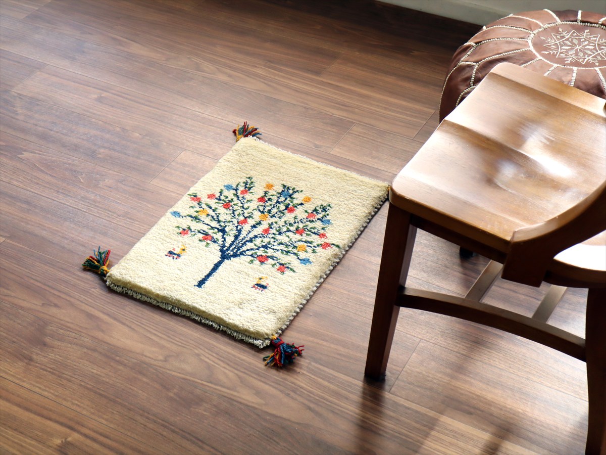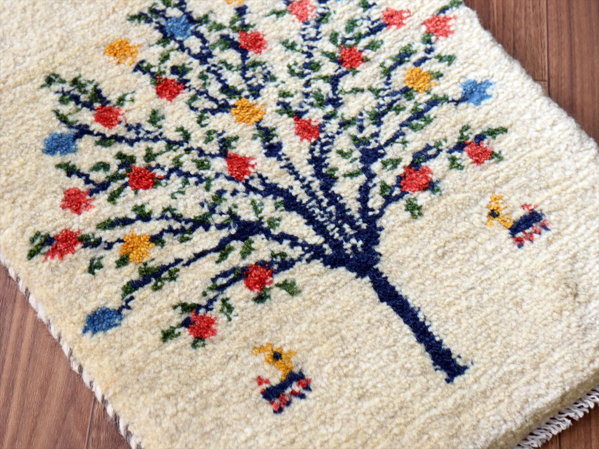 ギャッベ ミニギャベ イラン産 56×41cm ナチュラルアイボリー ザクロの樹と動物
