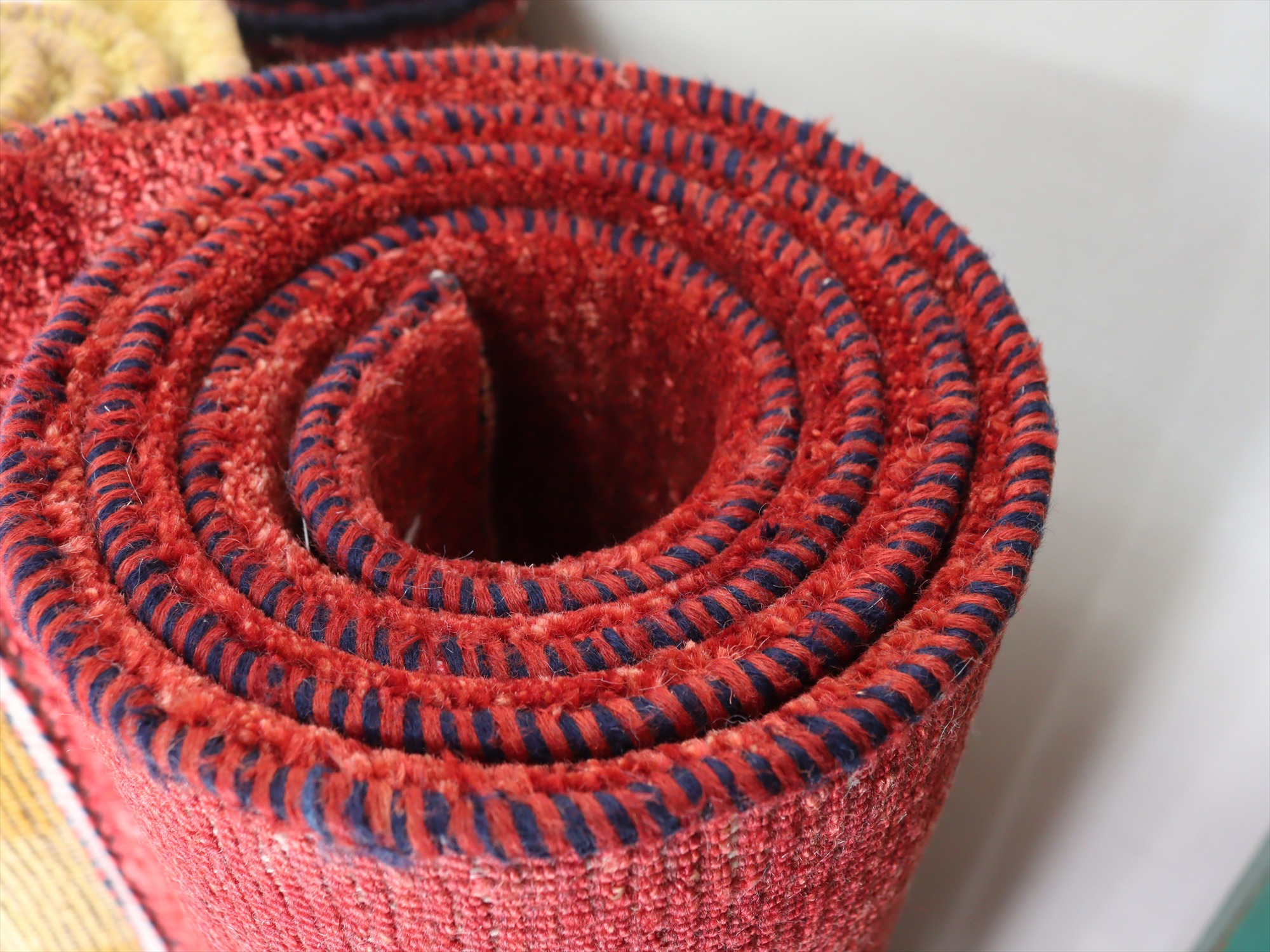 | 上下の縦糸を巻き込んでいます。ベースを含めたラグの厚みは、1.8cm程でパイルはすっきりとしていてモチーフがきれいに表現されています。 【バナフシェ -Banafsheh-】 スタンダードクラスより、織り目が細かなタイプ。素朴さと、すっきりしたモダンタイプの特徴を合わせ、表現豊かなユニークなデザインを得意としたコレクション。 特に仕上げの行程は丁寧で、上下の縦糸をキリムを織り足して巻き込んでからロックしていたり、クシで丁寧にかき出してあるため遊び毛もほとんど出てこないなど、とても手のかかった仕上げです。 |