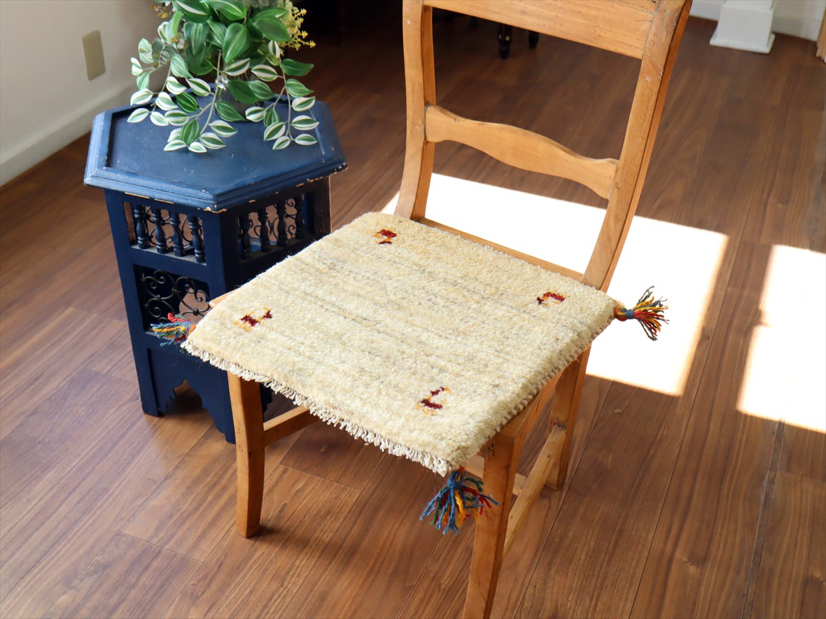 ギャッベ イラン産手織り 座布団サイズ41×42cm ナチュラルアイボリー 動物モチーフ