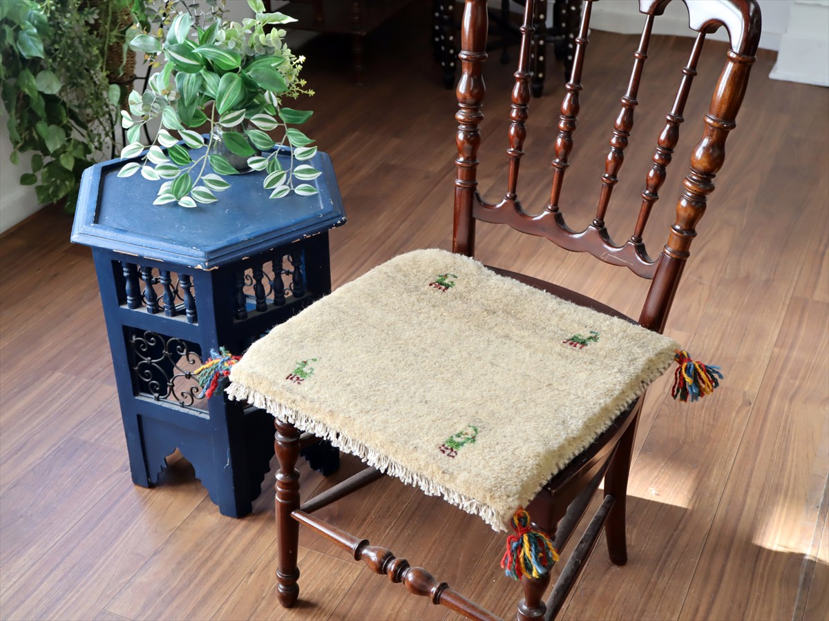 ギャッベ イラン産手織り 座布団サイズ40×42cm ナチュラルアイボリー 動物モチーフ