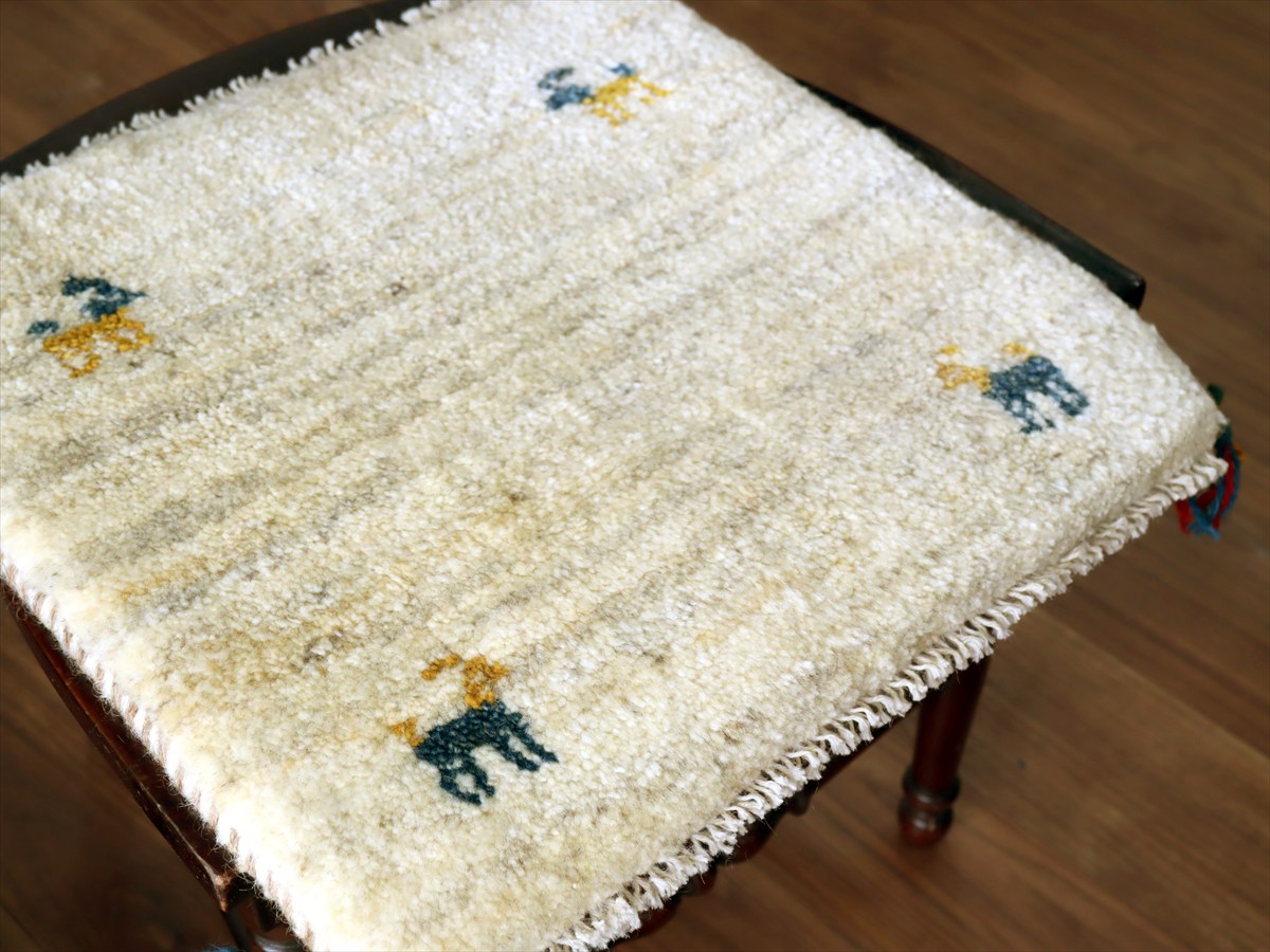 ギャッベ イラン産手織り 座布団サイズ41×42cm ナチュラルアイボリー 動物モチーフ