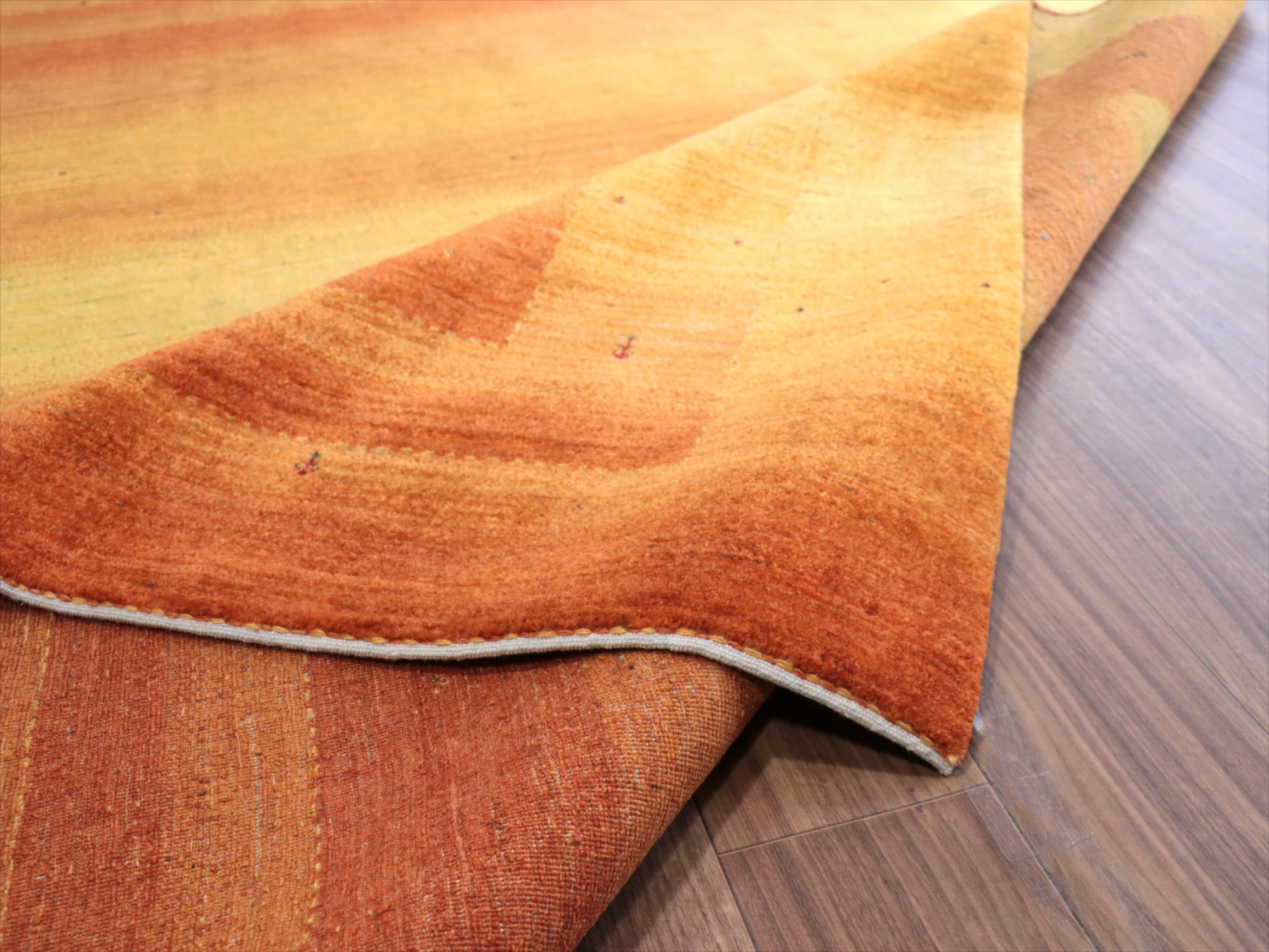 - ギャッベ ロリアタシュ 細かな織りの最高級ギャッベ Gabbeh Lori Atash 256x204cm イエローオレンジグラデーション