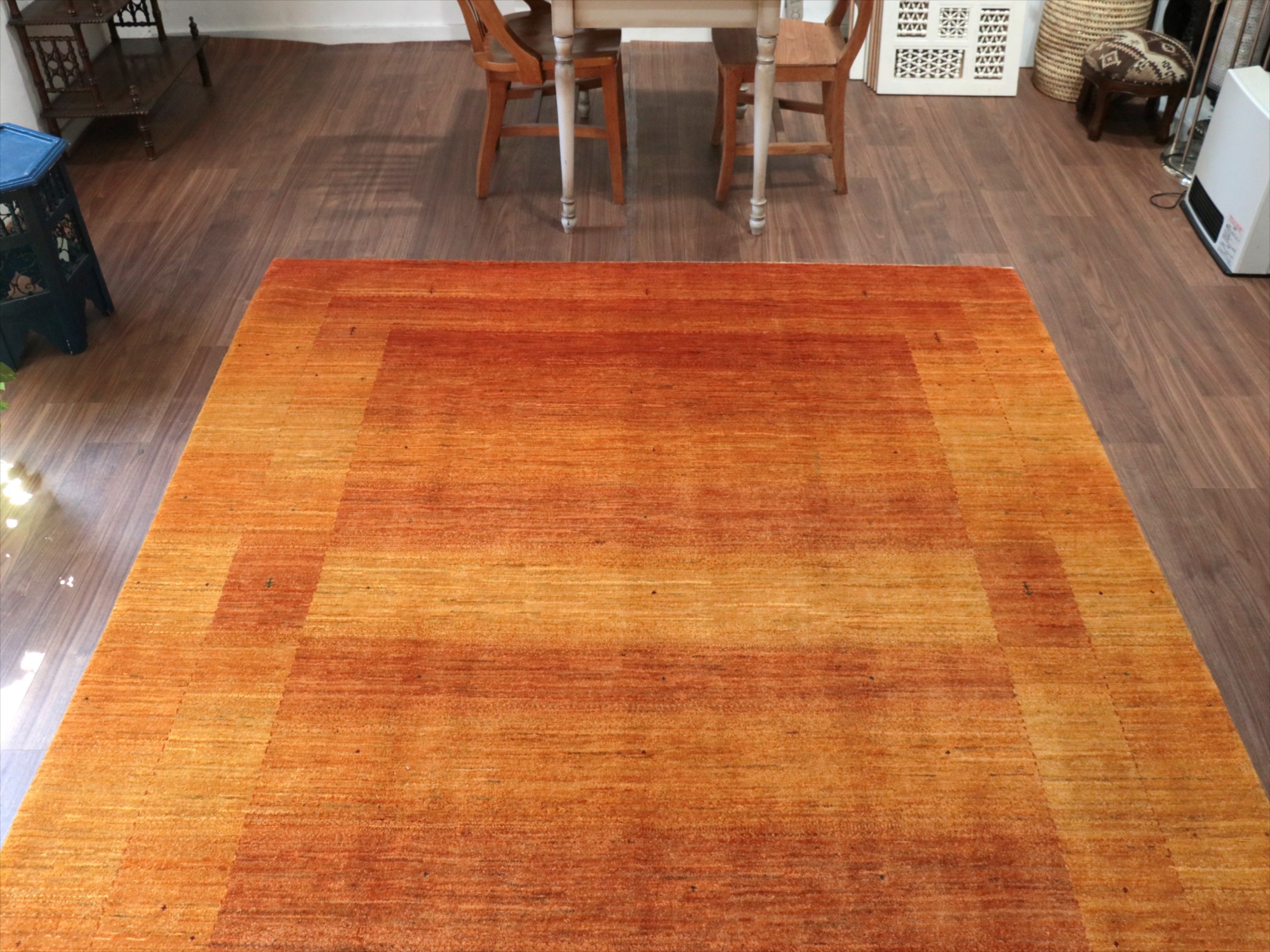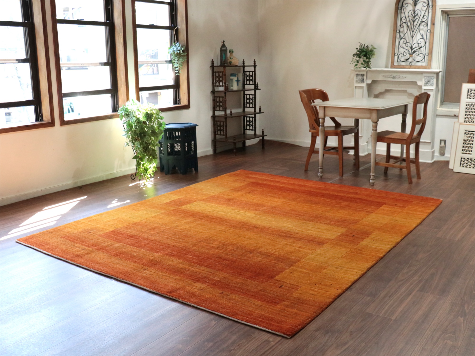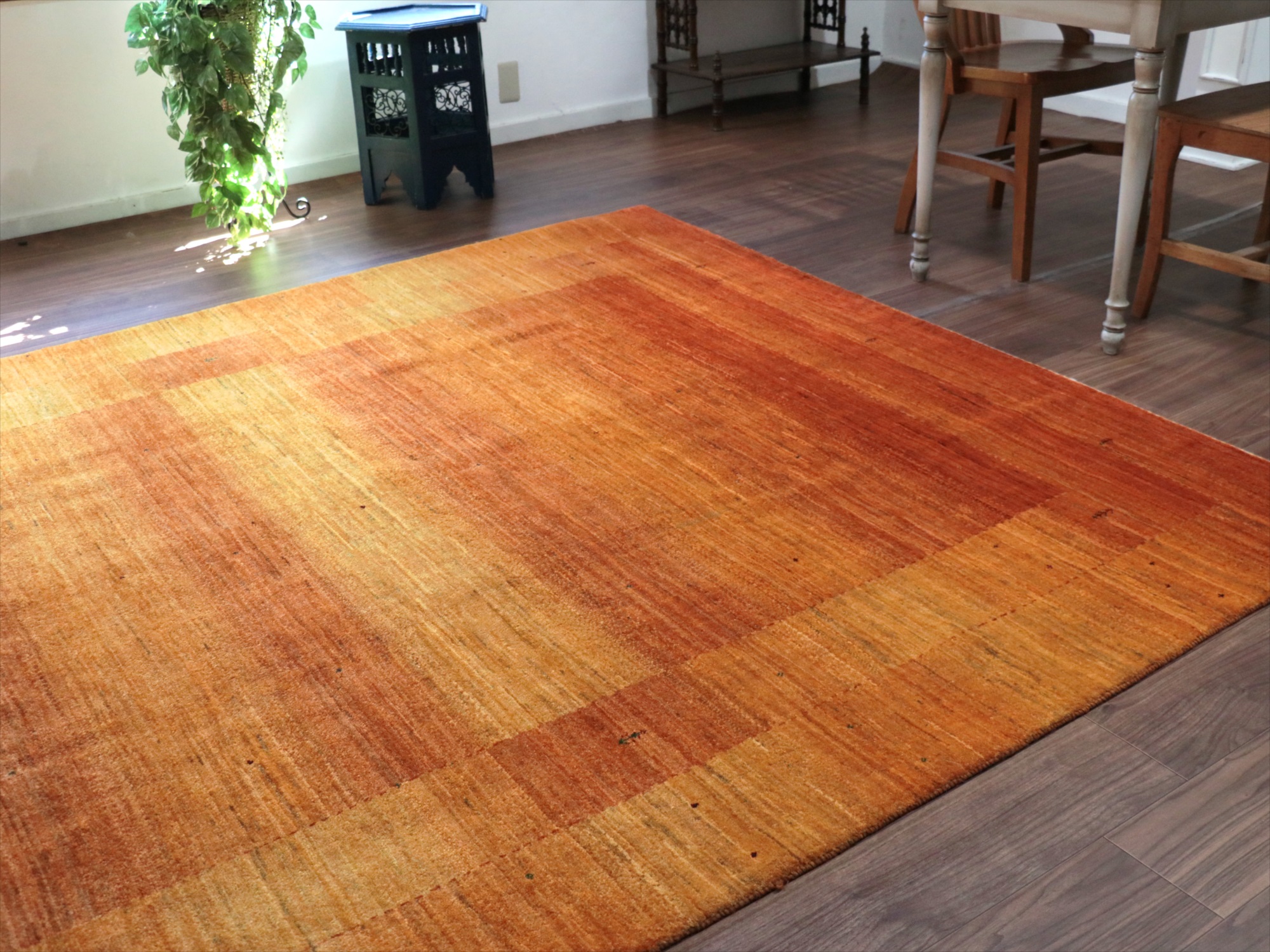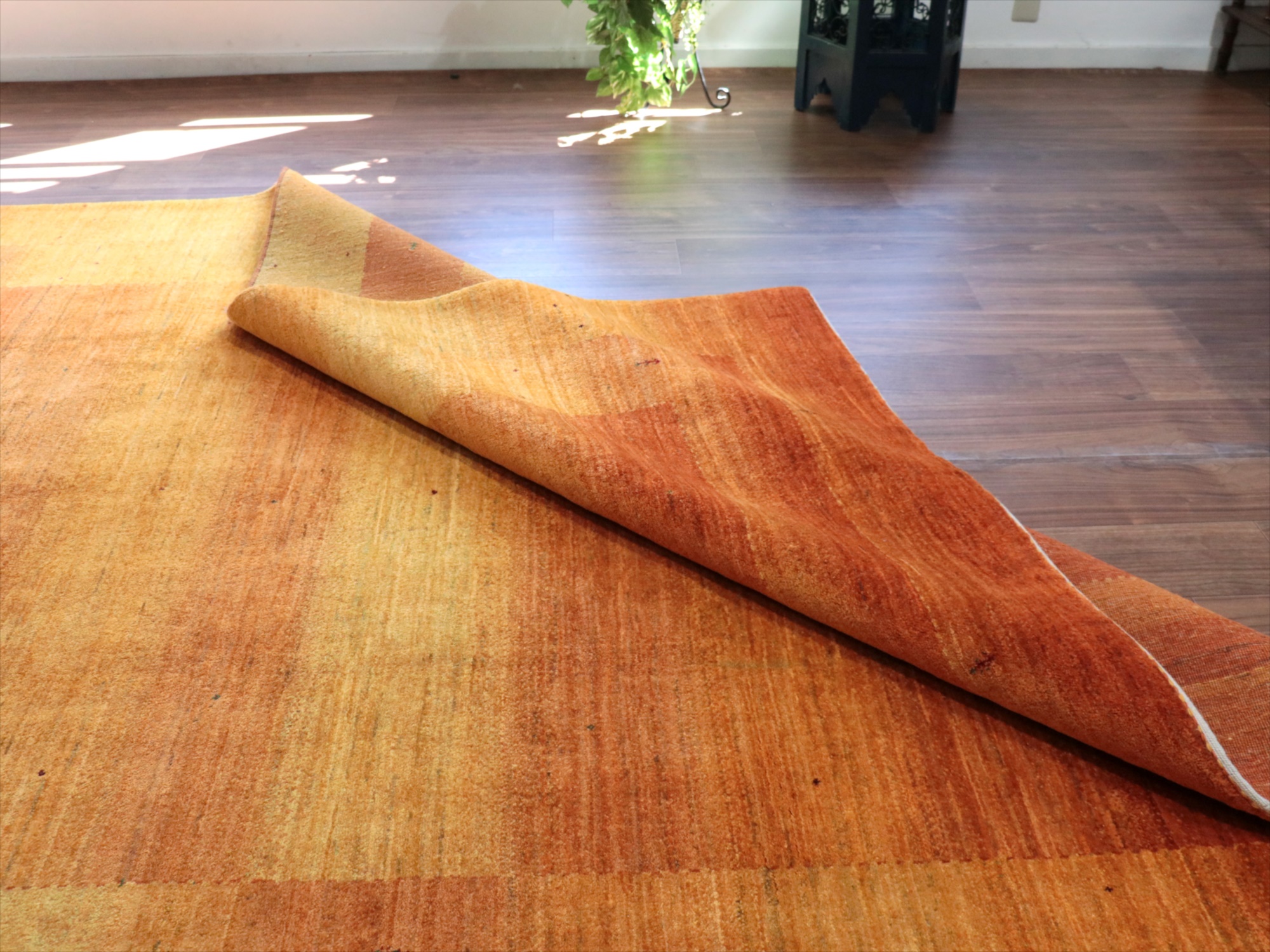 Key:Gabbeh,Tribal rug, Persian carpet,Iran,Shiraz, Quashkai,Farhadian, 手織りギャッベ, 細かい, イラン直輸入, ペルシャ絨毯, リビングサイズ, 大型, オレンジ,ゴールド, 草木染, ウール100%, ガラタバザール, 東京, 中野区