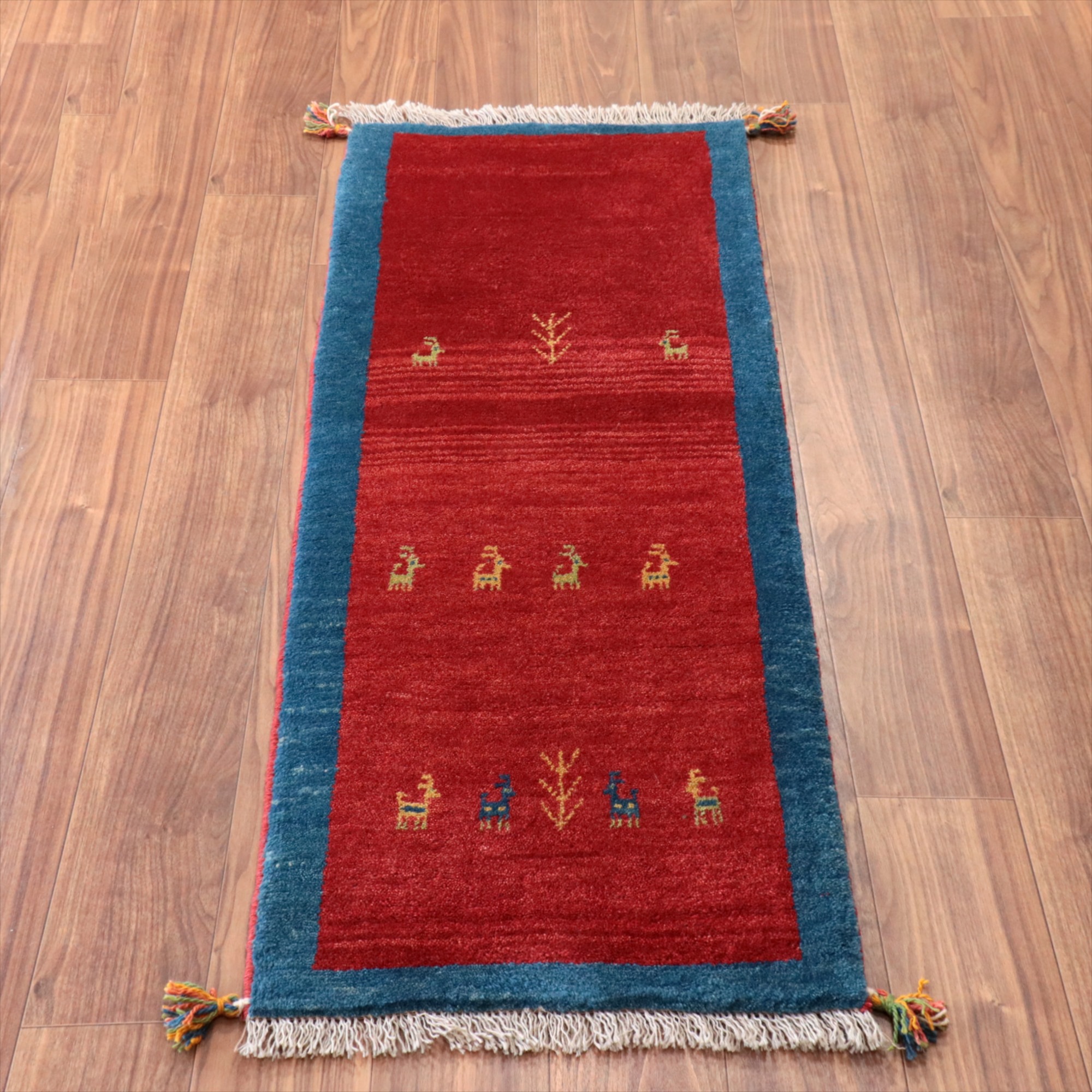 - ギャッベ プリミティブで素朴なデザイン/ 140x56cm レッド ランナー